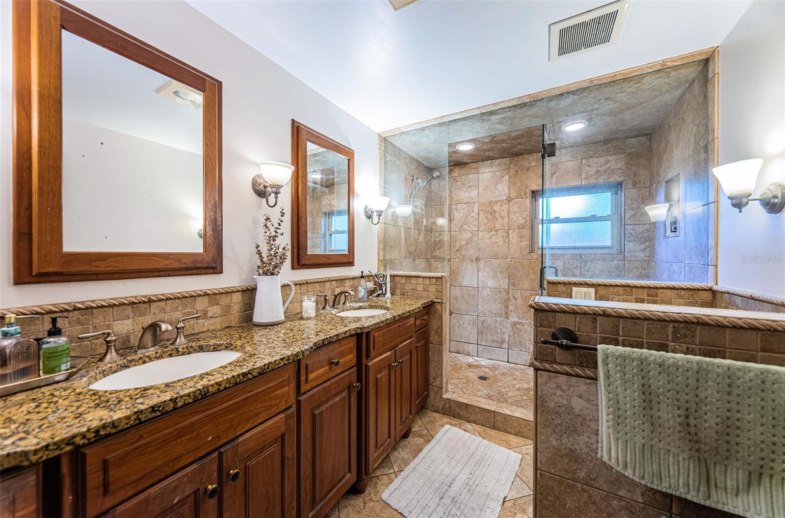 Great 4 bedroom/4 bath Ranch style home located in the desired Lakewood Estates Community. This house has 2 primary bedrooms. The main bedroom boasts an en-suite, his and hers walk-in closets, private patio and access to the pool. The other primary is separate from the rest and has its own full bath. Walking into the house, either through the living room or kitchen area you come to 3 French Doors overlooking the outdoor space with a huge in-ground, caged pool. Covered area is a great spot for relaxing, even better for entertaining. The house is situated across the street from St. Petersburg Country Club golf course. Minutes away from downtown St. Petersburg and all it has to enjoy, some of the best beaches and Boyd Hill Nature Preserve. Must come and see!