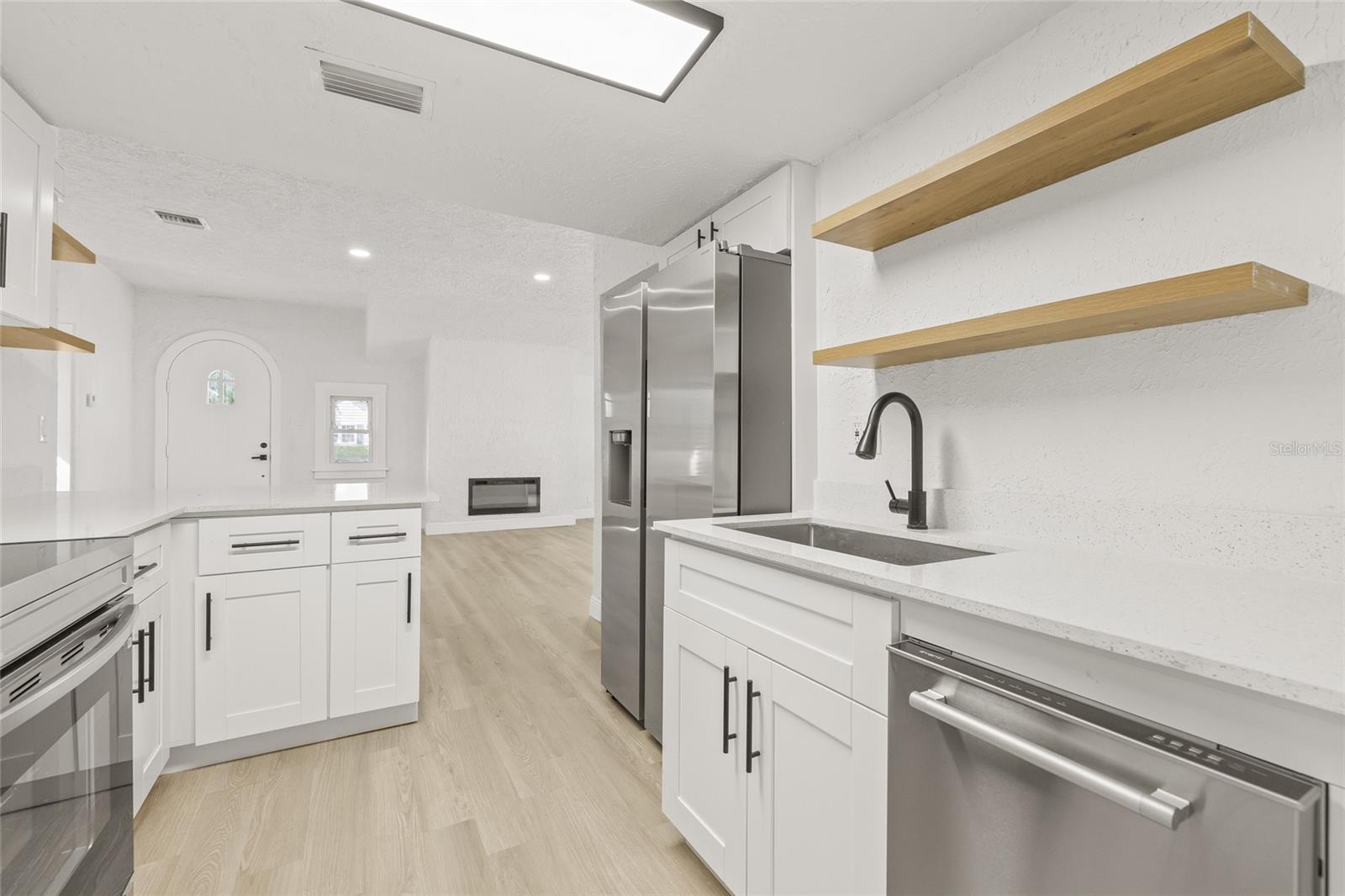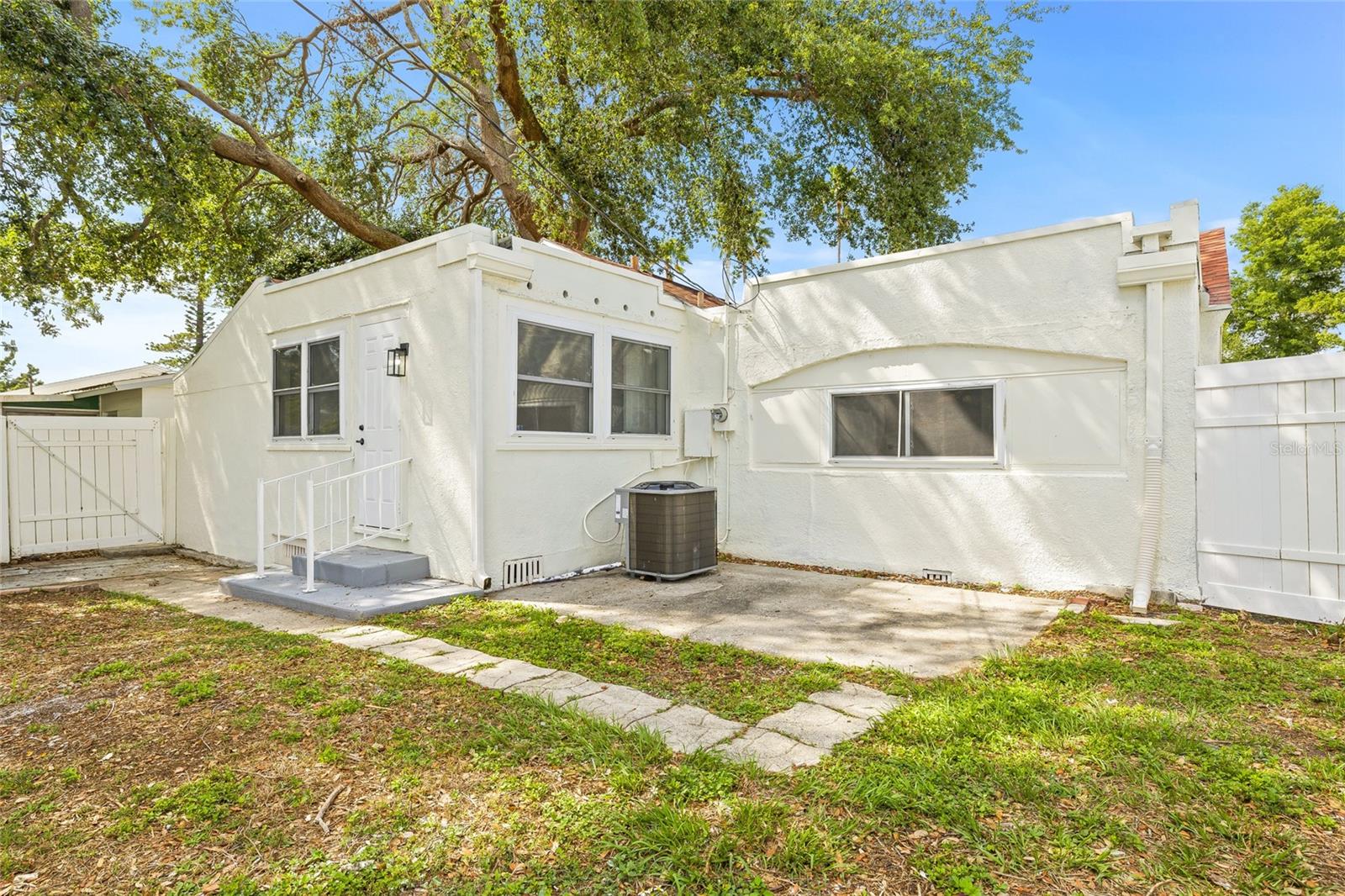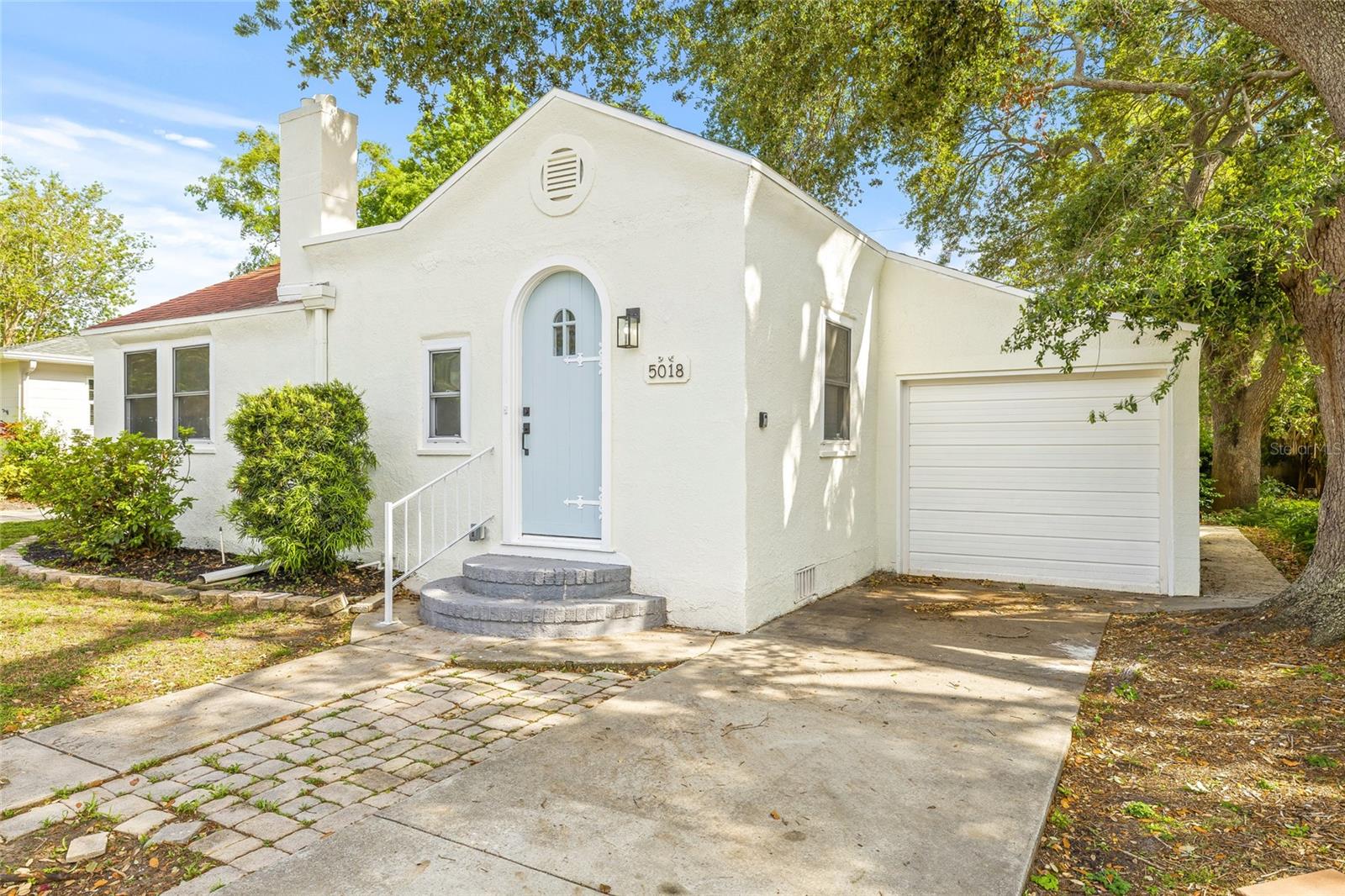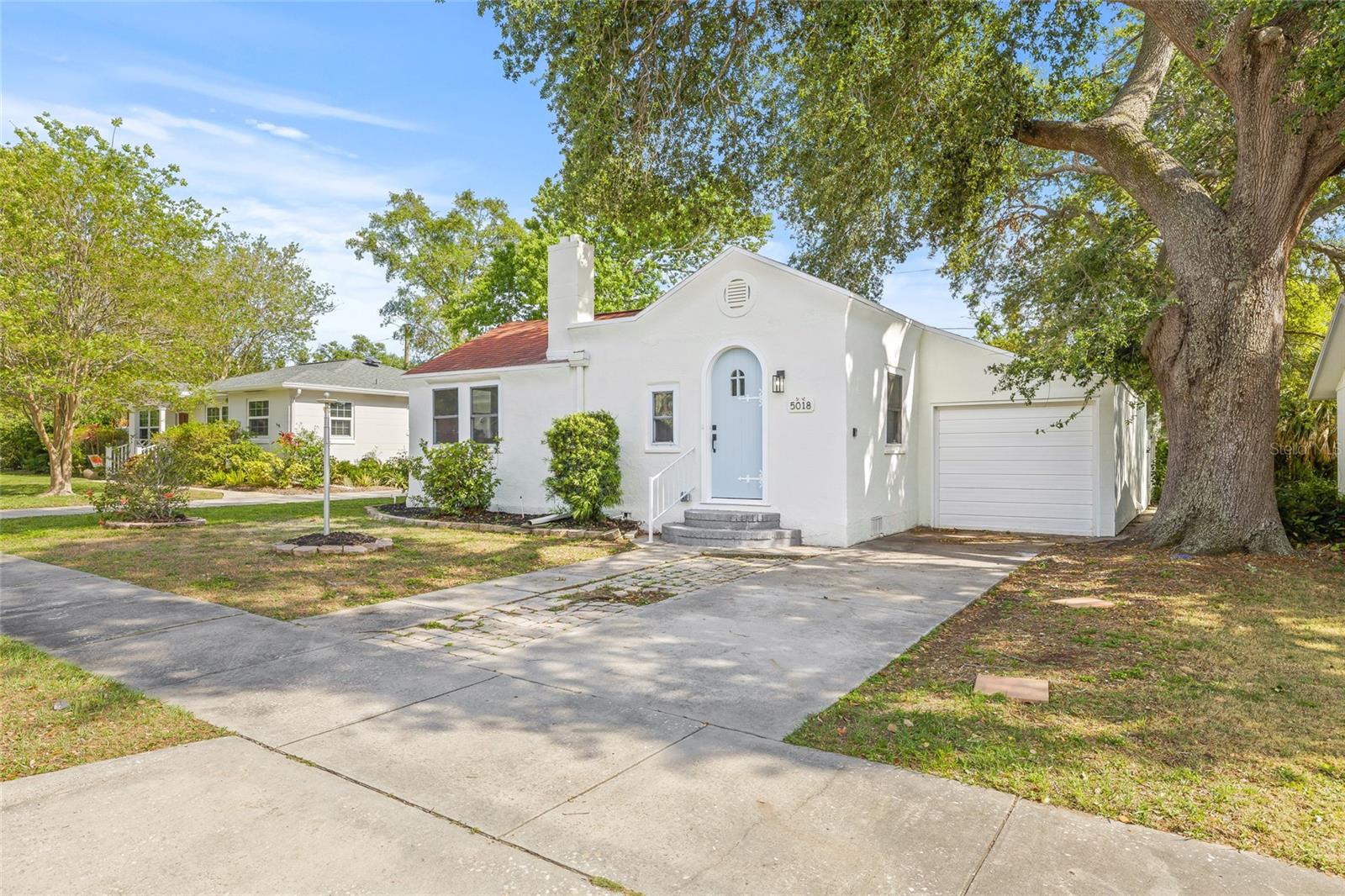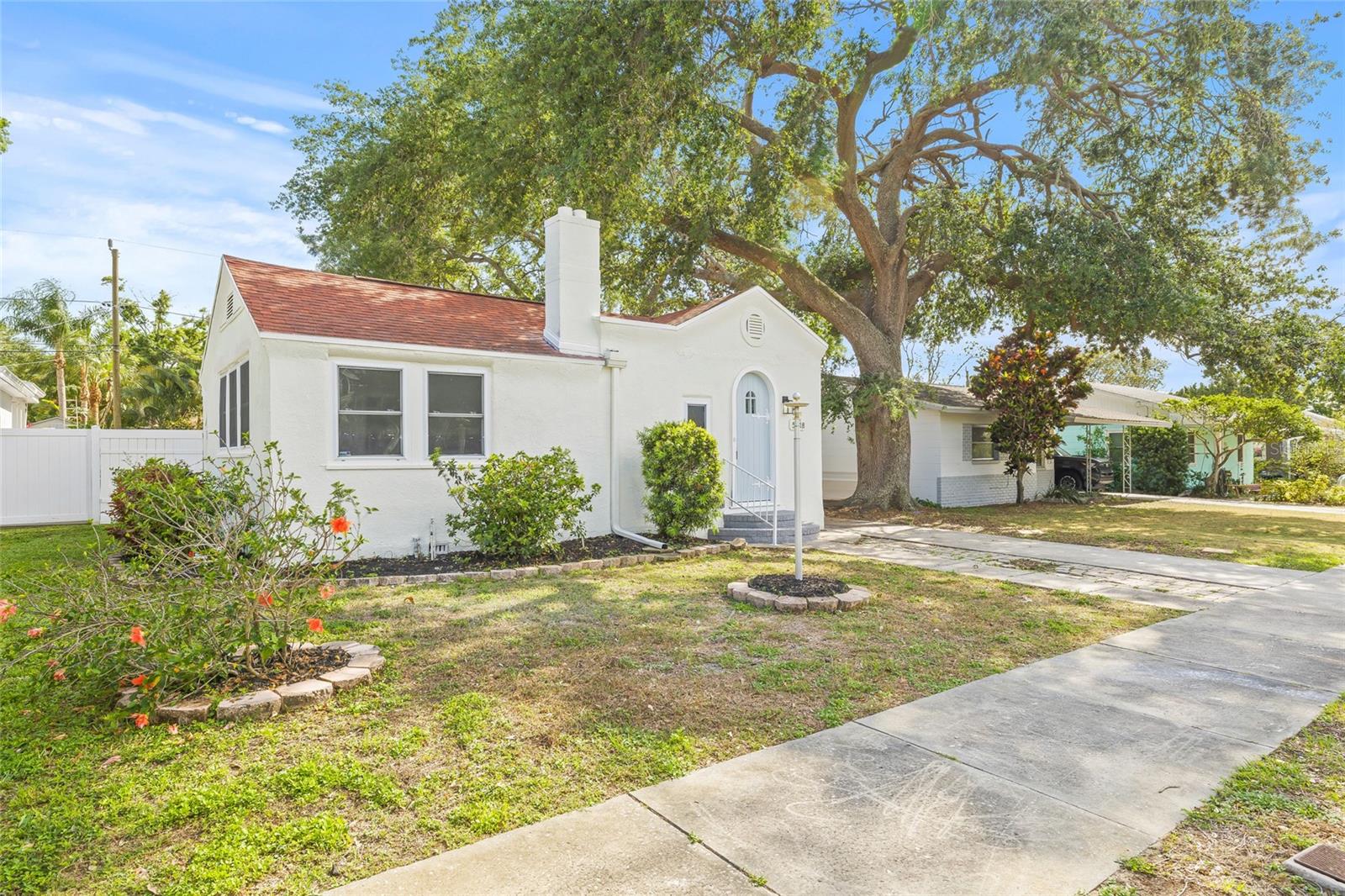 Welcome to this charming 2-bedroom, 2-bathroom home in the heart of St. Petersburg, Florida! From the moment you arrive, you’ll fall in love with the inviting curb appeal that gives off warm Mediterranean bungalow vibes. Step inside to discover vaulted ceilings and an open floor plan filled with natural light, complemented by LVP flooring throughout. The beautiful kitchen features sleek quartz countertops, soft-close cabinets, and all-new stainless steel appliances. Both bathrooms have been thoughtfully updated with trendy, modern finishes. A spacious utility room offers versatile potential—perfect for a home gym, storage, or hobby space. Enjoy peace of mind with a 2019 ROOF and a brand NEW HVAC system, offering comfort and efficiency for years to come. As an added bonus, the seller is including a 1-YEAR HOME WARRANTY for the buyers, providing extra reassurance and value. Step outside to your fully fenced and generously sized backyard, complete with a detached storage structure or workshop for added convenience. Located in a prime spot, you're just under 15 minutes from vibrant Downtown St. Pete and equally close to some of Florida’s most relaxing beaches—offering you the best of both worlds. Surrounded by top-tier dining, shopping, and entertainment, this home truly checks all the boxes. Don’t miss your chance to live in one of the most desirable areas of St. Pete—schedule your showing today!