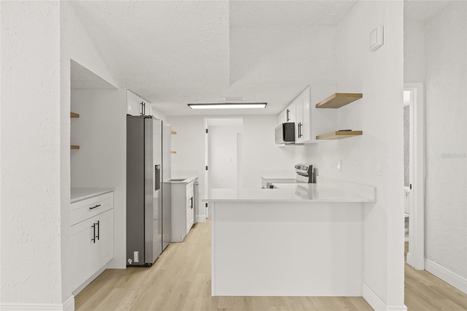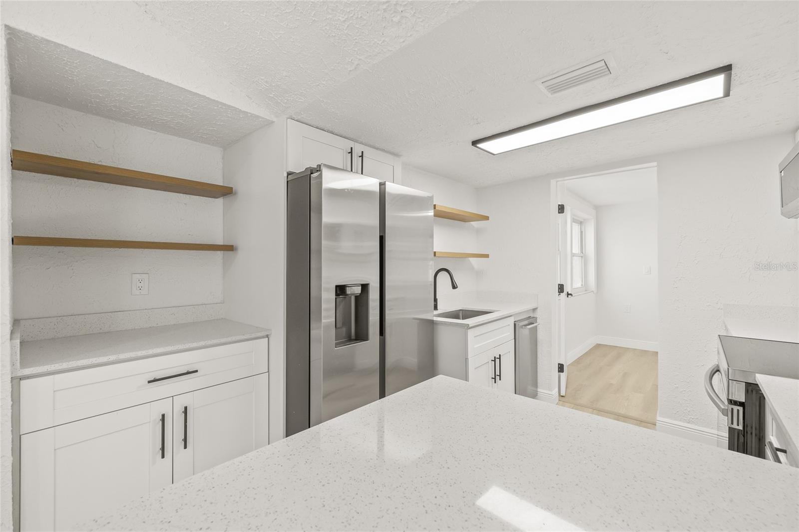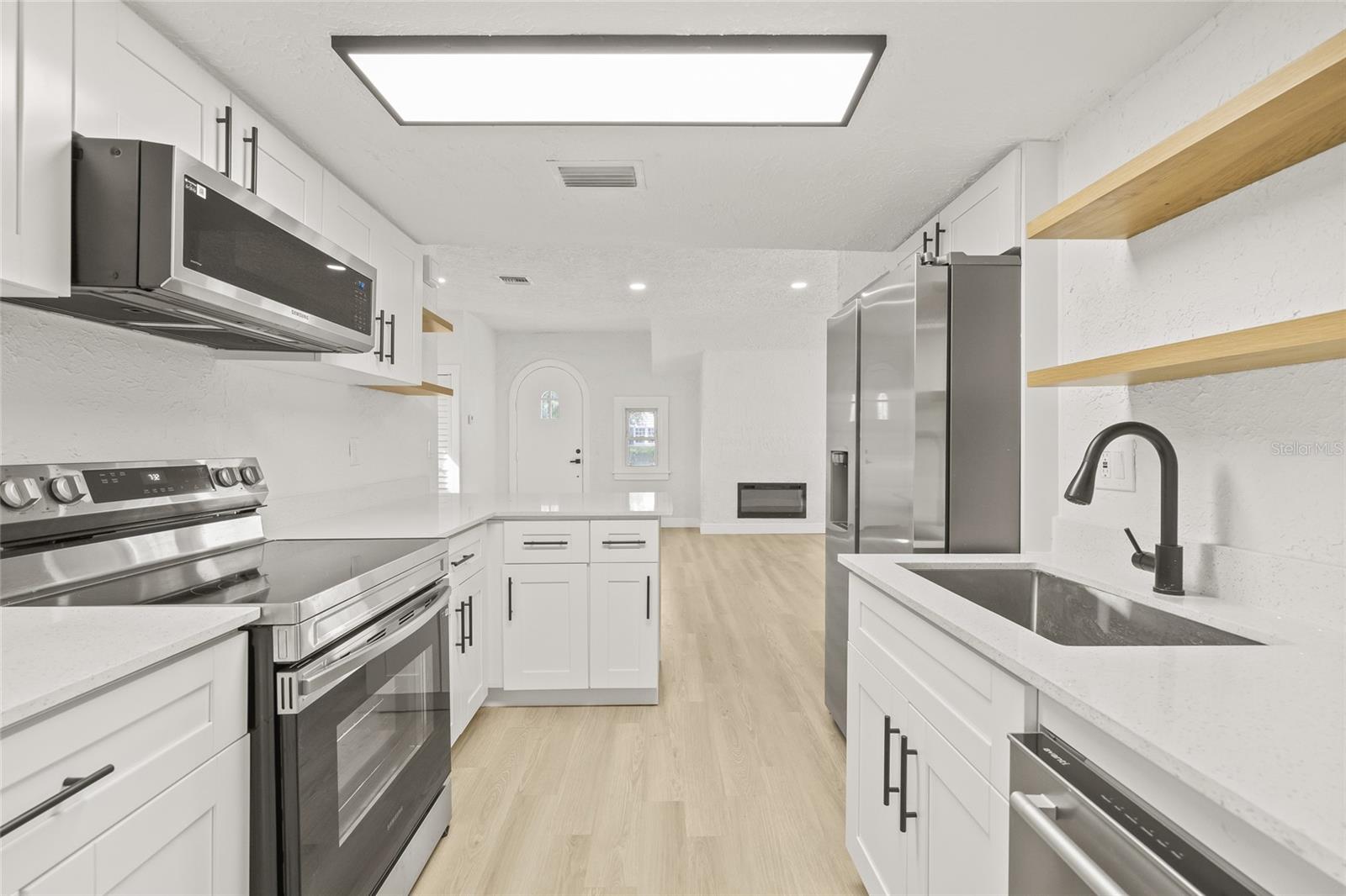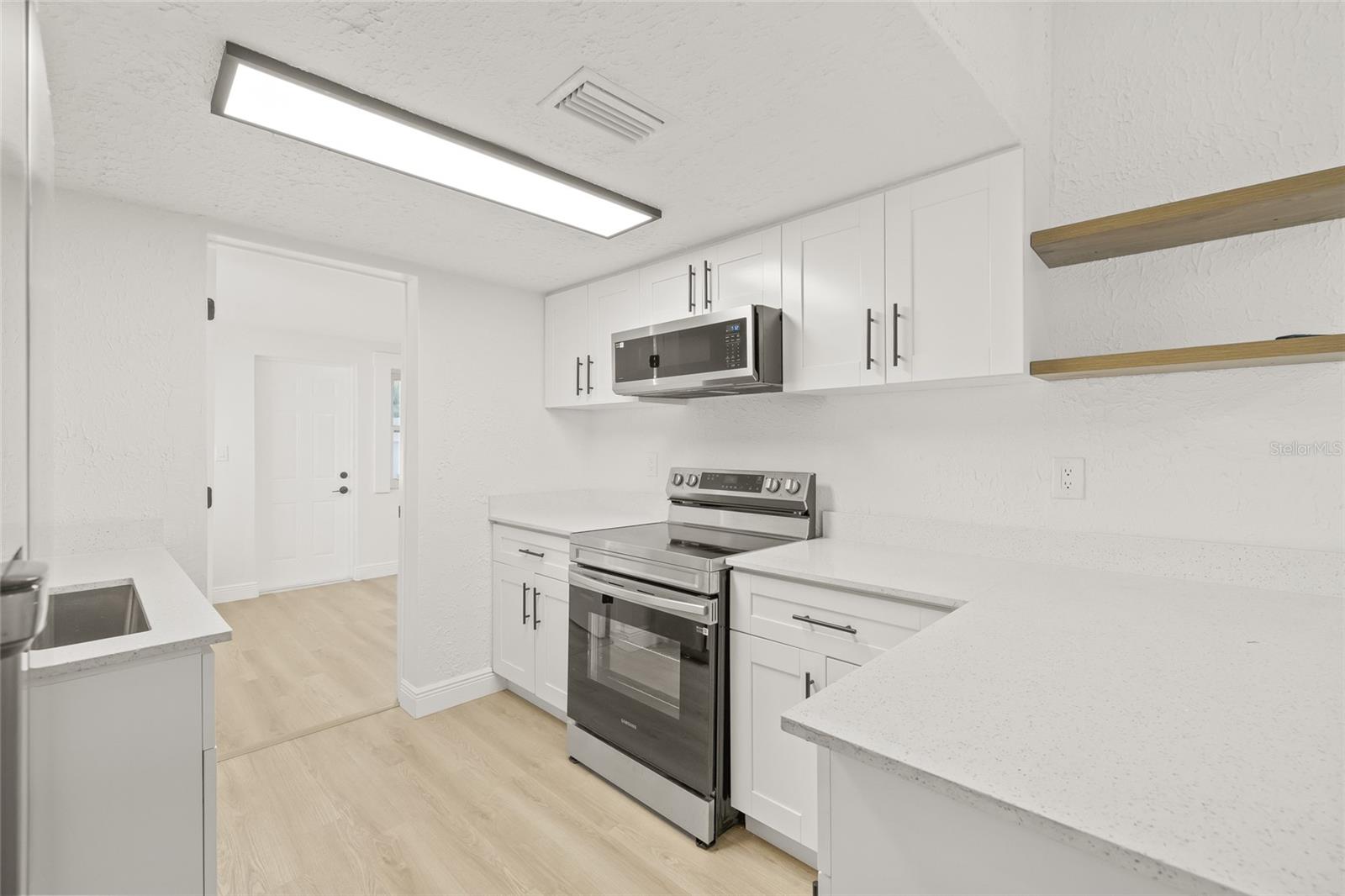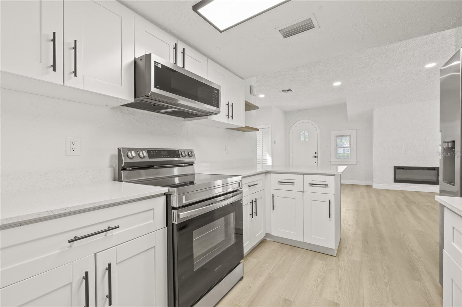 Welcome to this charming 2-bedroom, 2-bathroom home in the heart of St. Petersburg, Florida! From the moment you arrive, you’ll fall in love with the inviting curb appeal that gives off warm Mediterranean bungalow vibes. Step inside to discover vaulted ceilings and an open floor plan filled with natural light, complemented by LVP flooring throughout. The beautiful kitchen features sleek quartz countertops, soft-close cabinets, and all-new stainless steel appliances. Both bathrooms have been thoughtfully updated with trendy, modern finishes. A spacious utility room offers versatile potential—perfect for a home gym, storage, or hobby space. Enjoy peace of mind with a 2019 ROOF and a brand NEW HVAC system, offering comfort and efficiency for years to come. As an added bonus, the seller is including a 1-YEAR HOME WARRANTY for the buyers, providing extra reassurance and value. Step outside to your fully fenced and generously sized backyard, complete with a detached storage structure or workshop for added convenience. Located in a prime spot, you're just under 15 minutes from vibrant Downtown St. Pete and equally close to some of Florida’s most relaxing beaches—offering you the best of both worlds. Surrounded by top-tier dining, shopping, and entertainment, this home truly checks all the boxes. Don’t miss your chance to live in one of the most desirable areas of St. Pete—schedule your showing today!