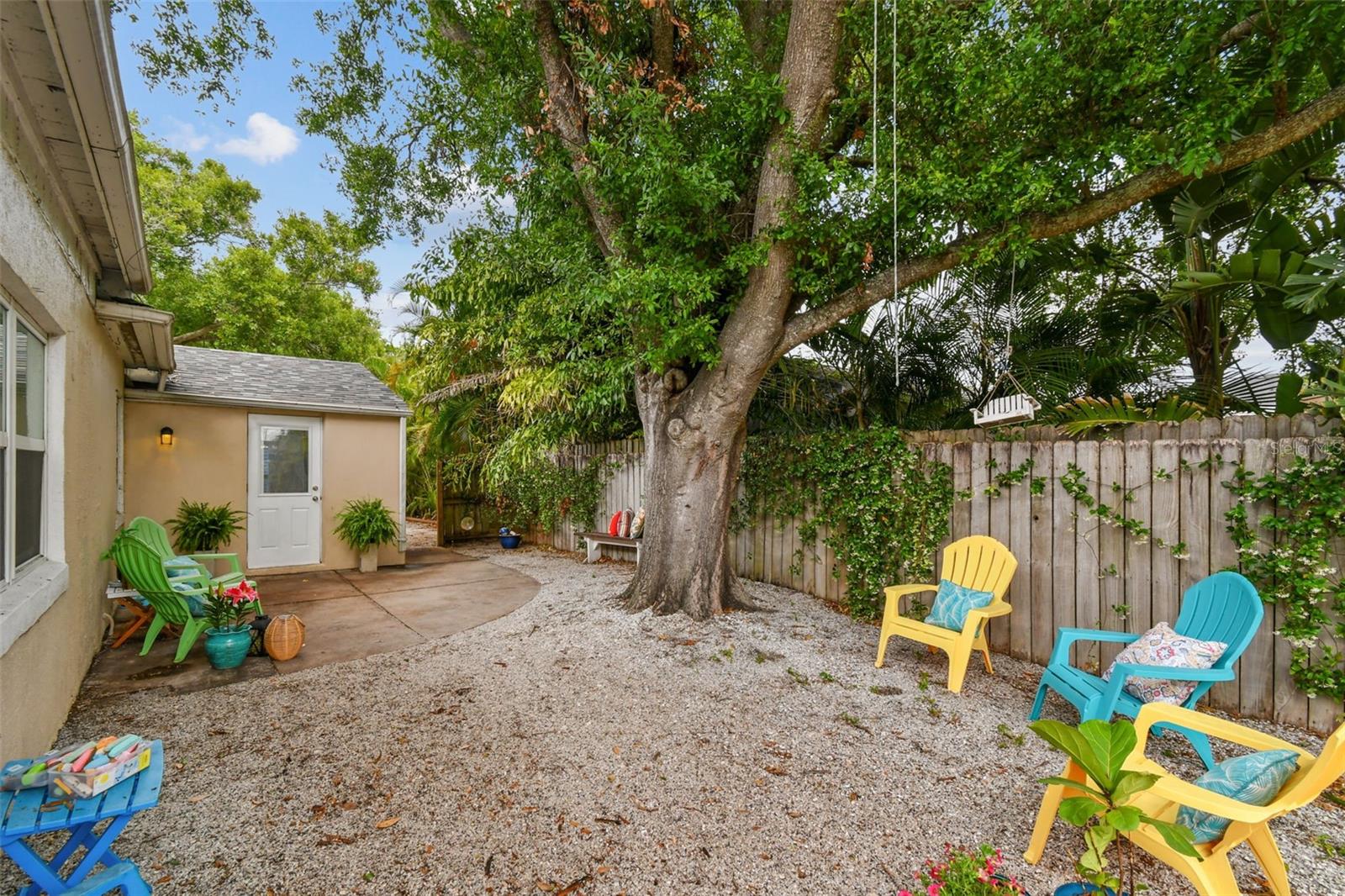Welcome to this beautifully maintained 3-bedroom, 2-bathroom home nestled in the heart of the highly sought-after Northeast Park neighborhood. Perfectly situated within walking distance to Whole Foods and just a short bike ride to Coffee Pot Park and vibrant Downtown St. Pete, this home offers both comfort and convenience. Step inside to an inviting open floor plan that features high ceilings in the dining area, creating a bright and airy space that’s perfect for entertaining. The split-bedroom layout ensures privacy, with the spacious primary suite tucked away at the rear of the home. The en suite bathroom boasts a walk-in shower, dual vanity sinks, and ample closet space. The kitchen , complete with newer stainless steel appliances, granite countertops, and plenty of cabinetry for storage. Just off the main living area, you'll find two well-sized guest bedrooms and a modern updated guest bathroom for family or visitors. Out back, enjoy the Florida lifestyle under a naturally shaded patio that opens to a large, lushly landscaped backyard—ideal for relaxing, gardening, or even future expansion. Additional features include a brand-new roof (2025), a new A/C system (2024), and mature landscaping that provides curb appeal and privacy. Don't miss the opportunity to call this move-in-ready gem your new home in one of St. Pete’s most desirable neighborhoods!