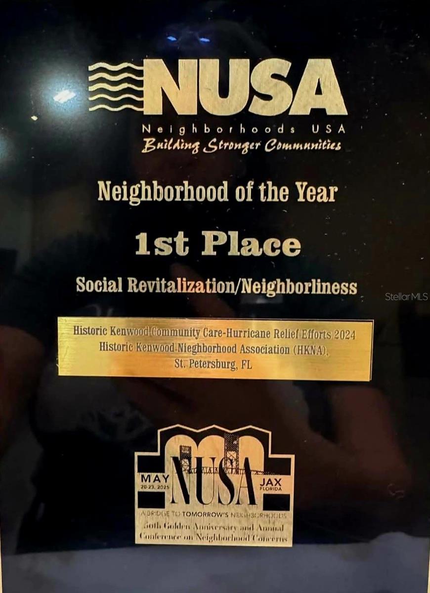 Move into the top-rated neighborhood in the country! Historic Kenwood earned "Neighborhood of the Year" for 2025 from Neighborhood USA (NUSA) for the 2nd time in five years! The home’s location is walking distance to a brand new Starbucks, the popular shops and restaurants in the Grand Central District, and convenient to I275 and US19. This Historic Kenwood cottage combines original features - heart pine floors and coquina brick, with modern conveniences - stainless steel appliances, induction range, and LVP kitchen flooring. The enclosed front porch is air-conditioned and the spacious living-dining room includes a cozy fireplace. Your outdoor living Florida-style includes two Trex decks that lead to a large, private backyard and 2-car garage. Historic Kenwood is a designated Artists’ Enclave where artists live, work and create art within the home. The 2-car garage is easily converted into an artist studio or ADU and still provides ample parking. Don’t miss out! Buy the home of your dreams in Historic Kenwood, the top neighborhood in America!