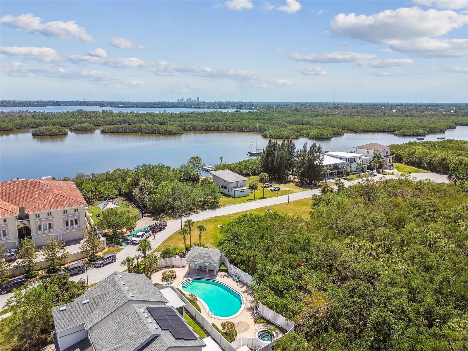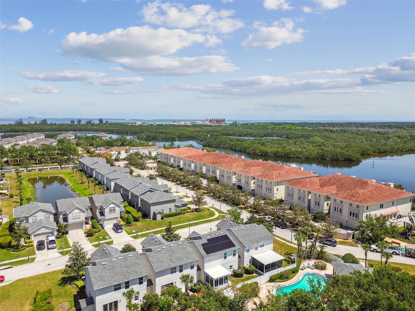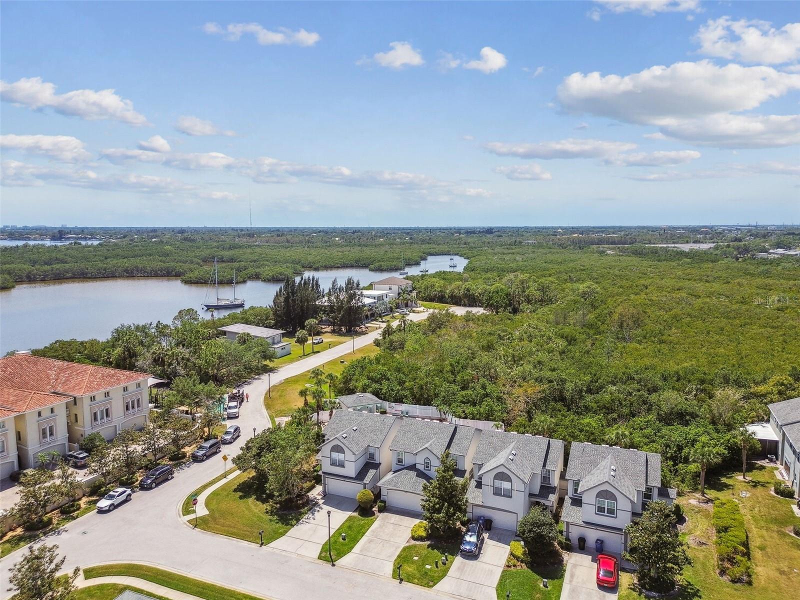 Under contract-accepting backup offers. The Best of Both Worlds: Townhome Convenience with the Feel of a Single-Family Home! Welcome to your dream home in one of St. Petersburg’s most desirable and convenient neighborhoods! This beautifully maintained 3-bedroom, 2.5-bath residence offers the low-maintenance perks of townhome living without sharing a common wall—giving you the privacy and comfort of a single-family home. Well-suited to a busy lifestyle with all exterior maintenance and lawn care included in HOA fee. The first level with soaring 9.5 foot ceilings has a large, well-designed chefs kitchen, dining area, living or great room, laundry room and guest half bathroom. Laundry room has an additional under-the-stairs walk-in storage area. The Kitchen features ample, well-designed cabinetry, 7 self-closing drawers, beautiful glass backsplash, center island with lovely double pendant lighting, 2 pantry closets, stainless steel designer sink and gorgeous marble countertops. All stainless steel appliances including LG Inverter Linear French door refrigerator. The family room has 3, floor to ceiling sliding glass doors that open wide for entertaining and lead out to the 150 sq ft glass-enclosed sunroom. Follow the switchback (u-turn) stair case, also with engineered wood flooring, up to the second floor and you will find the spacious Primary suite with 2 walk-in closets, fully renovated en-suite bathroom with gorgeous spacious, frameless glass shower, dual sink vanity with marble top and private water closet. Second level also features 2 additional bedrooms with walk-in closets and a full bath with tub and another linen closet. All windows were replaced with noise silencing, energy efficient hurricane rated windows in 2024 with new screens everywhere. All windows have window treatments including lovely and functional plantation shutters. All window treatments including the large family room curtains remain. Solar panels produce enough electricity to reduce monthly Duke Energy electric bill to less than $40 (normally $300-$400). Whole house water treatment system in garage as well as reverse osmosis water filter under kitchen sink with separate faucet. All bedrooms and family room have ceiling fans with lights. All rooms and stairs have engineered hardwood flooring except kitchen and bathrooms which have beautiful tiled flooring. Additional features: Security system. Coat closet at front entry. Garage door opener has battery back up. Lennox AC system with ultraviolet air purifier. Two car garage has numerous storage shelves. LG TrueSteam washer and WaveForce dryer included. Roof replaced in 2018. Exterior painted in 2019. Community offers private (card access) pool, Jacuzzi, and playground. Home is located near Weedon Isle Nature Preserve. Shopping along 4th Street Corridor, Downtown St Petersburg. Convenient to Tampa: Less than 9 miles to MacDill Air Force Base, 15 minutes to Tampa Airport and 25 minutes to most of St Petersburg's beautiful award winning beaches. HOA fee includes Escrow reserves fund for exterior and roof, Cable, Gig-speed Internet, exterior maintenance, pool and lawn maintenance. Elevation 9.5ft - Never flooded. Street lighting, rain gutters, sidewalks. Pet friendly community. Ready to enjoy the perfect balance of comfort, convenience, and style? Schedule your private tour today.!