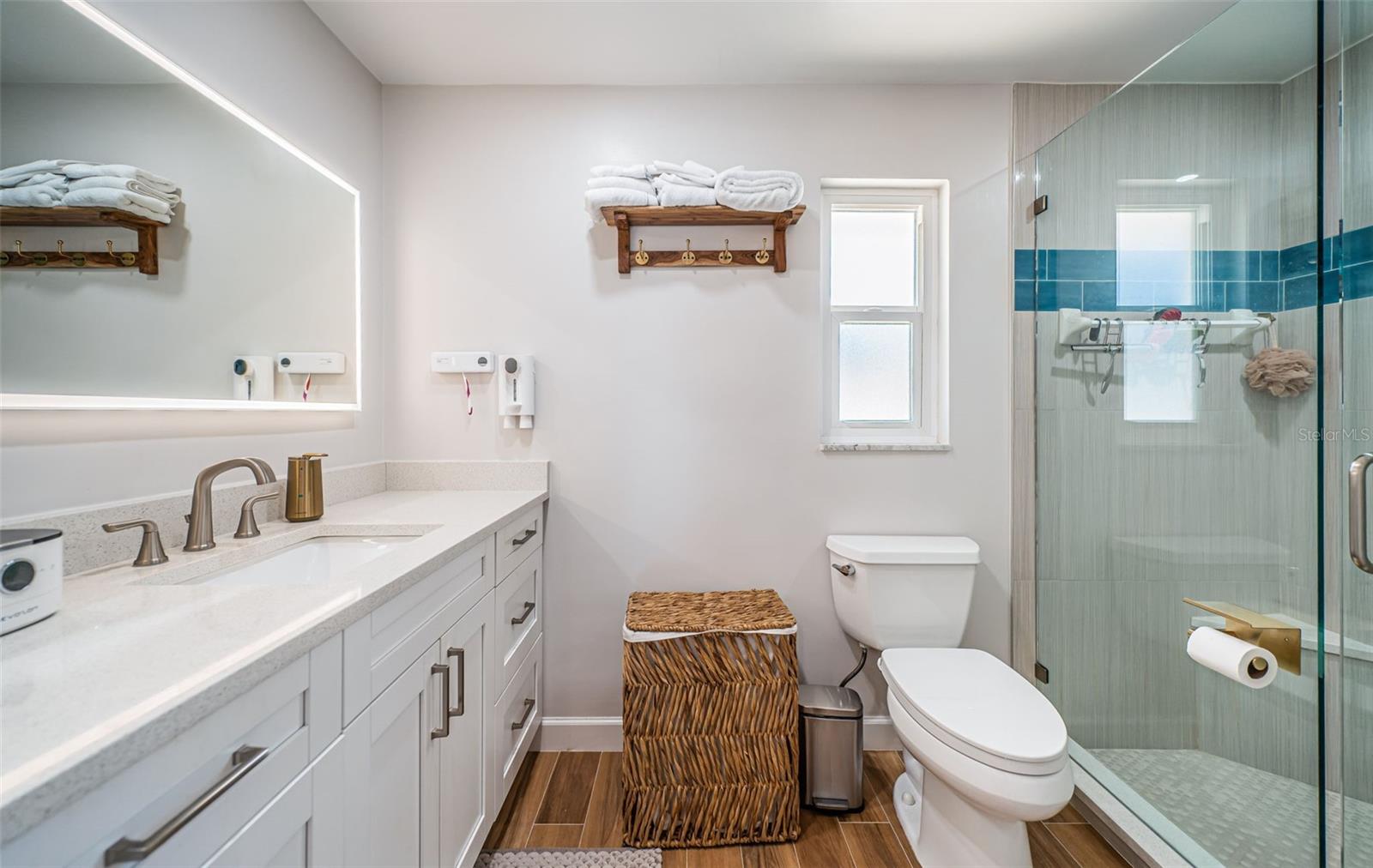 This exceptional and spacious 4-bedroom waterfront residence enjoys elegant finishes, fabulous waterviews and easy boating access to the Intracoastal waterway and the Gulf. With its lush landscaping, richly-pavered circular driveway, and fine covered entry, you’ll love the welcoming curb appeal of this outstanding split-bedroom (plan) home. Sliding glass doors/windows (located in the family room, kitchen and dining areas) pocket into the walls, delivering a remarkable indoor-outdoor living and entertaining experience. Overlooking the pool deck and waterfront, your splendid kitchen features lavish quartz surfaces, coastal white cabinetry, tile backsplash, under-cabinet lighting, an upgraded bespoke appliance package and a full counter-height passthru to the pool deck bar. Family room boasts an exquisite matching dry-bar with wine/beverage center, quartz counters, and plenty of cabinetry storage. Overlooking the waterfront and opening to the pool deck, the owner’s suite provides a sizable walk-in closet with superb closet system and a sumptuous private bath with porcelain floors, wide quartz vanity and a dazzling walk-in glass shower enclosure. Supporting the second waterfront bedroom, the plush guest bath – with luxurious shiplap wall finishes and a beautifully-tiled walk-in glass shower enclosure – provides direct access to the pool deck. Bedrooms 3 and 4 are considerable in size and are joined by a wonderful Jack and Jill Bath. Step out back to 370sqft of covered deck overlooking your pool and waterfront and take in all that a waterfront lifestyle has to offer – the perfect place for dining, gentle breezes, relaxation and fun. A huge paver deck surrounds the lovely inground heated pool (with salt chlorination system) - assuring ample room for lounging and sun bathing. Step down to your updated sea wall cap and composite dock with a 13,000 lb boat lift and a 10,000 lb dual jet ski lift that make your waterfront living a true joy. The large dock also has a step-down area for launching kayaks/paddleboards. This terrific home has numerous value-added extras including a well-sized 2-car garage with epoxy flooring, roomy indoor laundry with substantial storage, storm shutters, extensive landscape lighting, wide side yards, privacy fencing and generous exterior storage. This is a great value in an ideal boating location! Dimensions are estimates, buyer to verify dimensions.