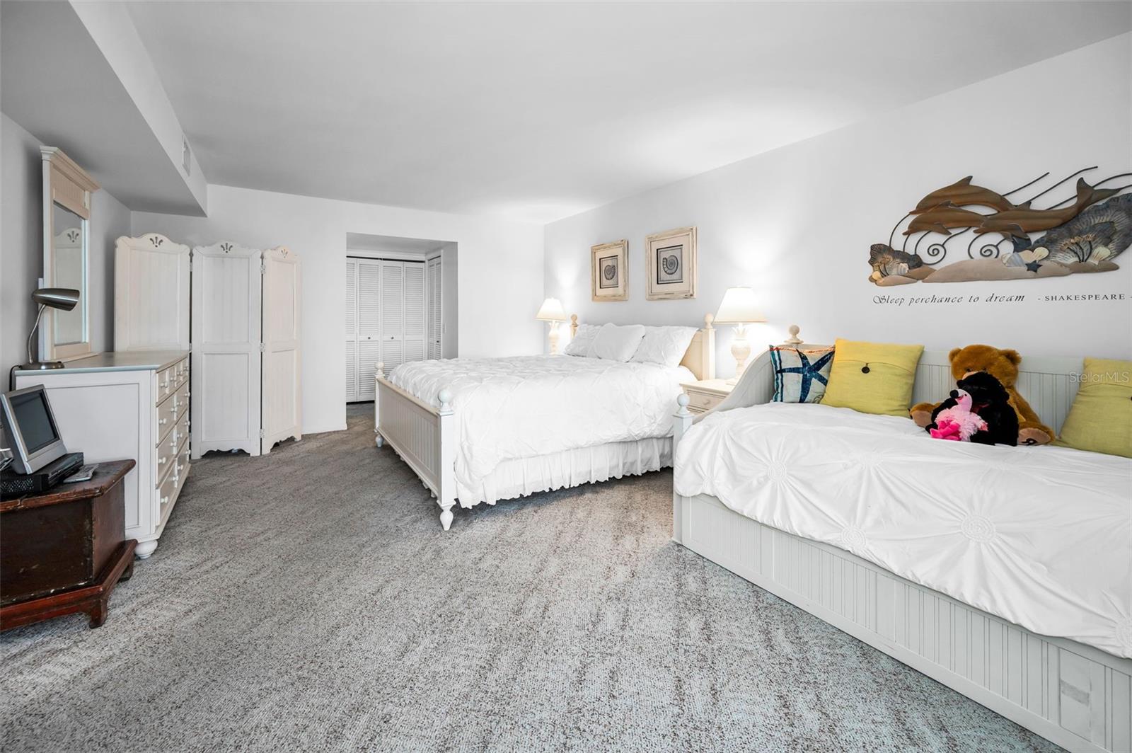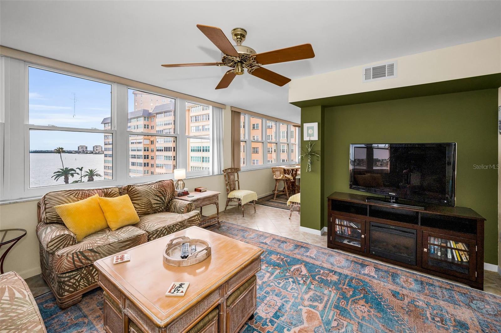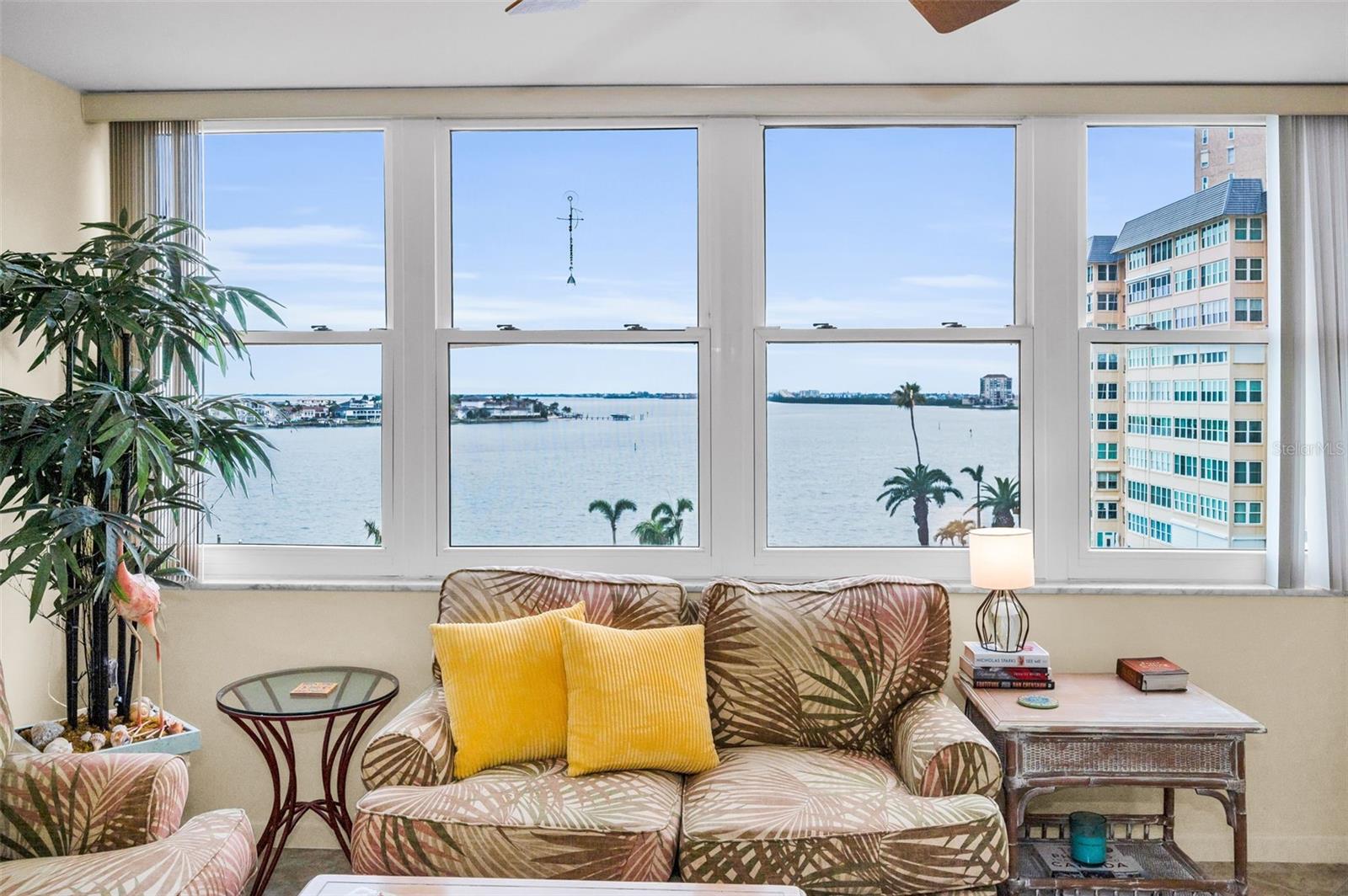 Tropical island setting and expansive water views are yours to enjoy from this spacious 1,605 Sq Foot Point Brittany condo with impact windows being sold fully furnished/turnkey. Covered Parking space #32 is steps away from the building entryway. You will take notice of the pride of ownership and appreciate the flowing floorplan. Spectacular WATER VIEWS from your spacious 14x26 Living/dining area, 14x14 Family Room, 14x7 Sun Room, 14x24 Master and 13x15 2nd Bedroom! Point Brittany has it all! Point Brittany offers a myriad of amenities to accommodate a wide range of interests. The community boasts four heated swimming pools, a jacuzzi/hot tub, four HAR-TRU tennis courts lighted for night play, pickleball and shuffleboard courts and a waterfront Pavilion picnic and event area with a fire pit. A walkway path hugs the serene waterfront where a kayak storage area and launching dock, a fishing pier and deep water boat docks can be found. The Point Brittany Residents Club is a hub of activity featuring a state-of-the-art fitness facility, saunas, a billiard room, a library, the elegant Ballroom and multiple additional activity rooms. At Point Brittany, a busy schedule is planned for community wide, festive, social and culinary events as well as regularly scheduled activity groups to tempt any interest. These include yoga, a variety of exercise classes, card and other games groups, a book discussion group, art and writing classes and much more. Within the grounds is a family-owned medical office with a GP, nurse, physical therapist, and podiatrist, as well as a beauty salon for your convenience. Adjacent to the property is the Bayway Country Store and Butcher Shoppe offering meat, seafood, premade fare: sandwiches seafood dips, salads, soups, smoked fish and more…people drive miles for their products! Just minutes to St. Pete Beach, Ft. DeSoto Park, Downtown St. Pete, shopping, restaurants and interstate 275. Become an islander at Point Brittany!
