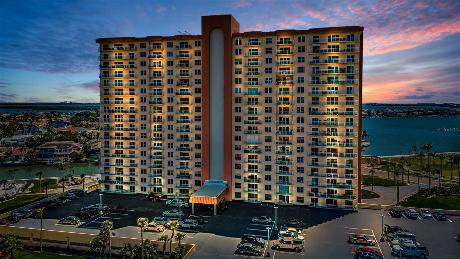 Located on the highly desirable southwest-facing side of Building 6 in Point Brittany, this rarely available 5th-floor corner unit offers expansive water views and exceptional privacy. Enjoy a sprawling 40-foot balcony overlooking Boca Ciega Bay, the Intracoastal Waterway, and the active waterway—perfect for watching dolphins, boats, and sunsets year-round. This turnkey two-bedroom, two-bath home features floor-to-ceiling hurricane-rated sliding doors in the living room and both bedrooms, along with hurricane-rated windows in the primary suite that provide side views of the community pool and waterway. The elevated corner location means no neighboring balconies, flooding the home with natural light and offering views from every room. Inside, the open-concept floor plan is finished with luxury vinyl plank flooring and a coastal-inspired color palette. The kitchen offers granite countertops, white cabinetry with updated hardware, and white appliances. Both bathrooms are updated with granite counters and modern vanities. The spacious primary suite includes a walk-in closet, walk-in shower, and additional storage. The guest bedroom includes a Murphy bed, offering functionality and flexibility for visiting guests or use as a multipurpose space. Additional highlights include a new electrical panel, electronic hurricane shutters on all sliders, hurricane-rated windows throughout, and covered garage parking in Space C-19. A private storage closet and the laundry room are conveniently located just outside the front door. Point Brittany is a guard-gated 55+ waterfront community offering extensive resort-style amenities: four heated pools, two spas, fishing piers, kayak launch and storage, tennis and pickleball courts, shuffleboard, and a full clubhouse with a fitness center, billiards room, library, card/game rooms, on-site gourmet deli, salon, medical office, and electric vehicle charging stations. Boat slips are available on a first-come basis. Golf enthusiasts will appreciate the proximity to Isla del Sol Yacht and Country Club, located just across the bridge. The club offers championship golf, tennis, dining, and social events. Membership is optional and requires additional fees. The community is currently installing a brand-new wind-vented roofing system, enhancing durability and long-term value. Just minutes from St. Pete Beach, Fort De Soto Park, Gulfport, and downtown St. Petersburg, with quick access to I-275, Tampa International Airport, and Sarasota. Monthly HOA fee includes cable TV, internet, water, sewer, trash, exterior maintenance, pest control, reserves, and 24-hour security. One pet up to 25 lbs allowed. Subject to HOA approval. This is coastal Florida living at its finest—schedule your private showing today. View the Video :https://youtu.be/o6oRlulhSmQ