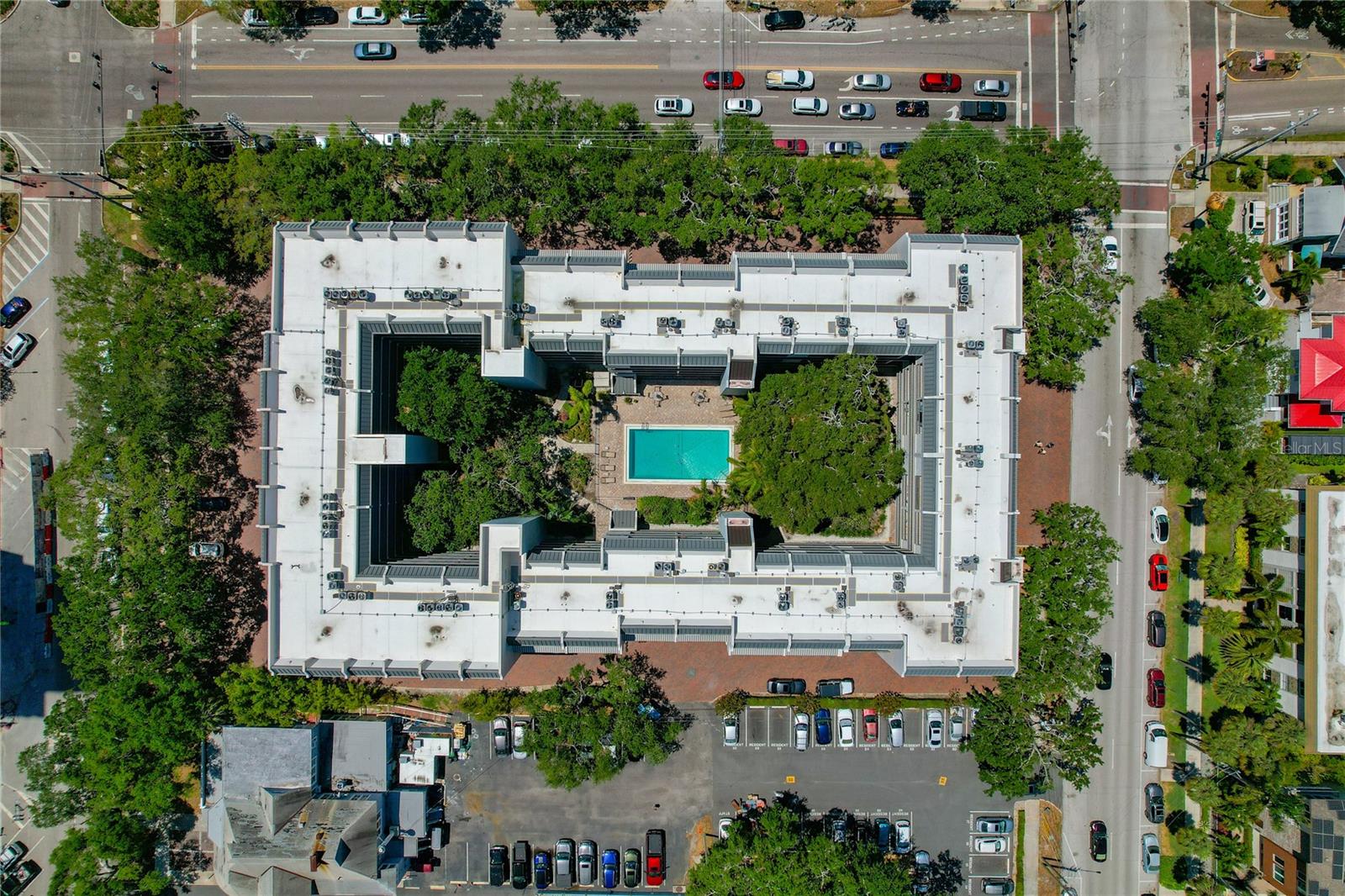 HUGE PRICE REDUCTION! PRIME DOWNTOWN LIVING IN THE HEART OF ST. PETERSBURG! Welcome to the Townview, a premier residence and oasis in the heart of St. Petersburg, and step into this 2-bedroom, 1.5-bathroom second-floor condo to discover a unique two-level layout that maximizes space and privacy. The upper level features an open-concept living and dining area that flows into a bright kitchen equipped with granite countertops, dishwasher, disposal, range, as well as a stainless steel refrigerator and microwave installed in 2024. The freshly-painted unit features a washer and dryer, as well as an AC system, custom-installed in 2019, which can be controlled from your cellphone. An elegant chandelier, installed in 2025, adds sophistication to the dining area. Slide open the glass doors to access your additional storage and private balcony overlooking the lush courtyard and sparkling pool below. Downstairs, you will find two comfortable bedrooms including a spacious primary suite with its own private balcony, creating a peaceful sanctuary away from the living areas. Beautiful light gray laminate flooring runs throughout the entire unit, providing both elegance and easy maintenance. For cycling enthusiasts, custom bicycle mounts have been installed in the closet for convenient storage. A deeded parking space next to 5th Avenue provides easy access to I-275, making commutes to Tampa, Sarasota, and the beautiful Gulf beaches a breeze. The Townview community is renowned for its meticulously maintained grounds and exceptional amenities. Residents enjoy a beautifully landscaped courtyard shaded by mature oak trees, a heated 40 x 20 pool for year-round enjoyment, and a communal gas grill area perfect for entertaining friends and family. With $1.1 million in improvements and upgrades completed in 2021-2022 and a new roof installed in 2023, the Townview passed the Milestone Inspection Report with flying colors and has been completely rewired for high-speed fiber optic internet access in each unit, all included in your low monthly maintenance fee of $832. Location is perhaps this property’s greatest asset. Situated just one block from Beach Drive, you are steps away from waterfront parks, upscale shops, and charming cafés. The Museum of Fine Arts, Dali Museum, Chihuly Collection, Museum of the American Arts and Crafts Movement, and the iconic St. Petersburg Pier are all within easy walking distance. A short stroll to Central Avenue puts you at the heart and soul of the city’s vibrant cultural scene. Experience the best of downtown St. Petersburg living in this urban oasis that truly is the area's best-kept secret. Whether you're seeking a vibrant downtown lifestyle or a peaceful retreat, this Townview condo delivers the best of both worlds!