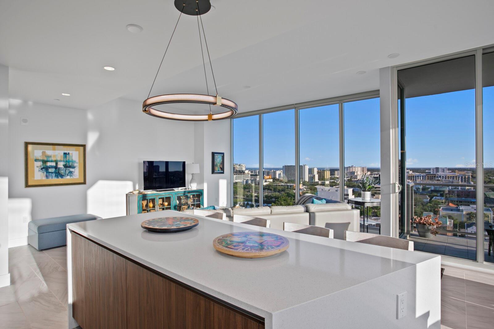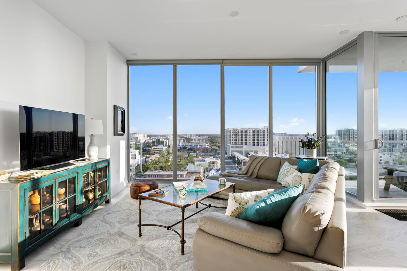 Where Vision Meets Vibe — Welcome to REFLECTION St. Pete. Introducing Skyline 1408, a rare Amethyst corner residence perched on the 14th floor of one of Downtown St. Pete’s most exclusive luxury towers. With over 2,100 sq ft of refined living space, this artfully curated home is one of only 88 bespoke residences, offering uninterrupted southeast-facing views of Mirror Lake, the Downtown skyline, and Tampa Bay. Step inside and feel the difference—10-foot ceilings, floor-to-ceiling glass, and porcelain flooring throughout create a luminous, gallery-like setting. The open-concept great room is wrapped in jaw-dropping vistas, while the designer kitchen features quartz countertops, a waterfall-edge island, and panel-ready Bosch appliances integrated into custom cabinetry for a sleek, seamless look. Enjoy intimate dinners with a panoramic backdrop in the dining area—or take in the ever-changing view from the kitchen window. Slide open the terrace doors to glowing sunsets and shimmering city lights. The expansive primary suite offers a true retreat with a European-style spa wet room, premium fixtures, and a custom walk-in closet. Two additional bedrooms—perfect for guests, a home office, or media room—also feature soaring windows and generous storage. ? Special Features That Set This Home Apart: No HOA fees until October 2025 – Enjoy immediate luxury living with a financial head start Two dedicated parking spaces with a built-in EV charging conduit—future-ready convenience for electric vehicle owners Full access to the building’s 12,000 sq ft rooftop oasis, including: Glass-enclosed fitness center Resort-style pool and spa deck Social lounge with fire pits and an outdoor kitchen/bar Panoramic views of the bay and skyline REFLECTION is designed for wellness and innovation, featuring advanced air purification, touchless entry, and a water softening system in every residence. Perfectly located at the intersection of Downtown, the Edge District, and the Warehouse Arts District, Skyline 1408 puts you steps away from St. Pete’s best dining, art, and culture. Urban luxury, reimagined. Schedule your private showing today and experience life in full color.