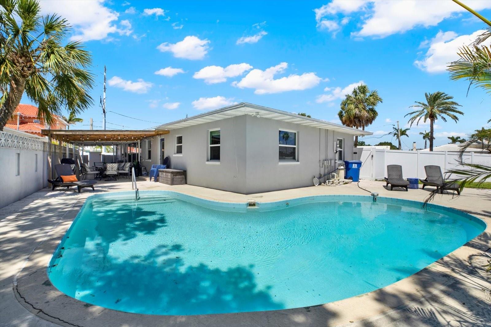 **Coastal Vibes & Fabulous Location and PRICED TO SELL ! This charming 3-bedroom, 2-bath pool oasis sits on a spacious corner lot, just minutes from the stunning beaches of Treasure Island. Perfectly positioned to enjoy the best of both worlds, calming beaches and booming St Pete city life, THIS HOME IS A MUST SEE!!! Head over to Sunset Park for fishing or a scenic picnic with breathtaking views or enjoy a bike ride to the beach!! The homeowner has thought of everything—this place is move-in ready with tons of upgrades! Enjoy the newer pool system, new AC and updated ductwork, and a brand new roof. Additional perks include natural gas hookup, a newer on-demand gas water heater, newer electrical wiring, and fresh attic insulation. The kitchen shines with bright wood cabinets and beautiful butcher block countertops—ideal for cooking and entertaining. The private backyard is perfect for relaxation with a worry-free patio and newer vinyl fence offering plenty of storage space. A wonderful side porch completes the outdoor charm. Rinse off the beach sand after a full day of fun in the sun in the outdoor shower! Inside, the modern beach-style decor creates the perfect getaway vibe, making it a dream for a staycation or a forever home. With room to grow, this property is an incredible investment in one of St. Pete’s most sought-after neighborhoods. Don’t wait—come check it out before it’s gone!**