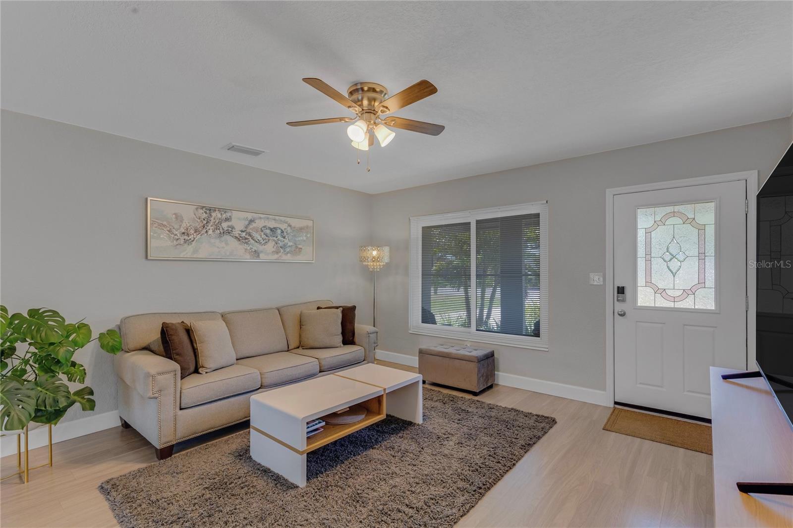Welcome to your stunning, worry-free home! This beautifully updated three-bedroom, two-bathroom residence is move-in ready and waiting for its next owner. With solid concrete construction and a location outside the flood zone, you'll have a peace of mind- especially during hurricane season. The majority of the home was updated in 2022, including a new roof, HVAC system, tankless water heater, electrical, and plumbing. Since then, the current owner-known for their meticulous attention to detail- has gone above and beyond to further enhance the home. The home has been professionally treated for termites and its protected with bait stations installed around the property. All plumbing beneath the home was chain-cleaned to ensure smooth and efficient water flow. A large tree was removed from the property, and white vinyl fence was added for privacy and security. A shed was also installed, providing extra storage space. The home features irrigation system to support the added landscaping. In 2024, the owner painted both the interior and exterior using top-quality paint. Additional updates include a tiled front patio, concrete sidewalk, new backyard tiles, a brand-new back patio door, a brand new side door by the kitchen, extra cabinet in the bathroom was installed along with a shower glass and ceiling vent/fan, insulation was also added to the attic space to reduce heating and cooling costs. Call today to schedule a private tour of this stunning corner-lot home!