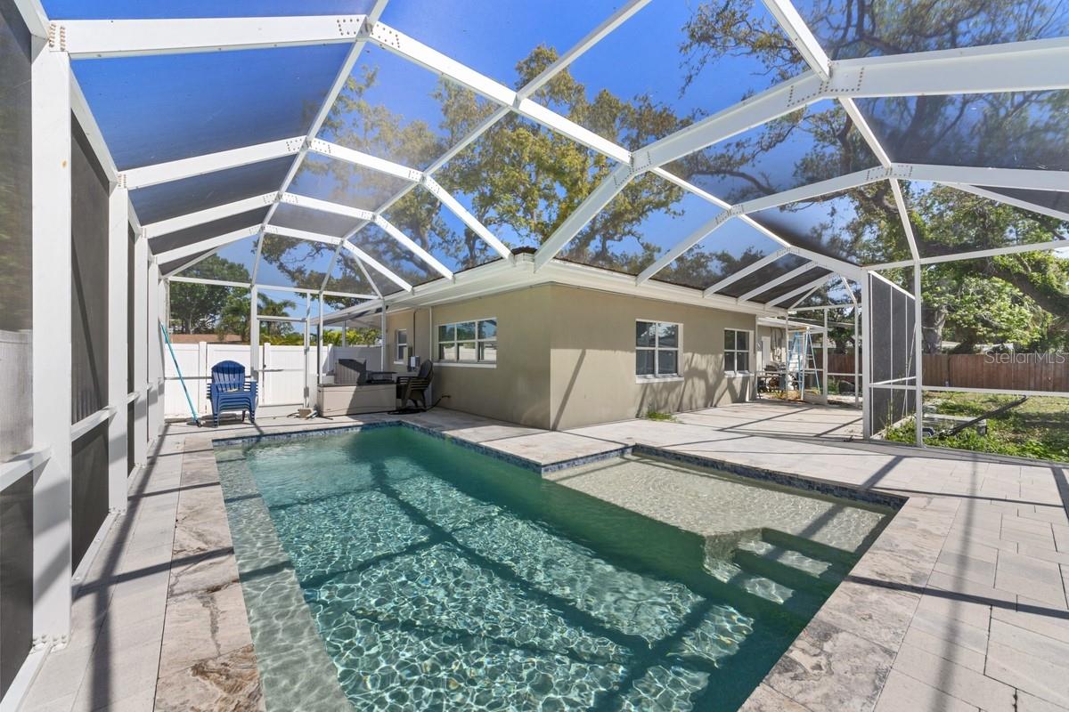 This 2-bedroom, 2-bathroom home offers a spacious living area with a beautiful, eye-catching fireplace and a generous kitchen featuring stainless steel appliances. Both bedrooms and bathrooms are well-sized, providing comfort and functionality throughout. The home includes a brand new roof that’s only 2 years old, a 2-car carport, and a large backyard complete with a screen-enclosed in-ground pool and a patio—perfect for relaxing or entertaining. Conveniently located near shopping, dining, parks, and just minutes from the beautiful Gulf beaches.
