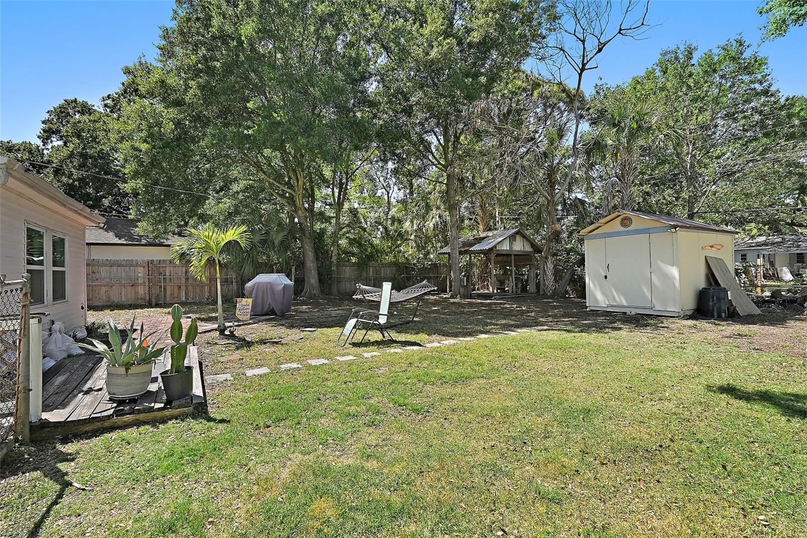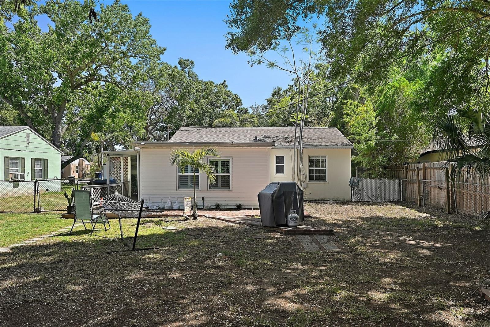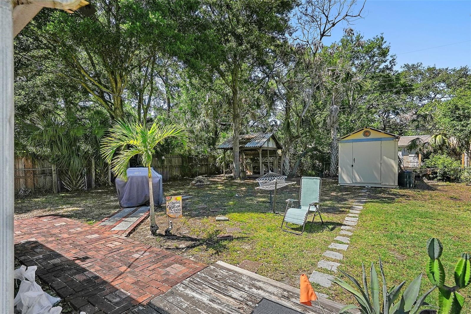 Updated 2-bedroom home, located in the peaceful and friendly Snell Shores neighborhood of Northeast St. Pete. This nicely updated 2-bedroom, 1-bath home is move-in ready and full of charm. with an expansive and mature backyard. Interior features include new 18" tile and laminate flooring, solid birch kitchen cabinets, updated appliances, and a renovated bathroom with new fixtures, tile, and stylish glass tile accents. Enjoy a spacious dining room, bright family room, and utility room with washer/dryer hookups—stackable W/D included. Major upgrades include: New HVAC system (2024), 2016 Roof, tankless water heater, window shutters, custom 8'x12' shed with electric, lighting, and fan offers extra storage or workshop space. Out back, relax or entertain in the 10'x10' picnic shed with fire pit, upgraded with electric for music, lighting, or a TV. The large backyard has plenty of room for a pool or even home expansion. Just 5 minutes to downtown St. Pete and 25 minutes to Tampa Airport with easy interstate access. This home blends quality, comfort, convenience, and potential—schedule your tour today!
