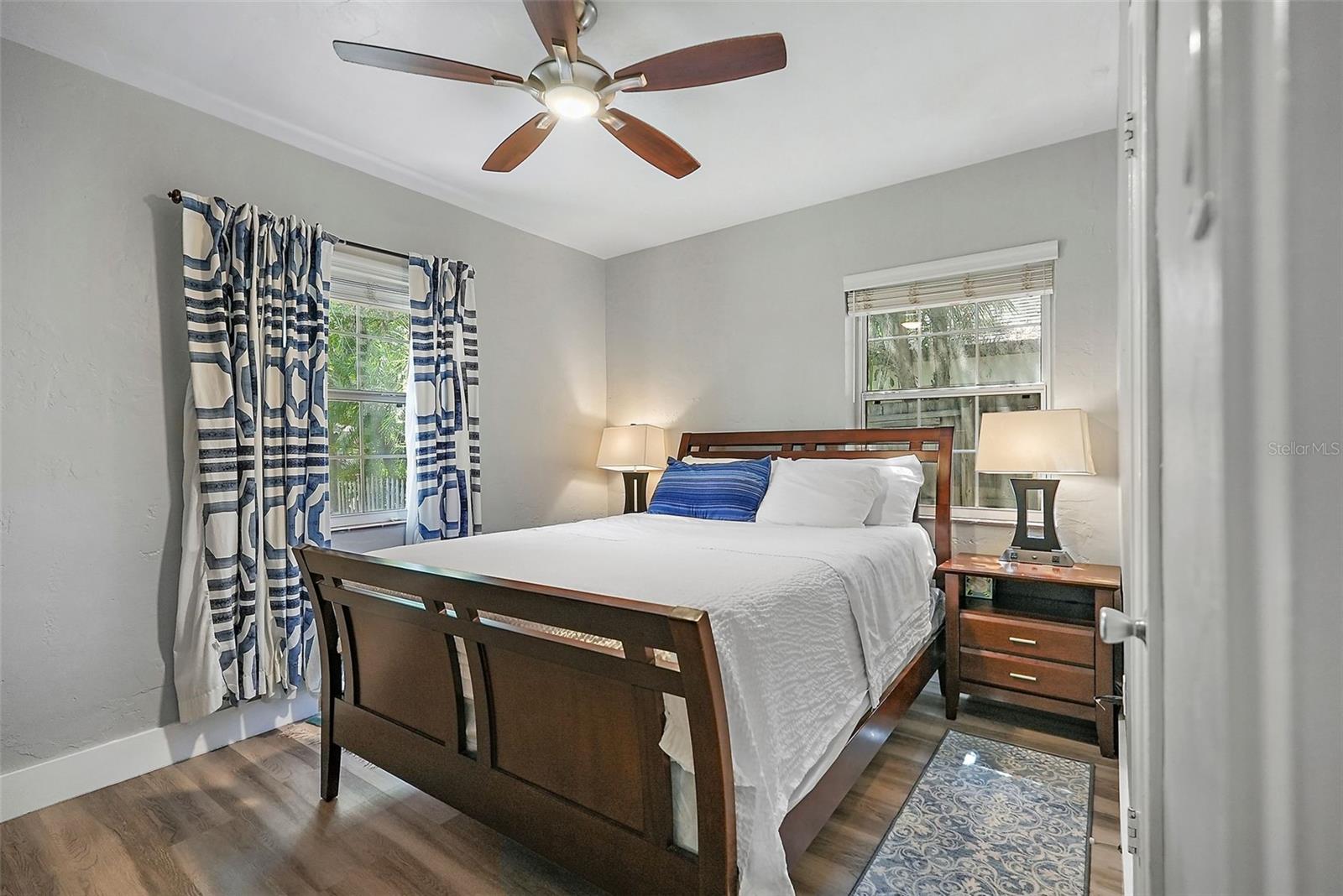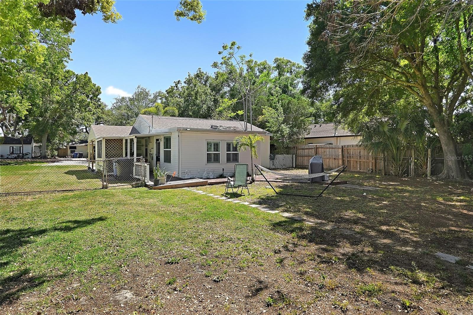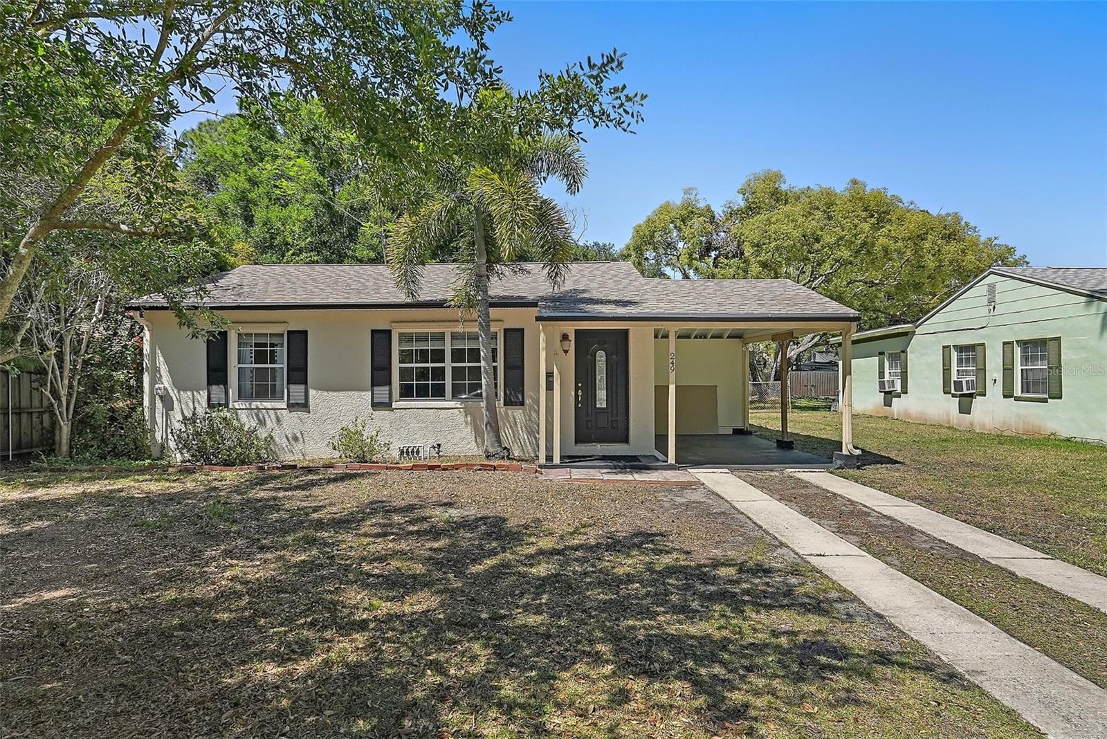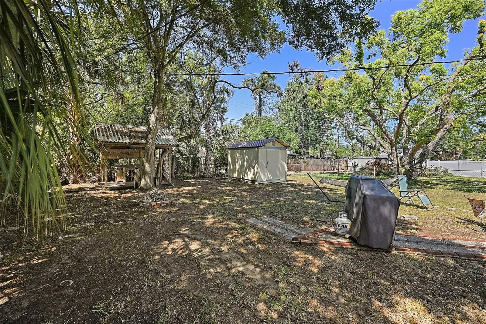 Updated 2-bedroom home, located in the peaceful and friendly Snell Shores neighborhood of Northeast St. Pete. This nicely updated 2-bedroom, 1-bath home is move-in ready and full of charm. with an expansive and mature backyard. Interior features include new 18" tile and laminate flooring, solid birch kitchen cabinets, updated appliances, and a renovated bathroom with new fixtures, tile, and stylish glass tile accents. Enjoy a spacious dining room, bright family room, and utility room with washer/dryer hookups—stackable W/D included. Major upgrades include: New HVAC system (2024), 2016 Roof, tankless water heater, window shutters, custom 8'x12' shed with electric, lighting, and fan offers extra storage or workshop space. Out back, relax or entertain in the 10'x10' picnic shed with fire pit, upgraded with electric for music, lighting, or a TV. The large backyard has plenty of room for a pool or even home expansion. Just 5 minutes to downtown St. Pete and 25 minutes to Tampa Airport with easy interstate access. This home blends quality, comfort, convenience, and potential—schedule your tour today!