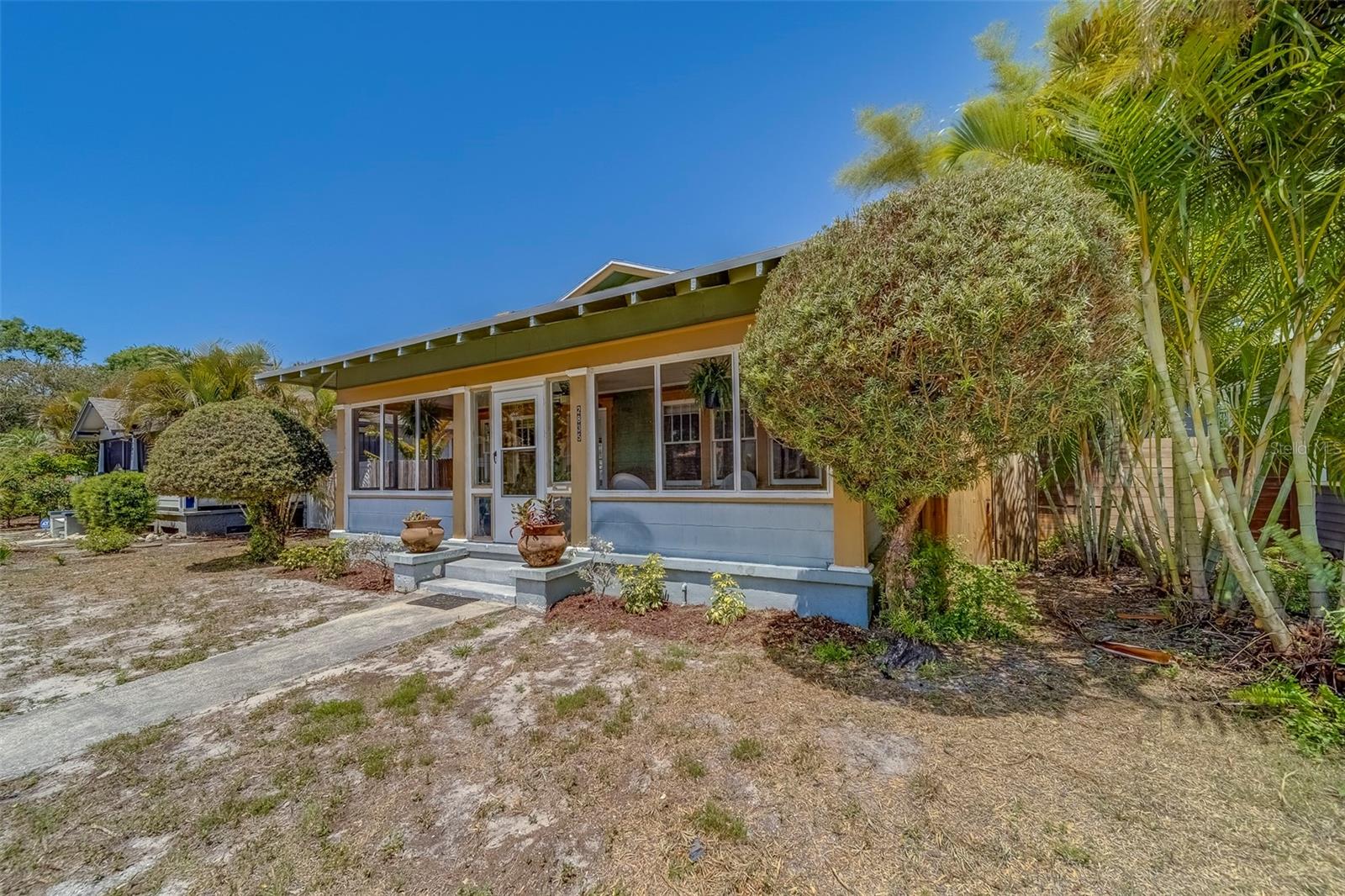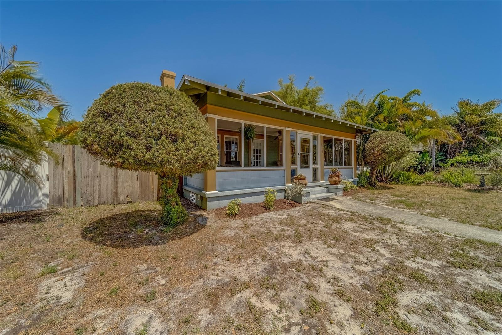 Charming Historic Kenwood Bungalow – Where Vintage Meets Modern Comfort Nestled in the heart of Saint Petersburg’s coveted Historic Kenwood neighborhood, this delightful 2-bedroom, 1-bath home is bursting with character and thoughtful updates. Step into a piece of history, where the charm of a century-old bungalow is beautifully preserved with original sash rope windows, oversized baseboards, and elegant casings—while modern upgrades provide peace of mind. Enjoy the benefits of a new roof (March 2025), new AC (2022), and newer laminate flooring throughout. The inviting living area features a cozy wood-burning fireplace, creating the perfect setting for relaxing evenings or entertaining guests. Start your mornings on the beautiful screened-in front porch, ideal for sipping coffee or simply soaking in the neighborhood vibe. Out back, discover a spacious fenced yard—a true blank canvas ready for your personal vision. Whether you're dreaming of a pool, a lush garden, an accessory dwelling unit (ADU), or simply more room to entertain, this yard has the space to make it happen. The detached 1-car garage adds functionality and potential for future expansion, all close to downtown St. Pete, world-famous Gulf beaches, eclectic restaurants, boutiques, art galleries, and more. Don’t miss your chance to own a slice of St. Pete history in one of the city’s most artistic and vibrant communities. Schedule your private tour today!