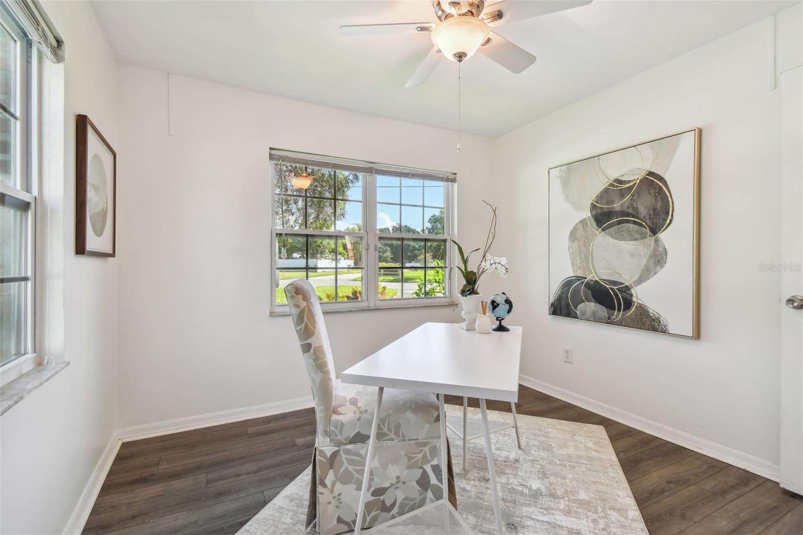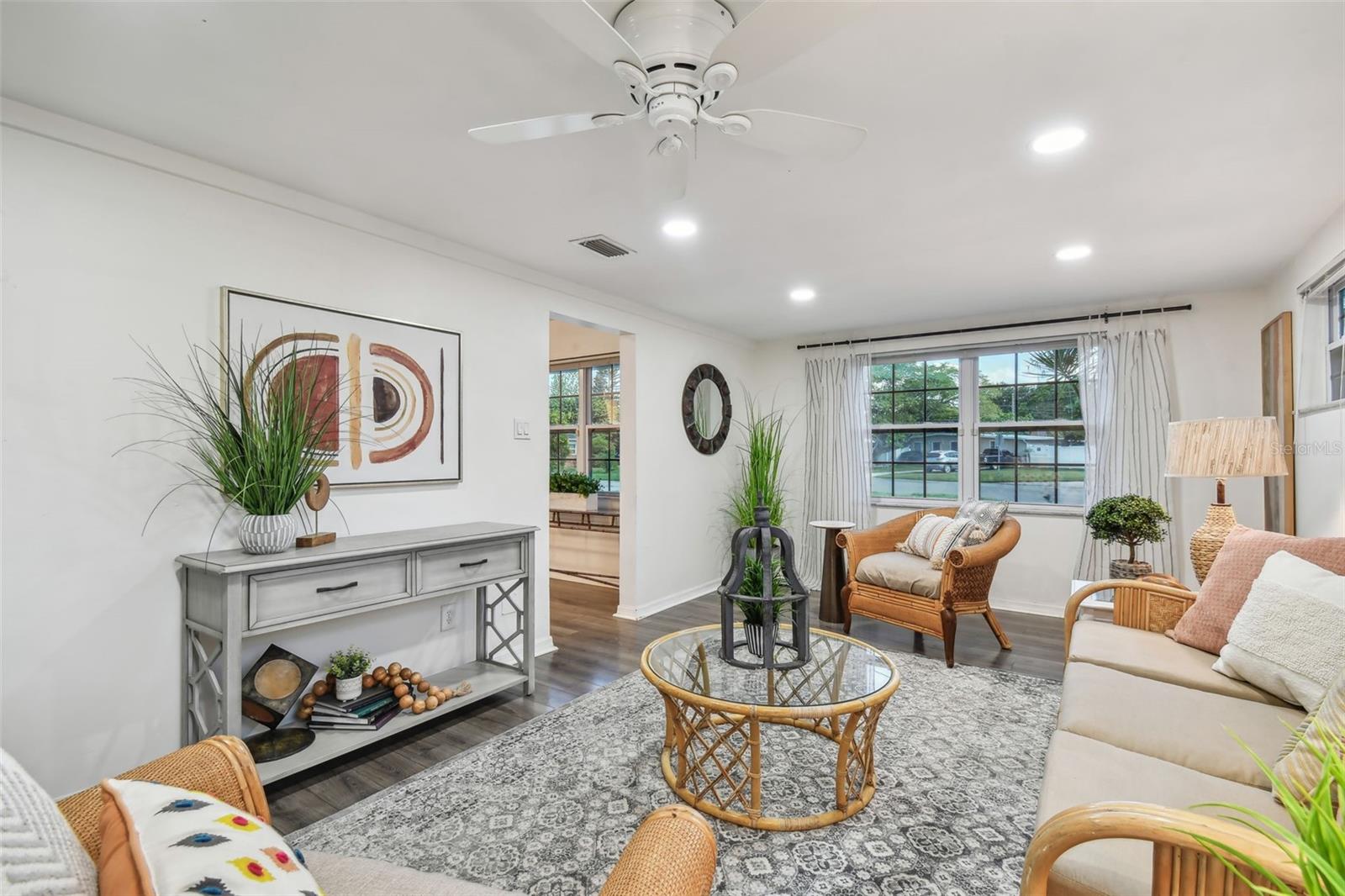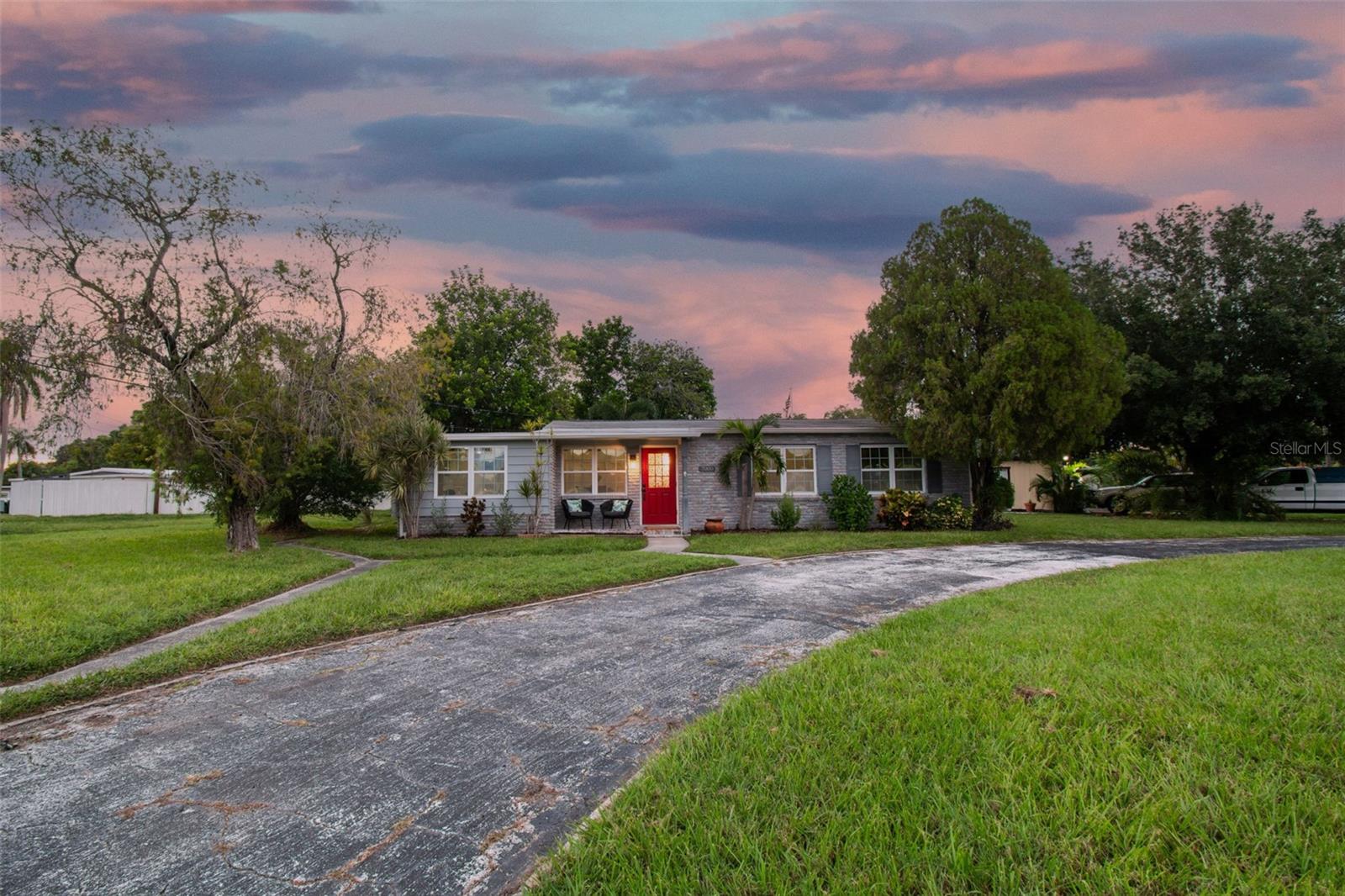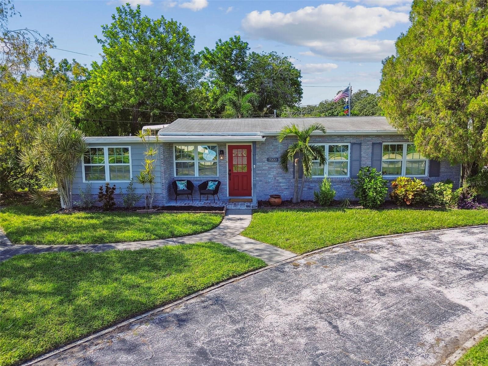 PRICE IMPROVEMENT! BRING ALL OFFERS! Tucked away on an expansive corner lot (96x100), this delightful home offers a blend of character and modern comfort. The charming brick exterior of this 1953 home invites you inside, where a bright and airy split/open floor plan awaits. The open layout includes a cozy living room perfect for intimate gatherings along with a sprawling, multi-purpose family room that can be used as a second living area, office space, or can be converted into a 4th bedroom/guest space. The kitchen is designed for function and style, with quartz countertops and plenty of counter space and storage space for all your cooking needs. The dining area is conveniently situated between the kitchen and living room. The primary bedroom sits quietly on the left side of the split floorplan offering a peaceful retreat with plenty of closet space along with a private updated bathroom, while the two additional bedrooms and guest bath are positioned on the other side of the home for added privacy. The colonial-style windows bring in even more charm and highlight the natural light in the open living space. The enclosed porch in the back can be used for multiple purposes such as an inside/outside hangout space, home gym, workshop, additional storage, or a combination of all of these. You could even convert this space back into a carport. As you head into the backyard you'll be greeted by your own tropical retreat that offers plenty of shade with lush landscaping. The backyard also features a brick patio that sits right off the TV nook, perfect for enjoying outdoor entertainment under the shade—only a 15-minute drive to downtown St. Pete and within walking distance to Meadowlawn Park. Additional features include 2018 A/C system, a 2014 water heater, and a 2022 flat roof/2012 main roof. Schedule your showing today!