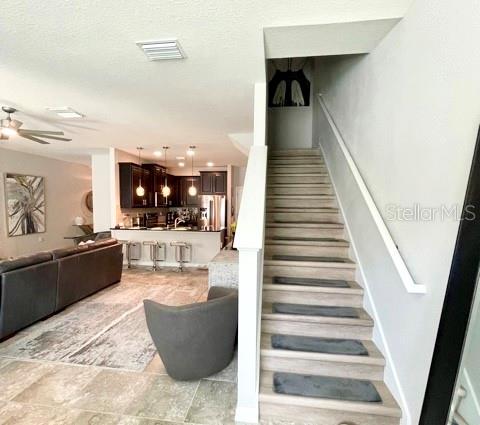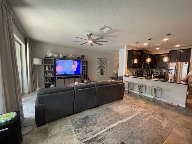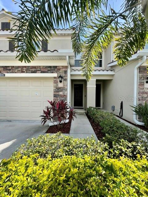 VERY LOW HOA FEES! This beautiful townhouse with a two car garage has a large eat in kitchen with a walk-in pantry, granite countertops, and stainless steel appliances. Sliding glass doors lead out to the screened in covered back patio. Half bath located on first floor. Upstairs you will find a bonus room perfect for office space or a playroom. The large master bedroom and master bathroom have dual sinks with granite countertops, a large walk-in shower, and all three bedrooms have walk-in closets. The upstairs hallway includes a laundry closet with a full sized washer and dryer. Lots of closet space throughout. Gated community with a resort style pool and cabana. Room Feature: Linen Closet in Bath (Primary Bedroom).