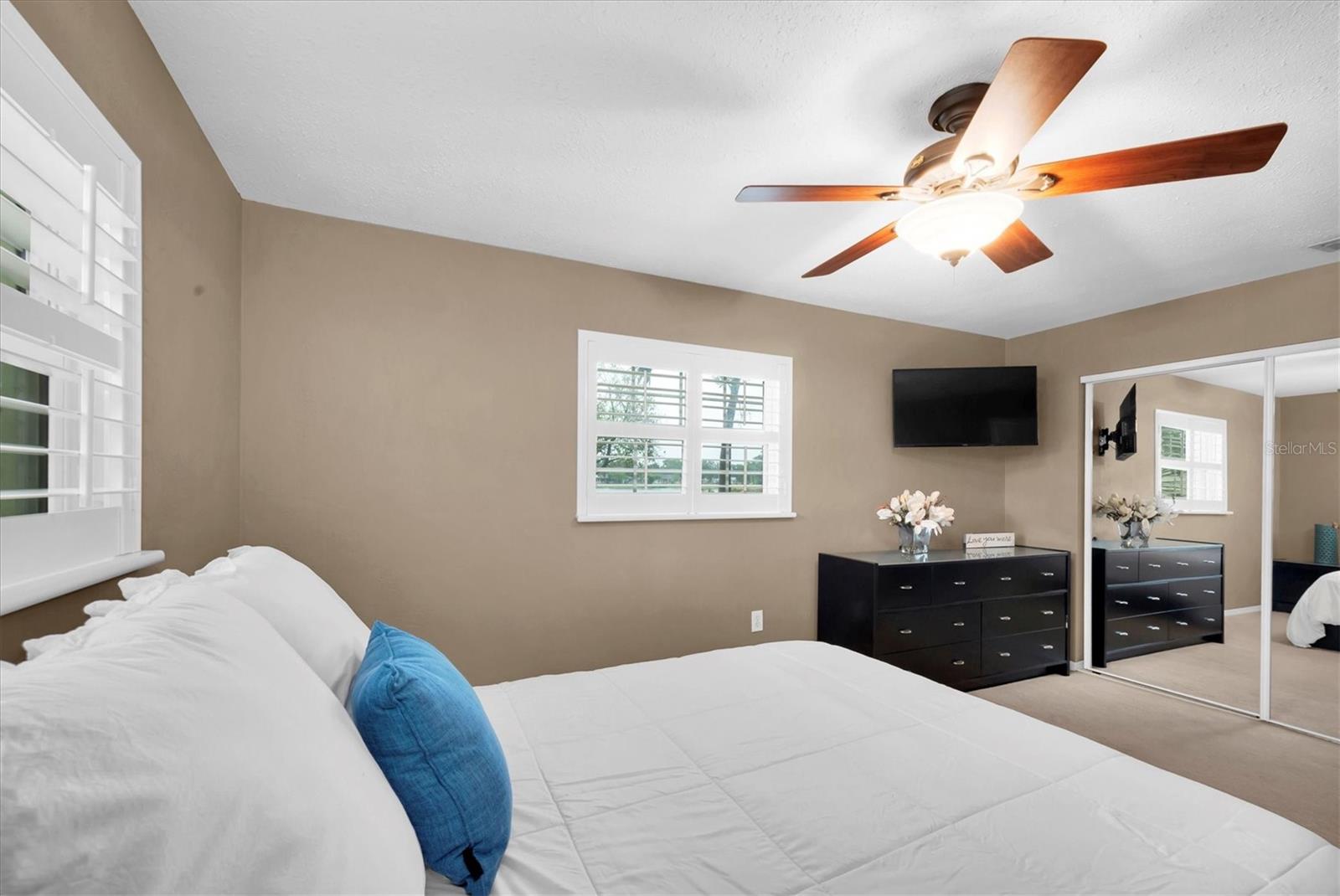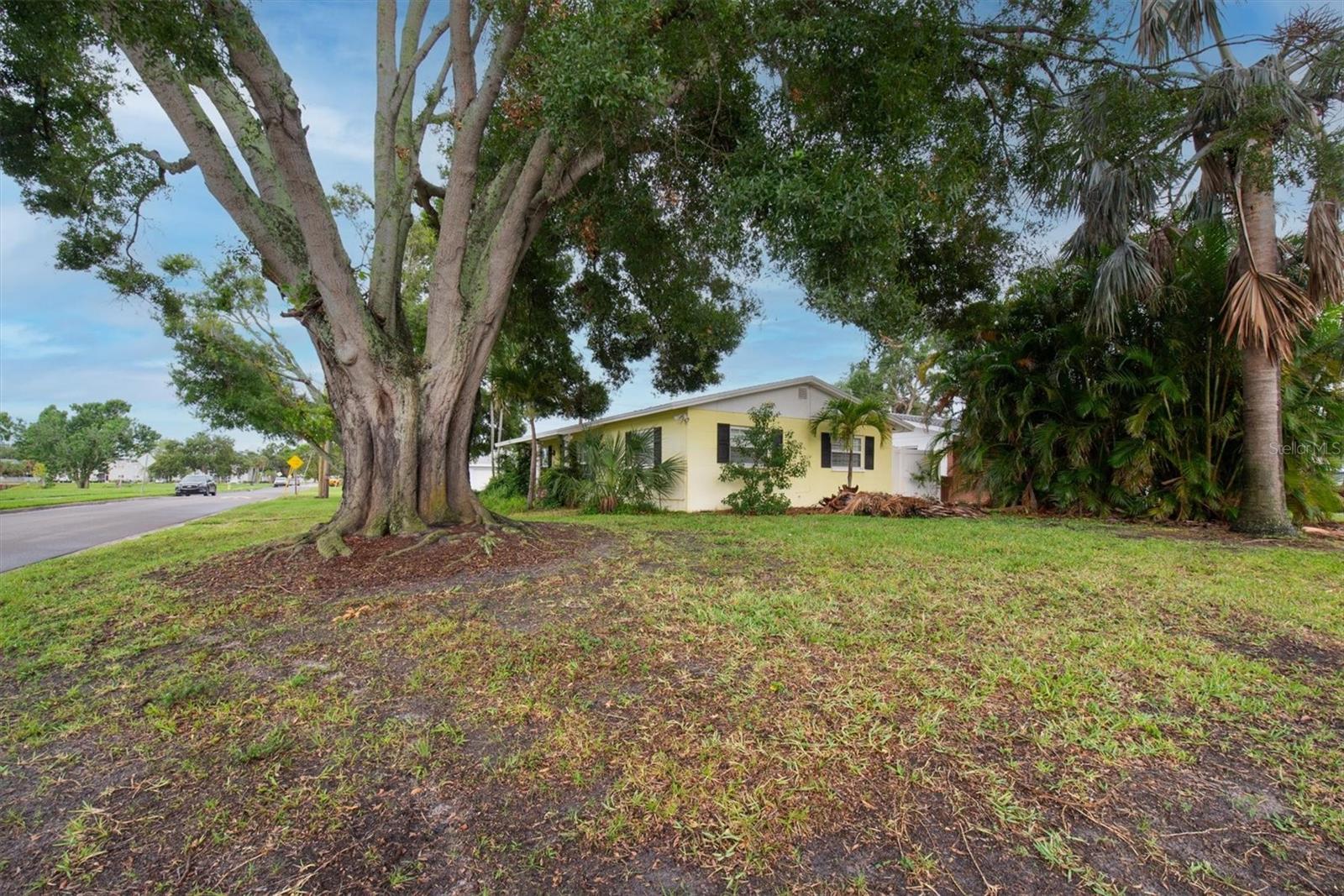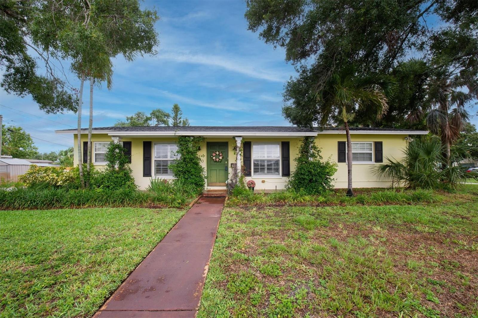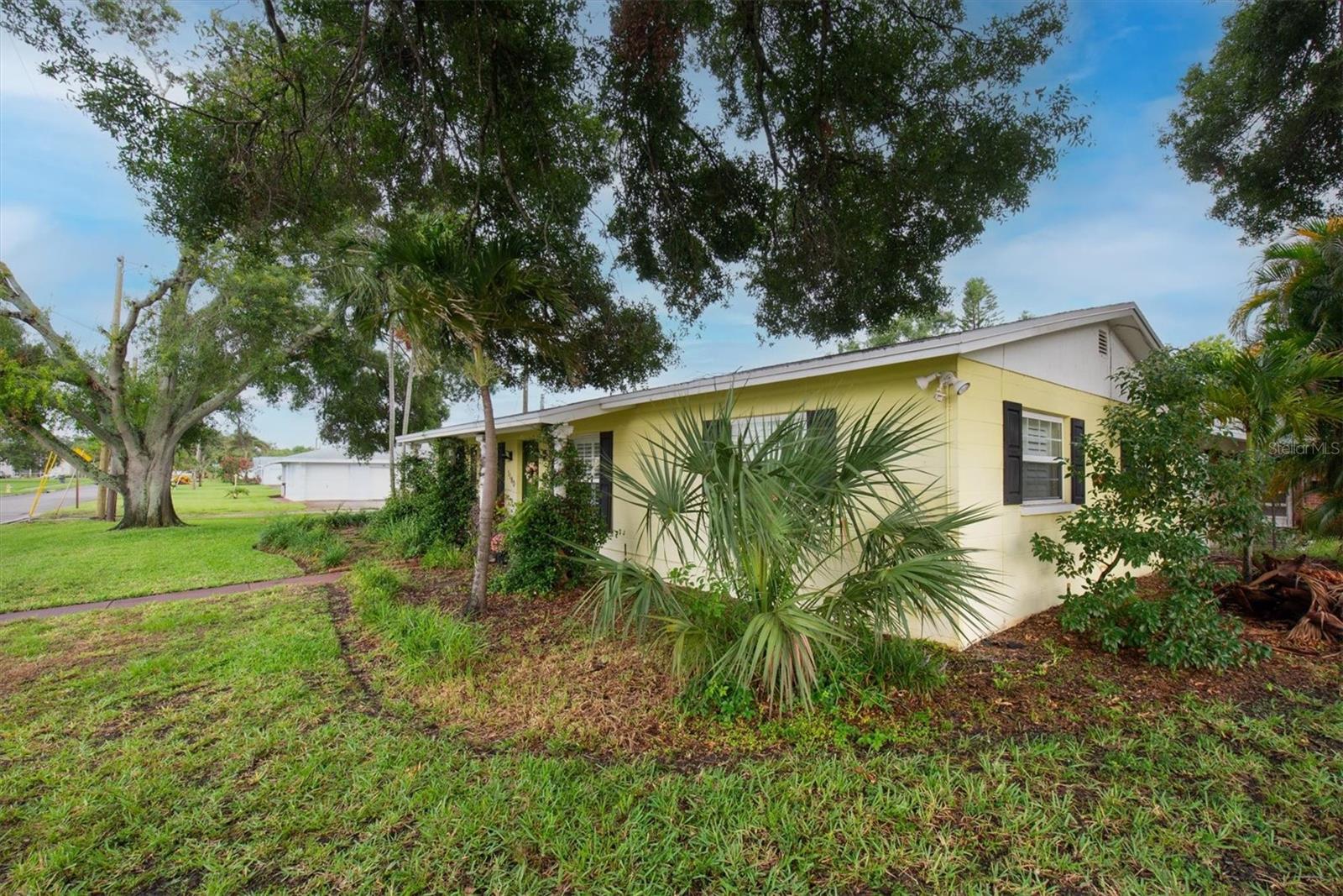 Well maintained and spacious 2/1 with an oversized attached garage in a perfect location of St. Pete. Nice corner lot with great curb appeal, with a large front porch. Very peaceful and serene setting overlooking Lake Jorgensen. Great water view in a NON-FLOOD area, you will love the quiet and idyllic neighborhood. Newer roof in 2021 alleviates concerns over a roof replacement for a long time. New water heater in 2024 with newer floors in the bedrooms. Plantation shutters throughout the home providing a sleek look and helps keep your home cool and shaded. The living room and dining combo are adjacent to the kitchen and have an open concept. The inside of the home overlooks the Lake from the living room, kitchen and primary bedroom. The well positioned kitchen is convenient with open space to the living areas with a double sink as you gaze out to the front porch and beautiful nature surrounding Lake Jorgenson. Sliding doors in the living room lead out to a patio area and side yard with artificial turf for easy maintenance. Great dog run area as well with newer vinyl privacy fencing and an outdoor shed. There is an irrigation system. The bathroom has been updated with a new vanity and fixtures. The bedrooms are spacious with large closet spaces, there is plenty of storage throughout the home. Newer fans are in the living room and bedrooms. The oversized garage has plenty of space for additional storage with a large parking pad leading up to the garage, perfect for a boat or additional vehicles. Great central St. Pete location with very easy access to vibrant downtown St. Pete and within minutes to our gorgeous beaches. Easy access to the highways, 1 mile away to get to anywhere in the area. Nearby shopping and restaurants makes everything accessible and convenient. Great starter home or an investment property in a non flood zone.
