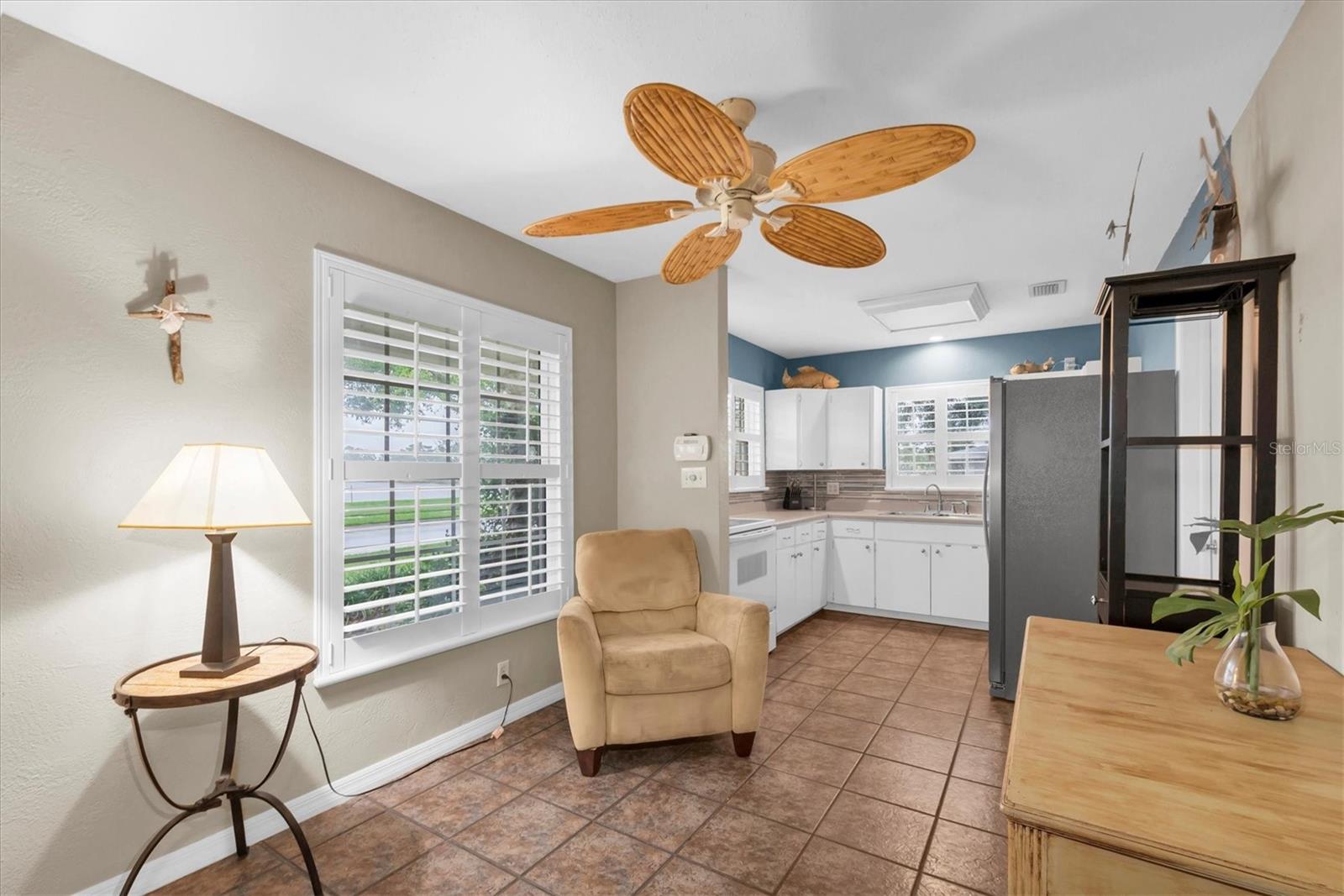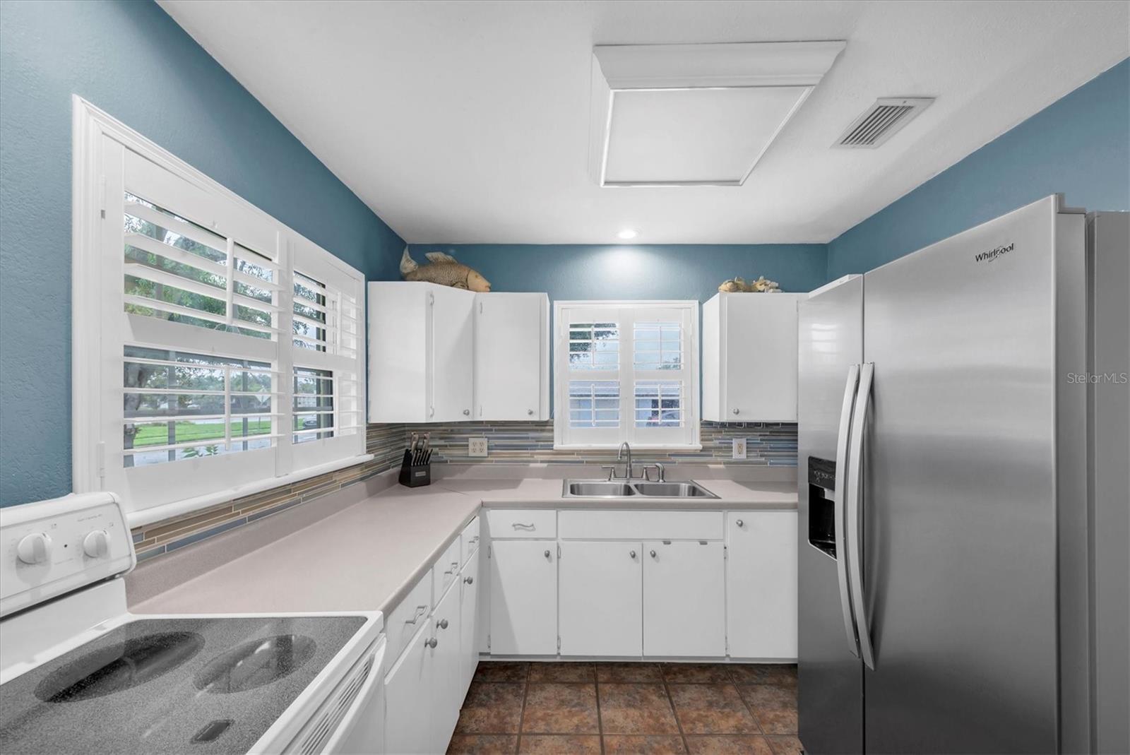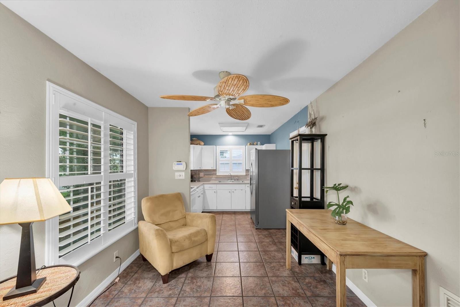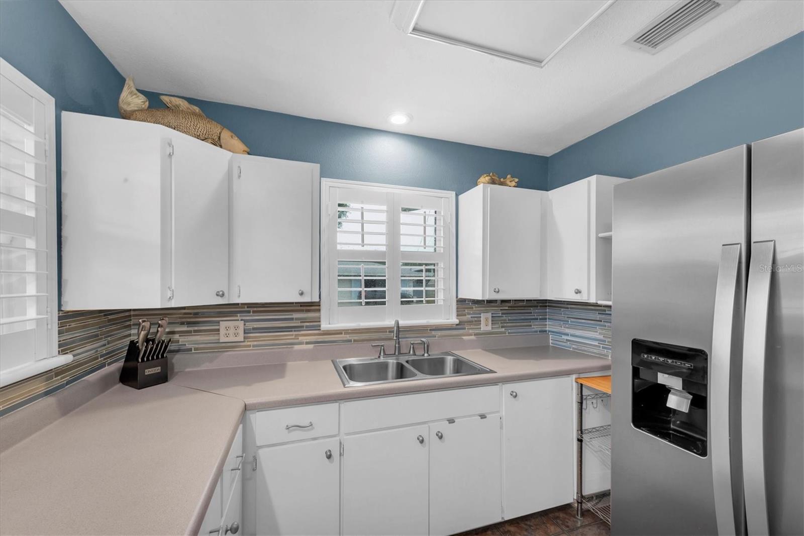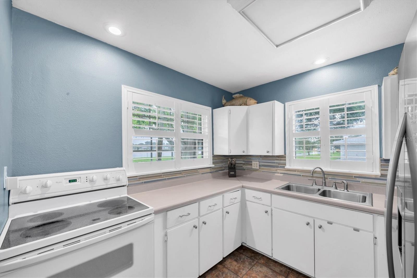 Well maintained and spacious 2/1 with an oversized attached garage in a perfect location of St. Pete. Nice corner lot with great curb appeal, with a large front porch. Very peaceful and serene setting overlooking Lake Jorgensen. Great water view in a NON-FLOOD area, you will love the quiet and idyllic neighborhood. Newer roof in 2021 alleviates concerns over a roof replacement for a long time. New water heater in 2024 with newer floors in the bedrooms. Plantation shutters throughout the home providing a sleek look and helps keep your home cool and shaded. The living room and dining combo are adjacent to the kitchen and have an open concept. The inside of the home overlooks the Lake from the living room, kitchen and primary bedroom. The well positioned kitchen is convenient with open space to the living areas with a double sink as you gaze out to the front porch and beautiful nature surrounding Lake Jorgenson. Sliding doors in the living room lead out to a patio area and side yard with artificial turf for easy maintenance. Great dog run area as well with newer vinyl privacy fencing and an outdoor shed. There is an irrigation system. The bathroom has been updated with a new vanity and fixtures. The bedrooms are spacious with large closet spaces, there is plenty of storage throughout the home. Newer fans are in the living room and bedrooms. The oversized garage has plenty of space for additional storage with a large parking pad leading up to the garage, perfect for a boat or additional vehicles. Great central St. Pete location with very easy access to vibrant downtown St. Pete and within minutes to our gorgeous beaches. Easy access to the highways, 1 mile away to get to anywhere in the area. Nearby shopping and restaurants makes everything accessible and convenient. Great starter home or an investment property in a non flood zone.