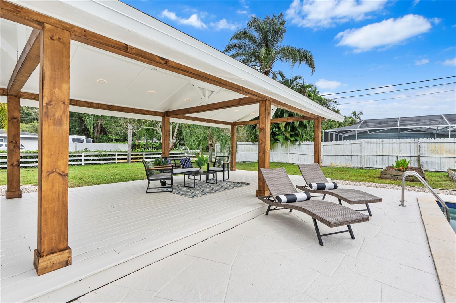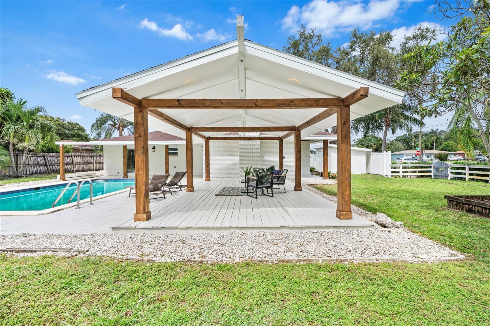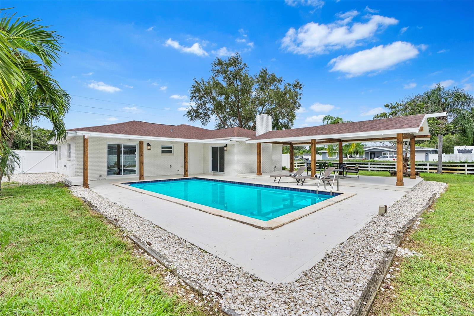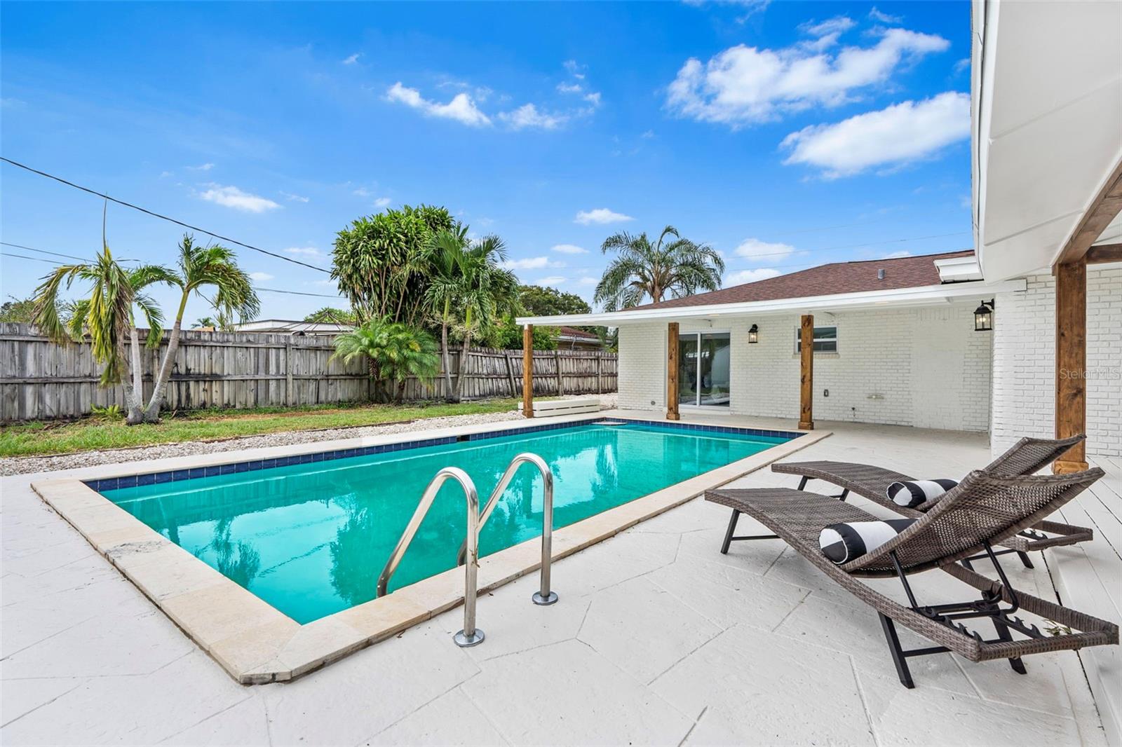 Welcome to your dream oasis in beautiful Saint Petersburg! This stunning 3-bedroom, 2-bathroom home is a true gem, featuring not just a prime location but also an array of desirable features that make it perfect for comfortable living and entertaining. From the moment you arrive, the beautiful curb appeal captured by the freshly painted exterior and lush landscaping will draw you in. The U-shaped driveway provides ample parking, making it easy for family and friends to gather. You’ll appreciate the brand-new roof, ensuring peace of mind for years to come and new Fence. Step inside and be welcomed by an open and inviting living space that flows seamlessly from the living room to the kitchen. The recessed ceiling lights with night light create a warm and modern ambiance, illuminating your gatherings perfectly. The kitchen is a chef's delight, boasting beautiful modern cabinetry, stainless steel appliances with a wine cooler designed to keep your bottles safe and sound (not to mention, at a chill temperature)! Stunning Calacatta quartz countertops and backsplash, and a breathtaking waterfall finish. It’s not just a kitchen; it's a centerpiece for creating unforgettable meals and memories. Both bathrooms have been tastefully designed, offering stylish finishes that provide a touch of luxury. Step outside to discover your own private paradise! The rectangular pool is perfect for refreshing swims and fun-filled afternoons. The large gazebo provides an amazing setting for entertaining, making it an excellent space for summer BBQs, family gatherings, or simply unwinding after a long day. Additionally, you'll benefit from two sheds for extra storage, providing ample space to keep your outdoor supplies and equipment organized as well as a parking space right next to the house perfect for parking your boat or RV.. This home is not just a place to live; it’s a lifestyle. With its unmatched features and prime location, this property presents an exceptional opportunity to experience the beauty of Florida living. Don’t miss your chance to own this beautifully updated home in Saint Pete. Call us today to schedule a private showing and take the first step toward making this paradise yours! Your dream home awaits!