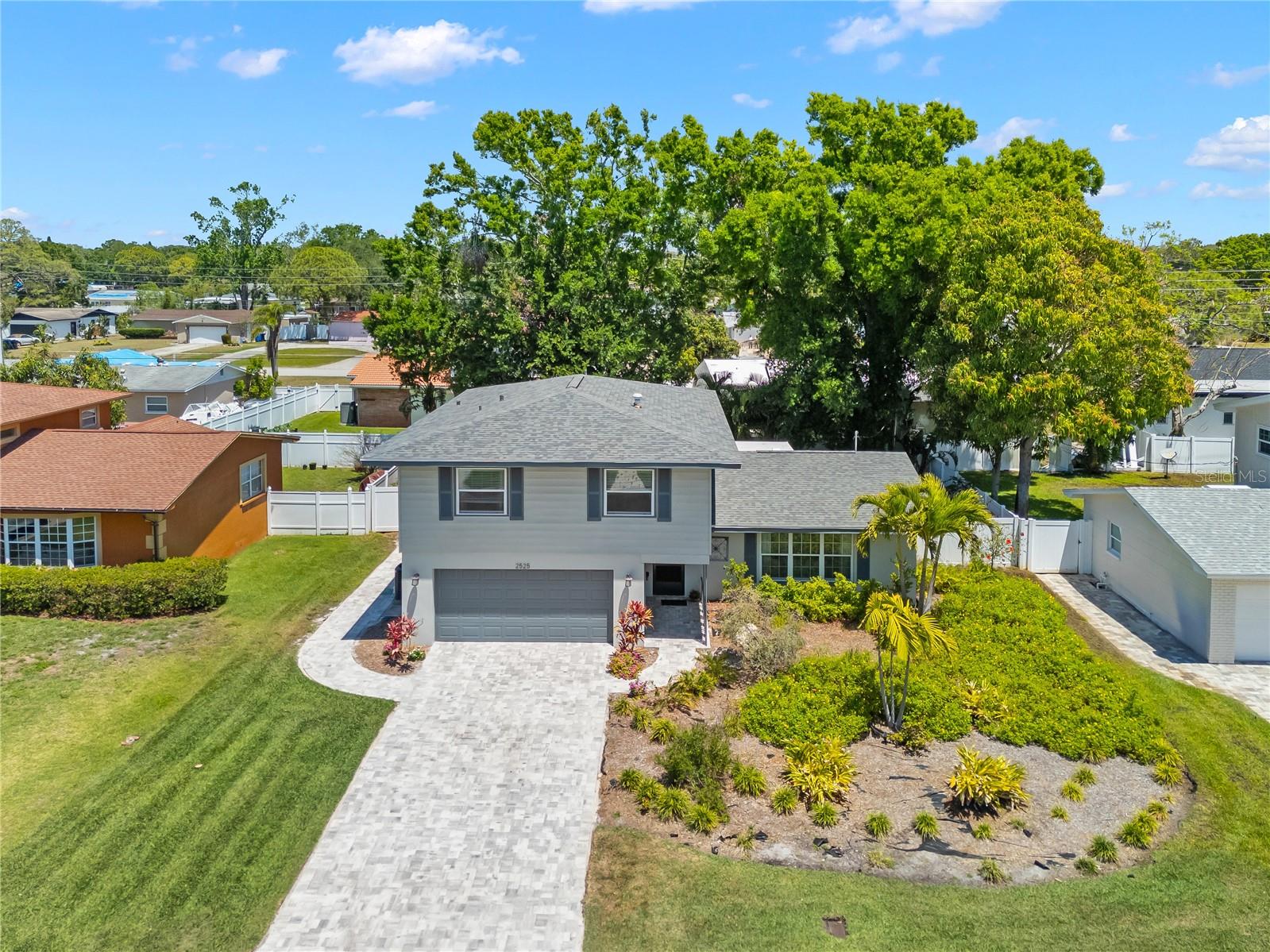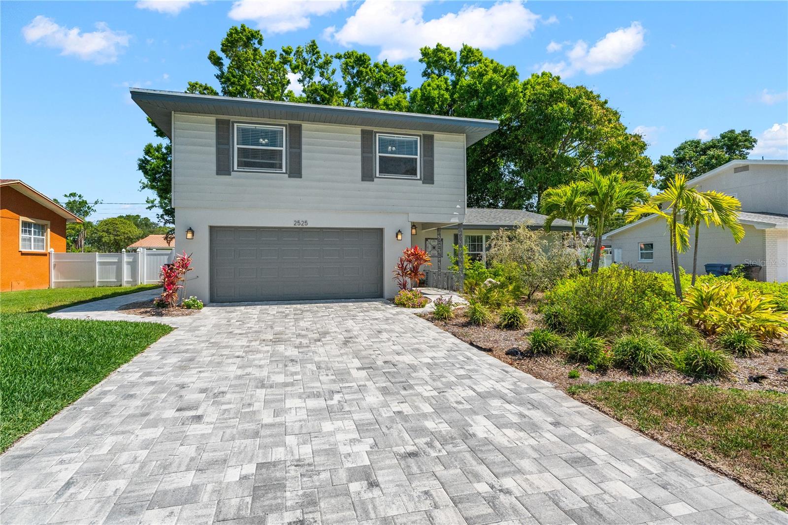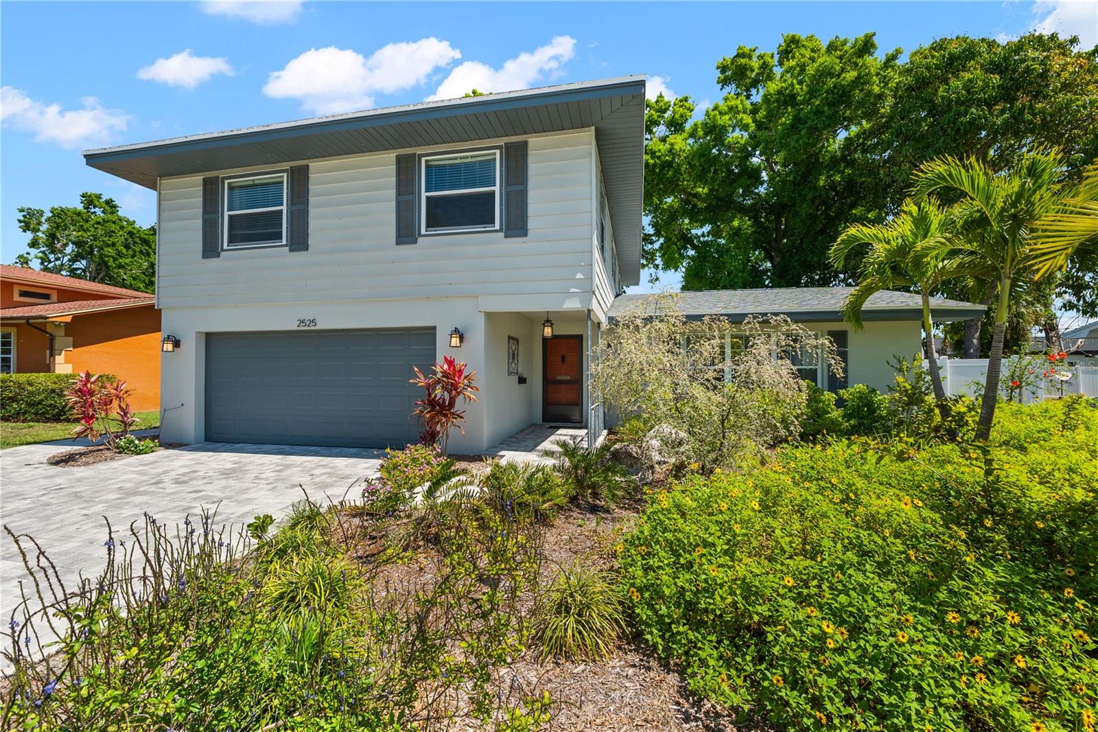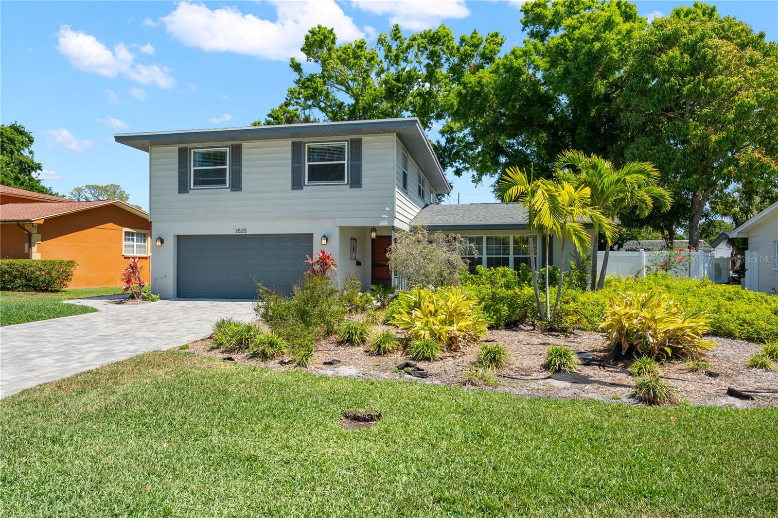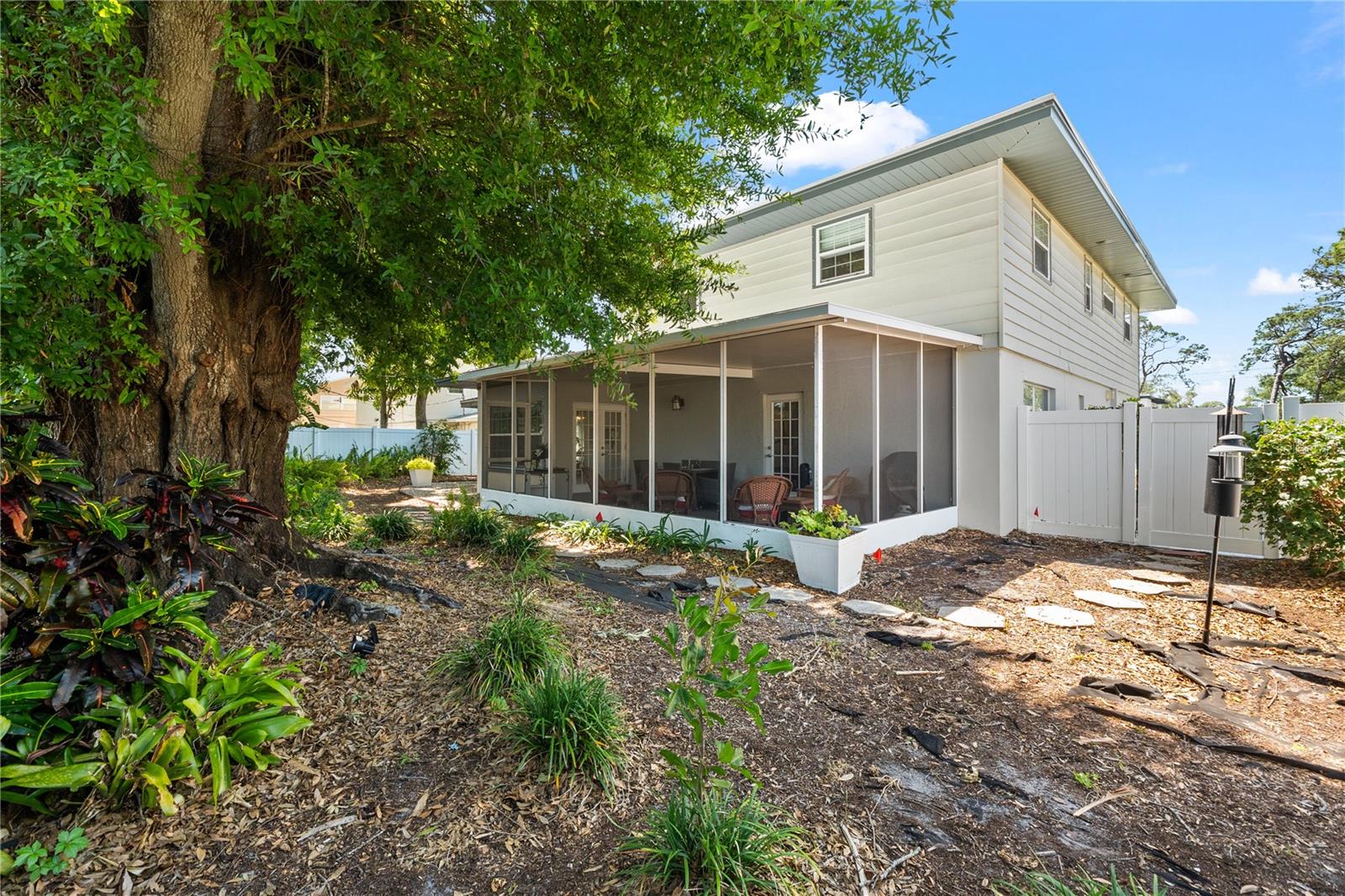 Welcome to Lakewood Estates, one of St. Pete’s most desirable neighborhoods—just minutes from the award-winning Gulf beaches, Boyd Hill Nature Preserve, and St. Petersburg Country Club. This beautifully updated 5-bedroom, 2.5-bath home offers the perfect blend of charm, function, and flexibility in a location that simply can’t be beat. A paver driveway and walkway lead to a carved wood front door, opening into a bright and expansive living space where rich dark wood laminate floors flow throughout the main level. The stunning custom kitchen features soft-close dovetail cabinetry, quartz countertops, a tile backsplash, and floating shelves—perfectly paired with a spacious dining area for effortless entertaining. French doors open to a large screened lanai with a new insulated roof, overlooking a private fenced backyard—ideal for outdoor living. Just off the kitchen, a versatile fifth bedroom offers the flexibility to be used as a guest room, home office, or den, with direct access to the lanai. A dedicated laundry room and updated half bath complete the thoughtfully designed first floor. Upstairs, you'll find four generously sized bedrooms, including a massive primary suite with a walk-in closet and a beautifully tiled en-suite bathroom. The fully updated hall bath features a sleek glass vanity and an oversized shower, while a cozy loft space provides the perfect nook for reading or work-from-home needs. Additional highlights include a newer roof, newer HVAC, updated windows with hurricane panels, and a two-car garage with a new door and opener. Best of all, this home has never experienced flooding or hurricane damage, and no flood insurance is required—offering long-term peace of mind. Don’t miss this move-in ready gem located on one of the premier streets in Lakewood Estates—schedule your private showing today!