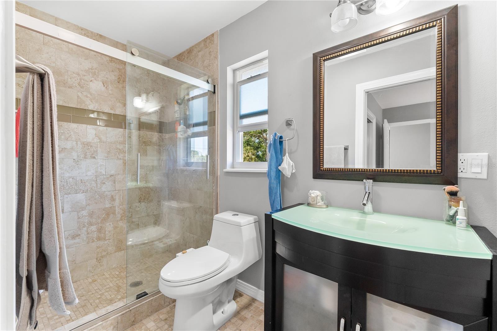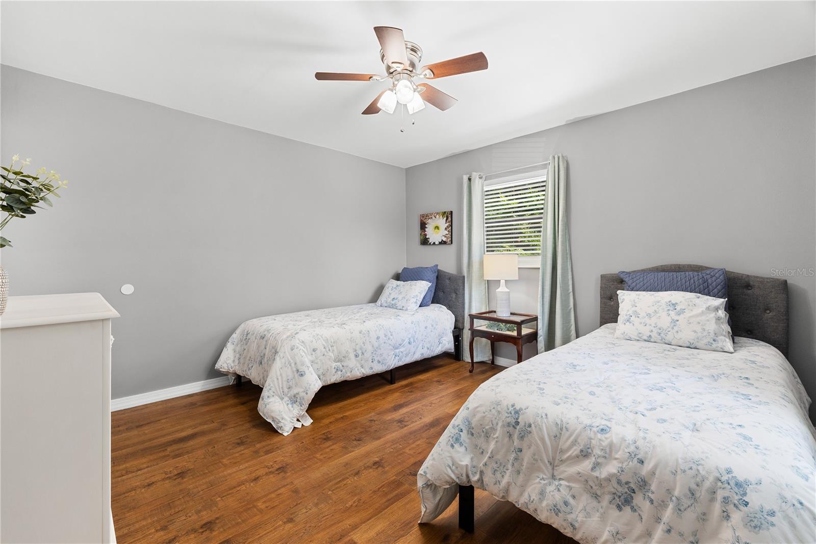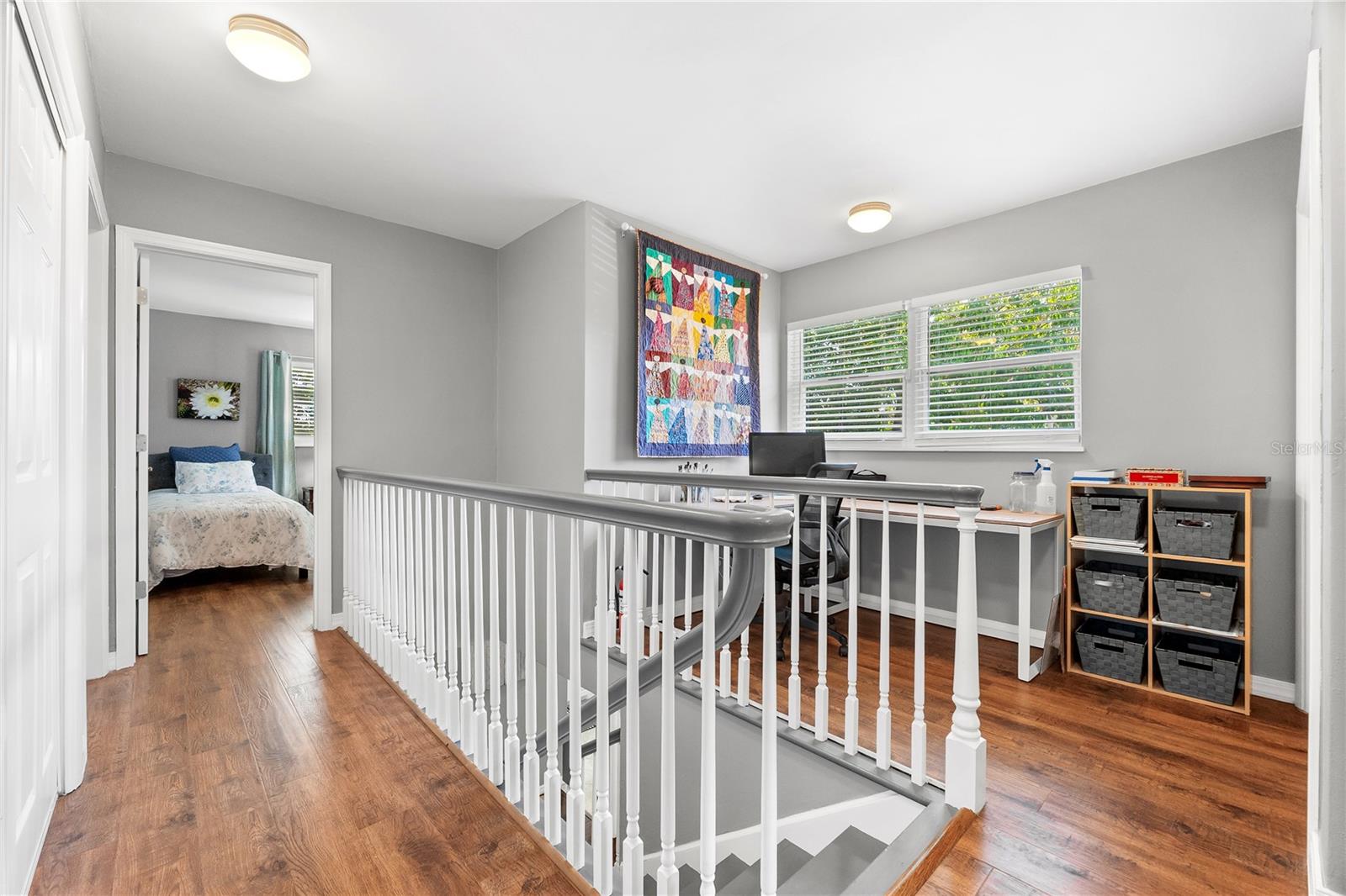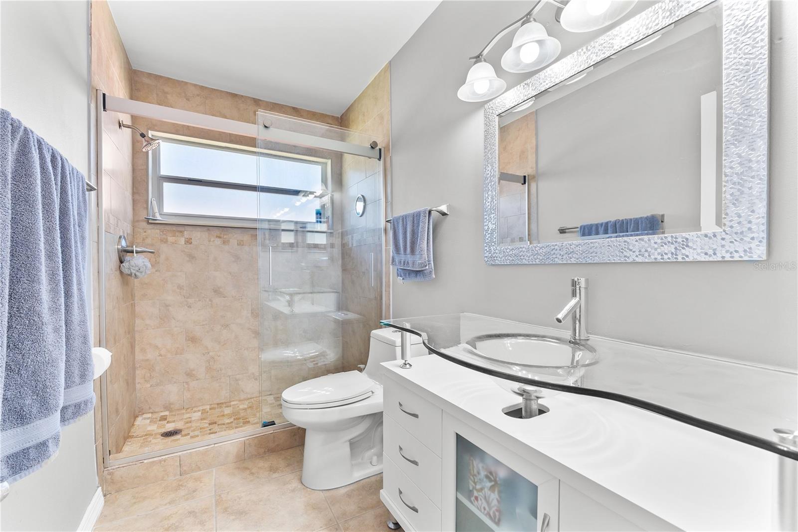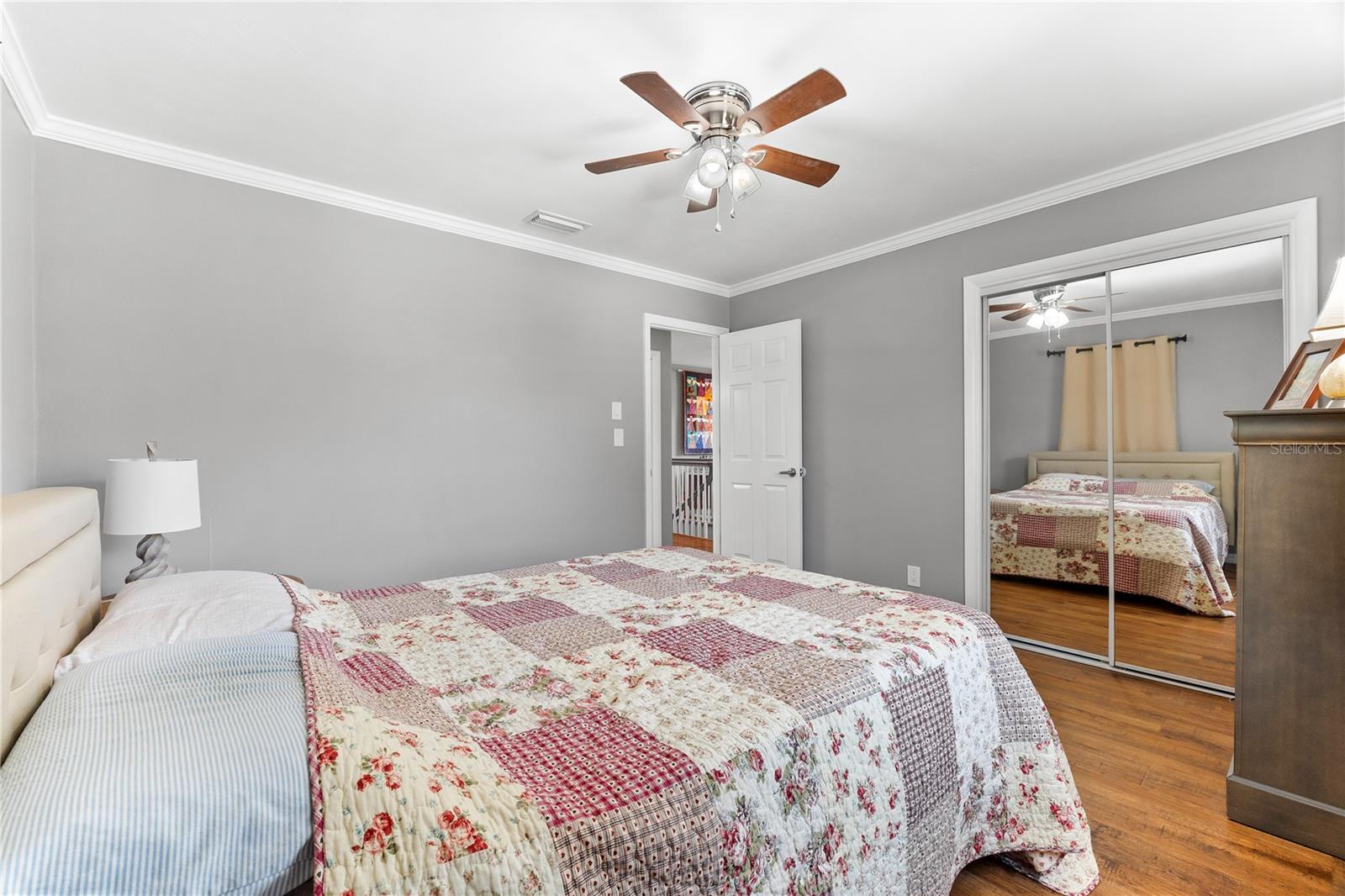 Welcome to Lakewood Estates, one of St. Pete’s most desirable neighborhoods—just minutes from the award-winning Gulf beaches, Boyd Hill Nature Preserve, and St. Petersburg Country Club. This beautifully updated 5-bedroom, 2.5-bath home offers the perfect blend of charm, function, and flexibility in a location that simply can’t be beat. A paver driveway and walkway lead to a carved wood front door, opening into a bright and expansive living space where rich dark wood laminate floors flow throughout the main level. The stunning custom kitchen features soft-close dovetail cabinetry, quartz countertops, a tile backsplash, and floating shelves—perfectly paired with a spacious dining area for effortless entertaining. French doors open to a large screened lanai with a new insulated roof, overlooking a private fenced backyard—ideal for outdoor living. Just off the kitchen, a versatile fifth bedroom offers the flexibility to be used as a guest room, home office, or den, with direct access to the lanai. A dedicated laundry room and updated half bath complete the thoughtfully designed first floor. Upstairs, you'll find four generously sized bedrooms, including a massive primary suite with a walk-in closet and a beautifully tiled en-suite bathroom. The fully updated hall bath features a sleek glass vanity and an oversized shower, while a cozy loft space provides the perfect nook for reading or work-from-home needs. Additional highlights include a newer roof, newer HVAC, updated windows with hurricane panels, and a two-car garage with a new door and opener. Best of all, this home has never experienced flooding or hurricane damage, and no flood insurance is required—offering long-term peace of mind. Don’t miss this move-in ready gem located on one of the premier streets in Lakewood Estates—schedule your private showing today!