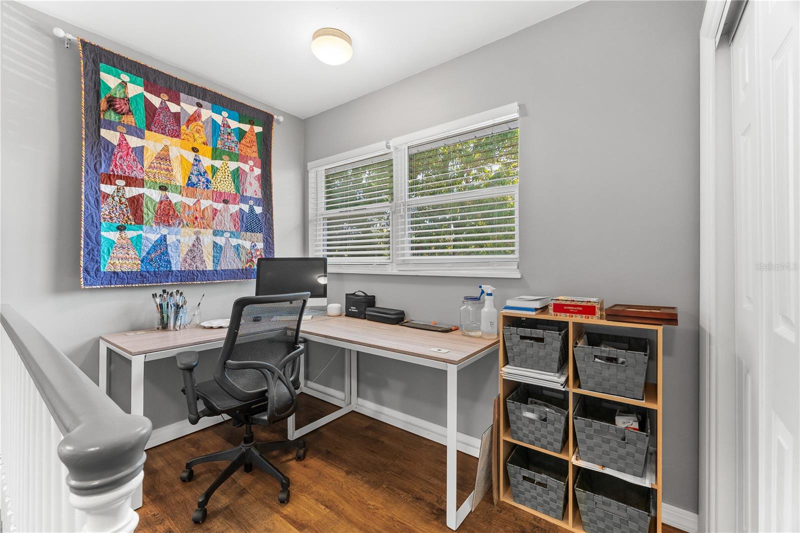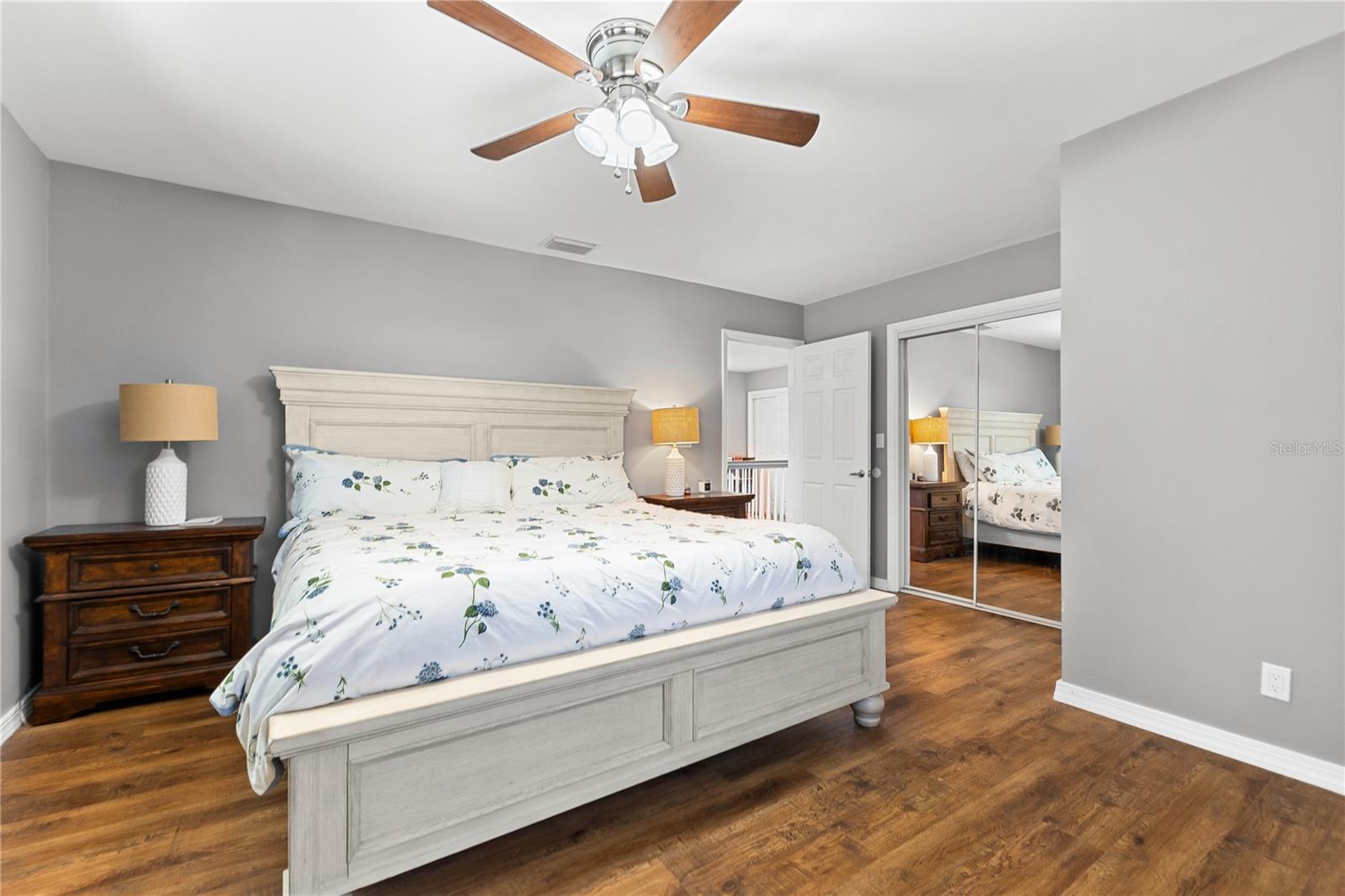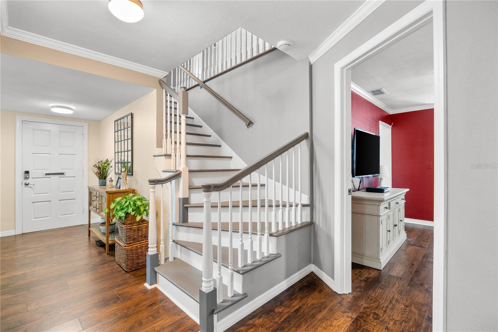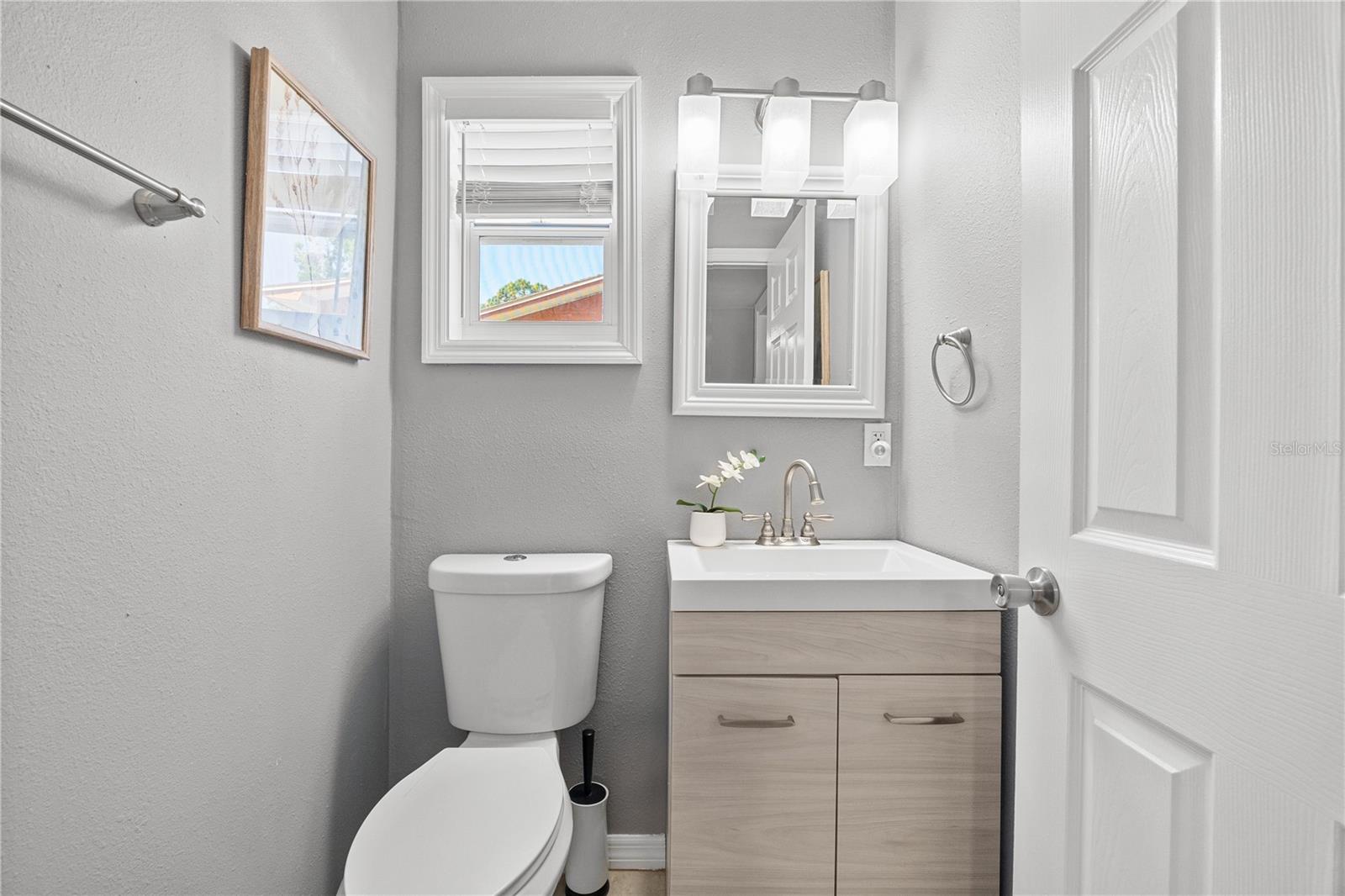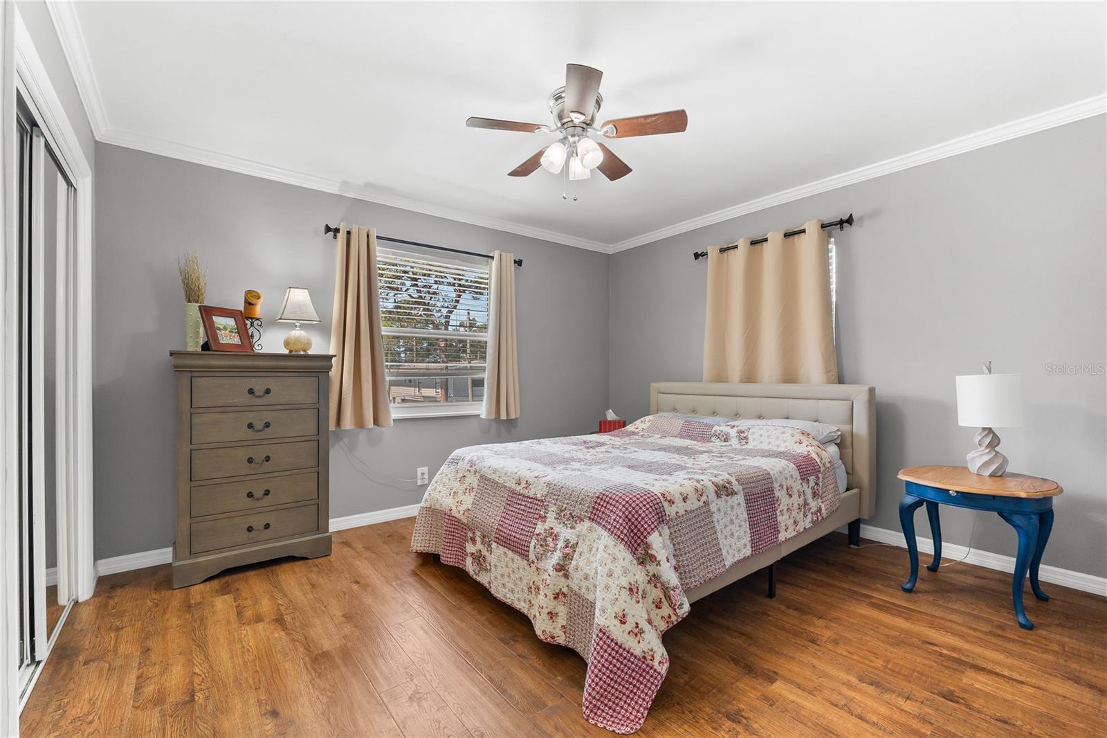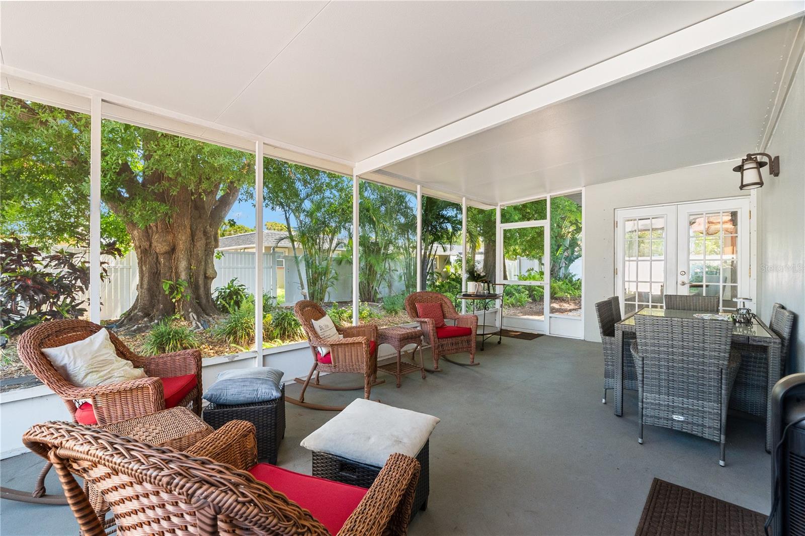Welcome to Lakewood Estates, one of St. Pete’s most desirable neighborhoods—just minutes from the award-winning Gulf beaches, Boyd Hill Nature Preserve, and St. Petersburg Country Club. This beautifully updated 5-bedroom, 2.5-bath home offers the perfect blend of charm, function, and flexibility in a location that simply can’t be beat. A paver driveway and walkway lead to a carved wood front door, opening into a bright and expansive living space where rich dark wood laminate floors flow throughout the main level. The stunning custom kitchen features soft-close dovetail cabinetry, quartz countertops, a tile backsplash, and floating shelves—perfectly paired with a spacious dining area for effortless entertaining. French doors open to a large screened lanai with a new insulated roof, overlooking a private fenced backyard—ideal for outdoor living. Just off the kitchen, a versatile fifth bedroom offers the flexibility to be used as a guest room, home office, or den, with direct access to the lanai. A dedicated laundry room and updated half bath complete the thoughtfully designed first floor. Upstairs, you'll find four generously sized bedrooms, including a massive primary suite with a walk-in closet and a beautifully tiled en-suite bathroom. The fully updated hall bath features a sleek glass vanity and an oversized shower, while a cozy loft space provides the perfect nook for reading or work-from-home needs. Additional highlights include a newer roof, newer HVAC, updated windows with hurricane panels, and a two-car garage with a new door and opener. Best of all, this home has never experienced flooding or hurricane damage, and no flood insurance is required—offering long-term peace of mind. Don’t miss this move-in ready gem located on one of the premier streets in Lakewood Estates—schedule your private showing today!