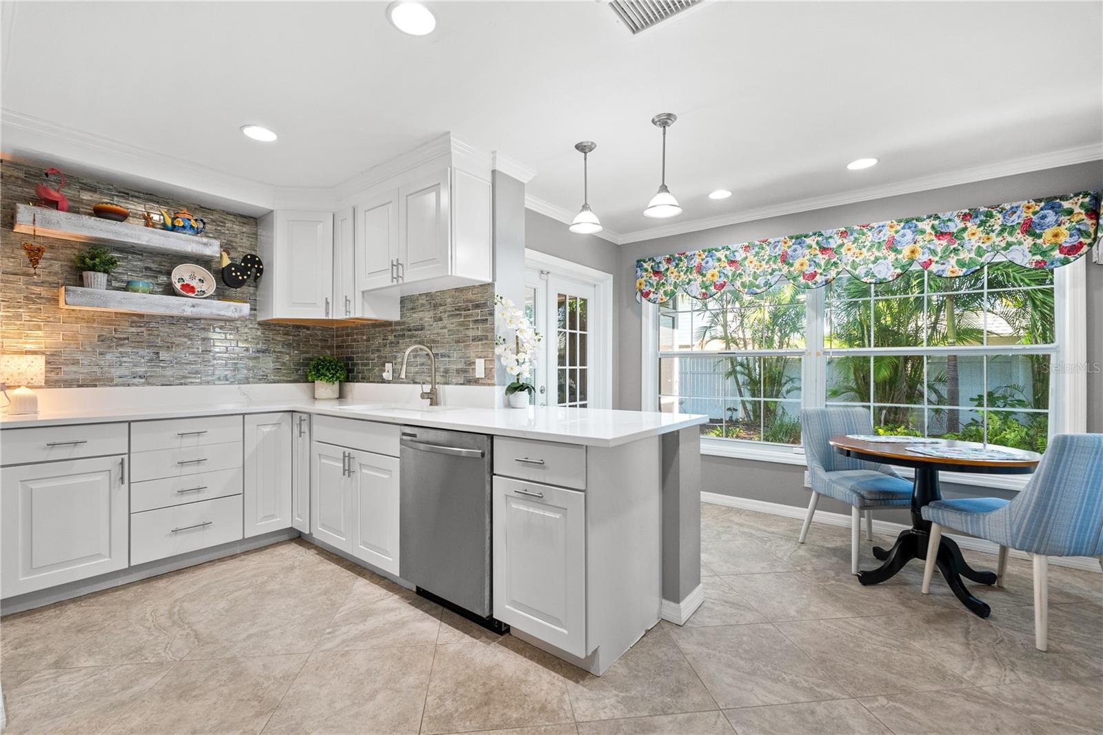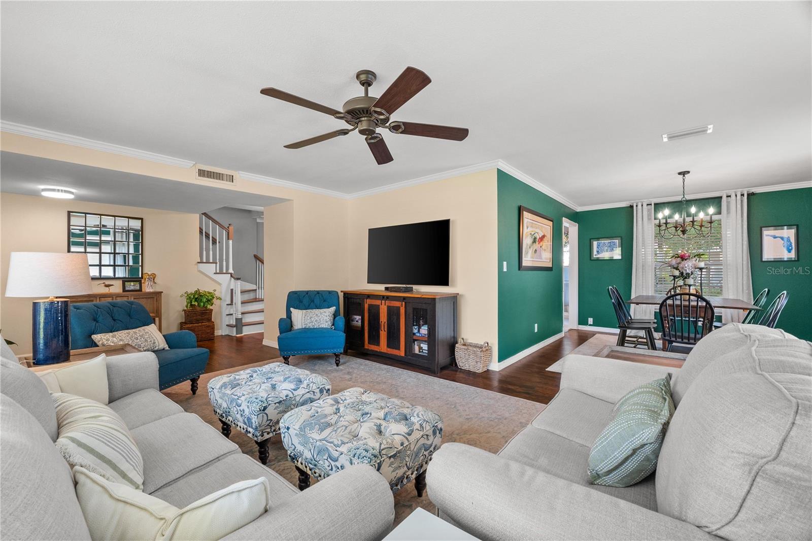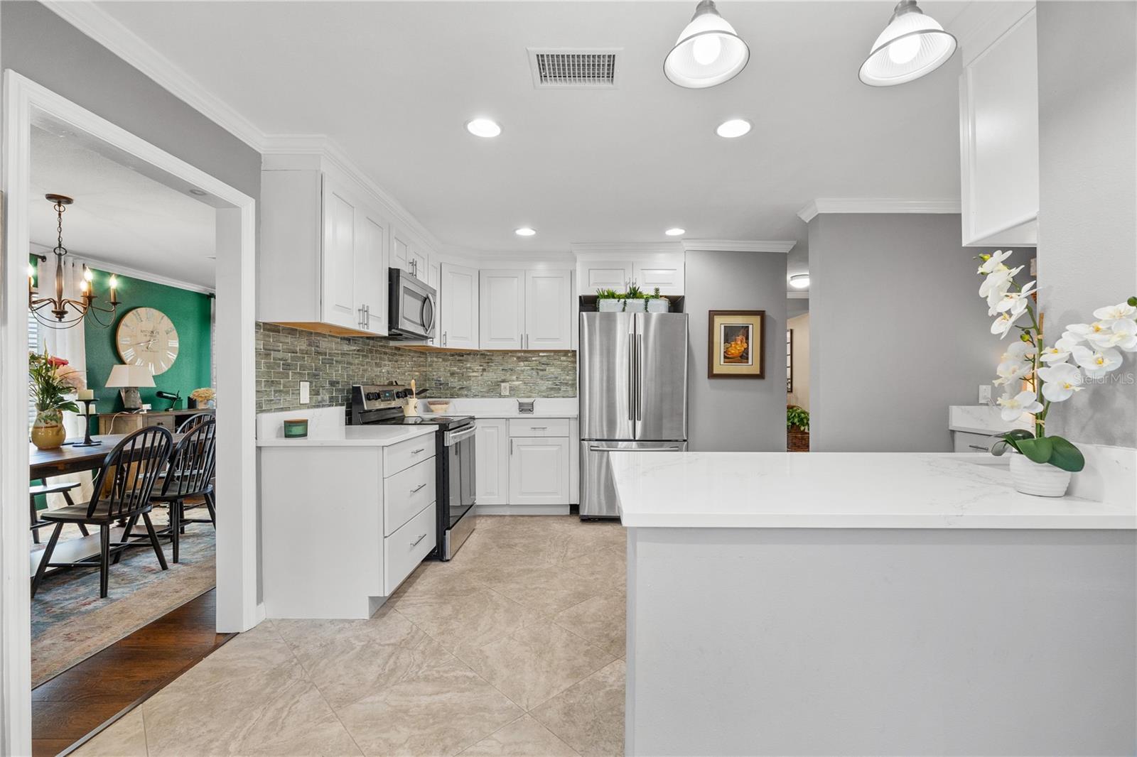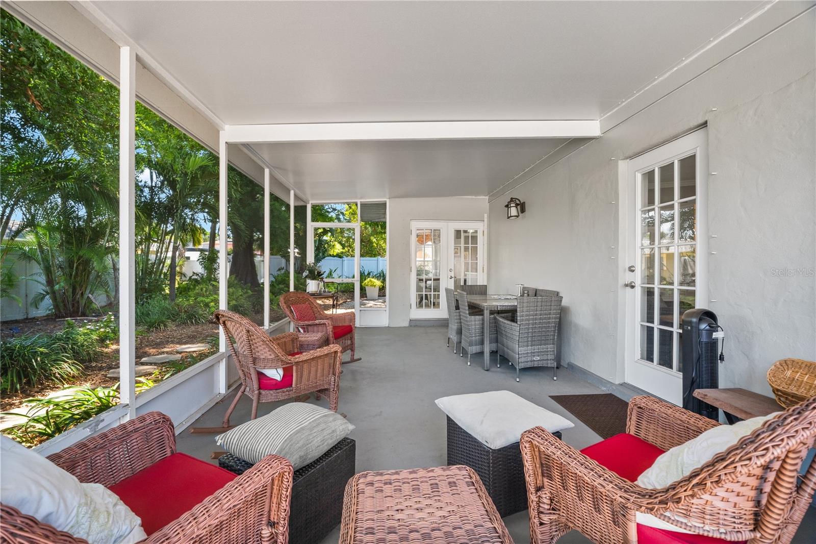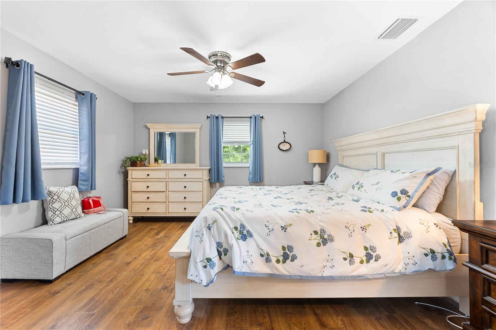 Welcome to Lakewood Estates, one of St. Pete’s most desirable neighborhoods—just minutes from the award-winning Gulf beaches, Boyd Hill Nature Preserve, and St. Petersburg Country Club. This beautifully updated 5-bedroom, 2.5-bath home offers the perfect blend of charm, function, and flexibility in a location that simply can’t be beat. A paver driveway and walkway lead to a carved wood front door, opening into a bright and expansive living space where rich dark wood laminate floors flow throughout the main level. The stunning custom kitchen features soft-close dovetail cabinetry, quartz countertops, a tile backsplash, and floating shelves—perfectly paired with a spacious dining area for effortless entertaining. French doors open to a large screened lanai with a new insulated roof, overlooking a private fenced backyard—ideal for outdoor living. Just off the kitchen, a versatile fifth bedroom offers the flexibility to be used as a guest room, home office, or den, with direct access to the lanai. A dedicated laundry room and updated half bath complete the thoughtfully designed first floor. Upstairs, you'll find four generously sized bedrooms, including a massive primary suite with a walk-in closet and a beautifully tiled en-suite bathroom. The fully updated hall bath features a sleek glass vanity and an oversized shower, while a cozy loft space provides the perfect nook for reading or work-from-home needs. Additional highlights include a newer roof, newer HVAC, updated windows with hurricane panels, and a two-car garage with a new door and opener. Best of all, this home has never experienced flooding or hurricane damage, and no flood insurance is required—offering long-term peace of mind. Don’t miss this move-in ready gem located on one of the premier streets in Lakewood Estates—schedule your private showing today!