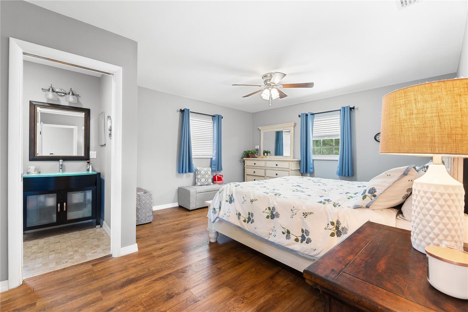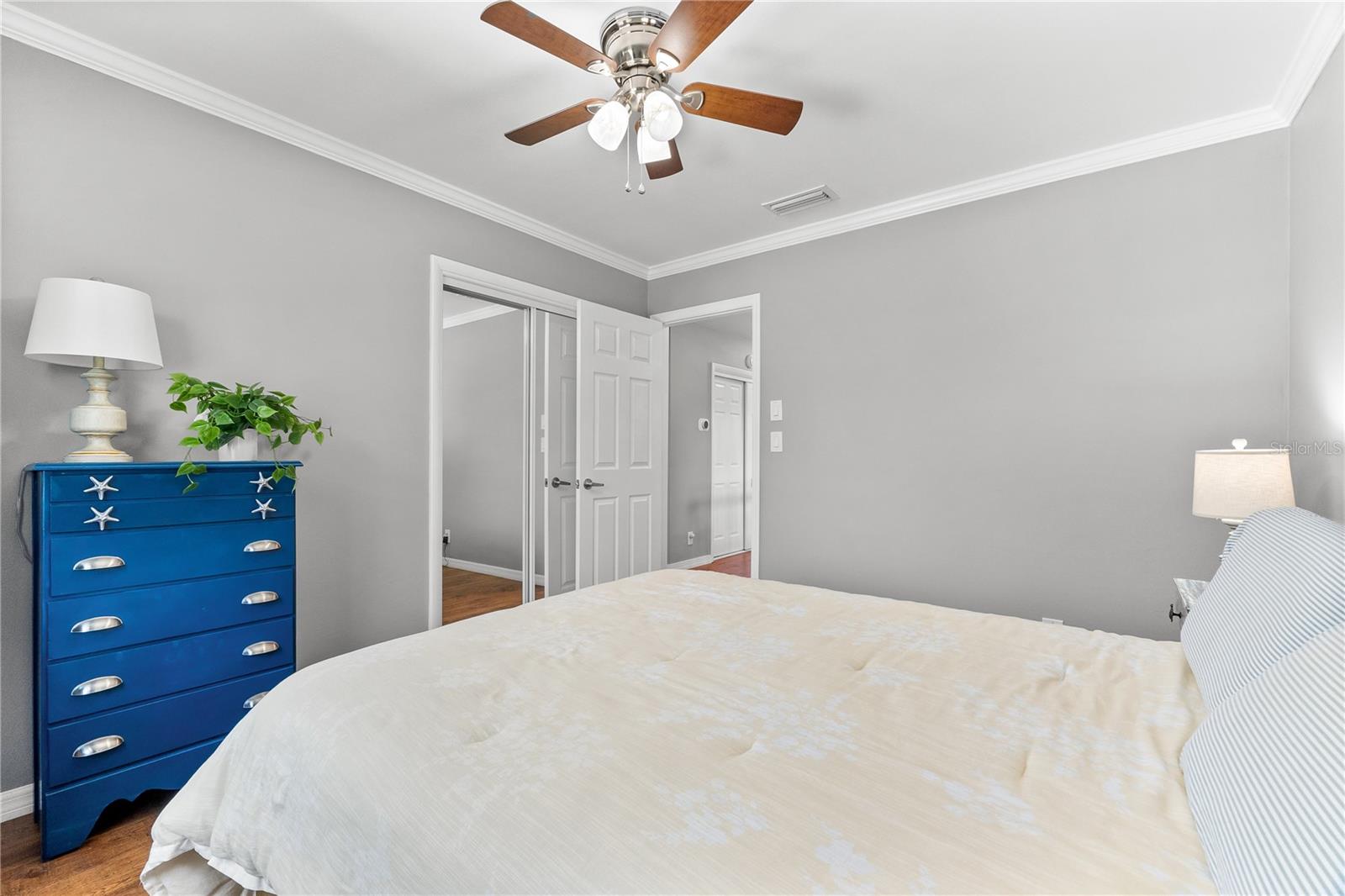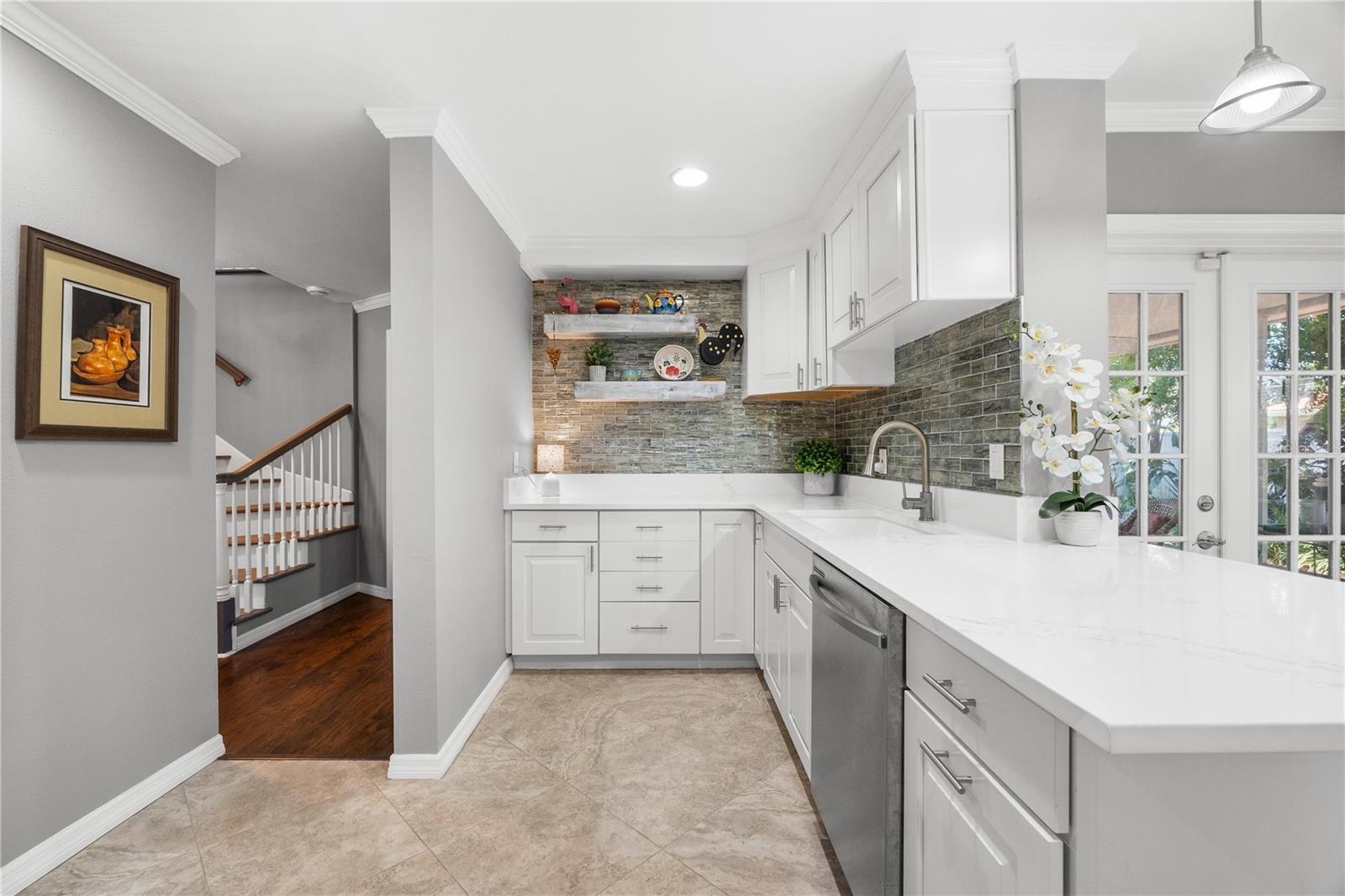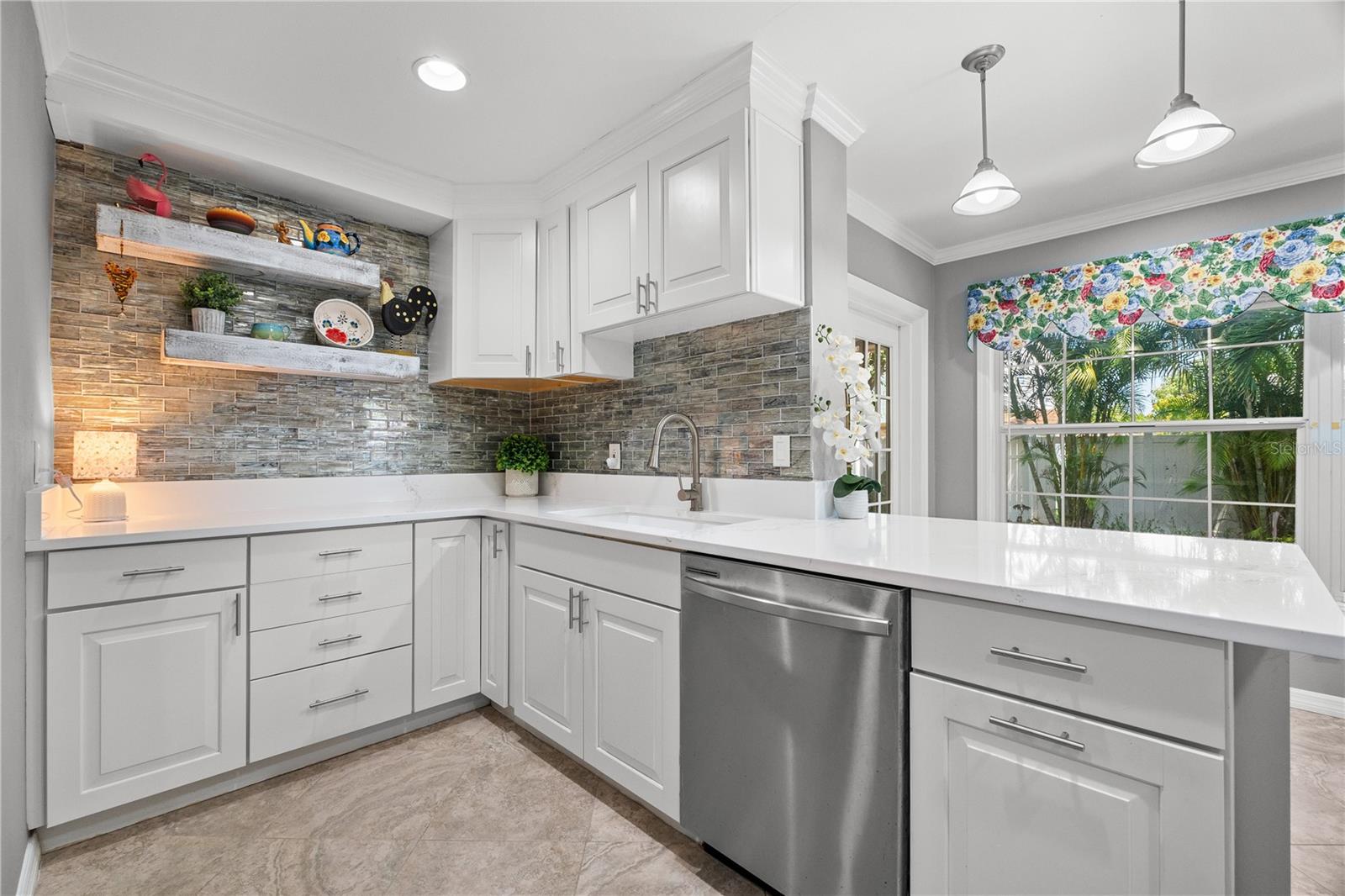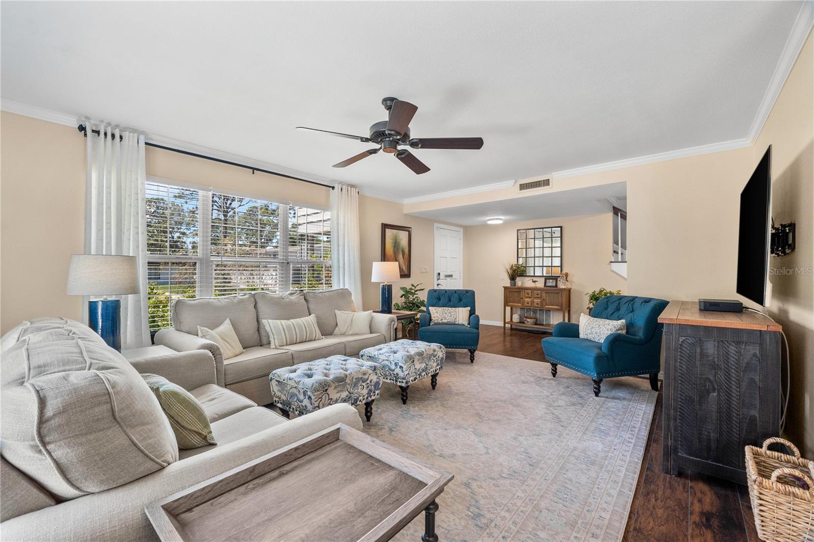 Welcome to Lakewood Estates, one of St. Pete’s most desirable neighborhoods—just minutes from the award-winning Gulf beaches, Boyd Hill Nature Preserve, and St. Petersburg Country Club. This beautifully updated 5-bedroom, 2.5-bath home offers the perfect blend of charm, function, and flexibility in a location that simply can’t be beat. A paver driveway and walkway lead to a carved wood front door, opening into a bright and expansive living space where rich dark wood laminate floors flow throughout the main level. The stunning custom kitchen features soft-close dovetail cabinetry, quartz countertops, a tile backsplash, and floating shelves—perfectly paired with a spacious dining area for effortless entertaining. French doors open to a large screened lanai with a new insulated roof, overlooking a private fenced backyard—ideal for outdoor living. Just off the kitchen, a versatile fifth bedroom offers the flexibility to be used as a guest room, home office, or den, with direct access to the lanai. A dedicated laundry room and updated half bath complete the thoughtfully designed first floor. Upstairs, you'll find four generously sized bedrooms, including a massive primary suite with a walk-in closet and a beautifully tiled en-suite bathroom. The fully updated hall bath features a sleek glass vanity and an oversized shower, while a cozy loft space provides the perfect nook for reading or work-from-home needs. Additional highlights include a newer roof, newer HVAC, updated windows with hurricane panels, and a two-car garage with a new door and opener. Best of all, this home has never experienced flooding or hurricane damage, and no flood insurance is required—offering long-term peace of mind. Don’t miss this move-in ready gem located on one of the premier streets in Lakewood Estates—schedule your private showing today!