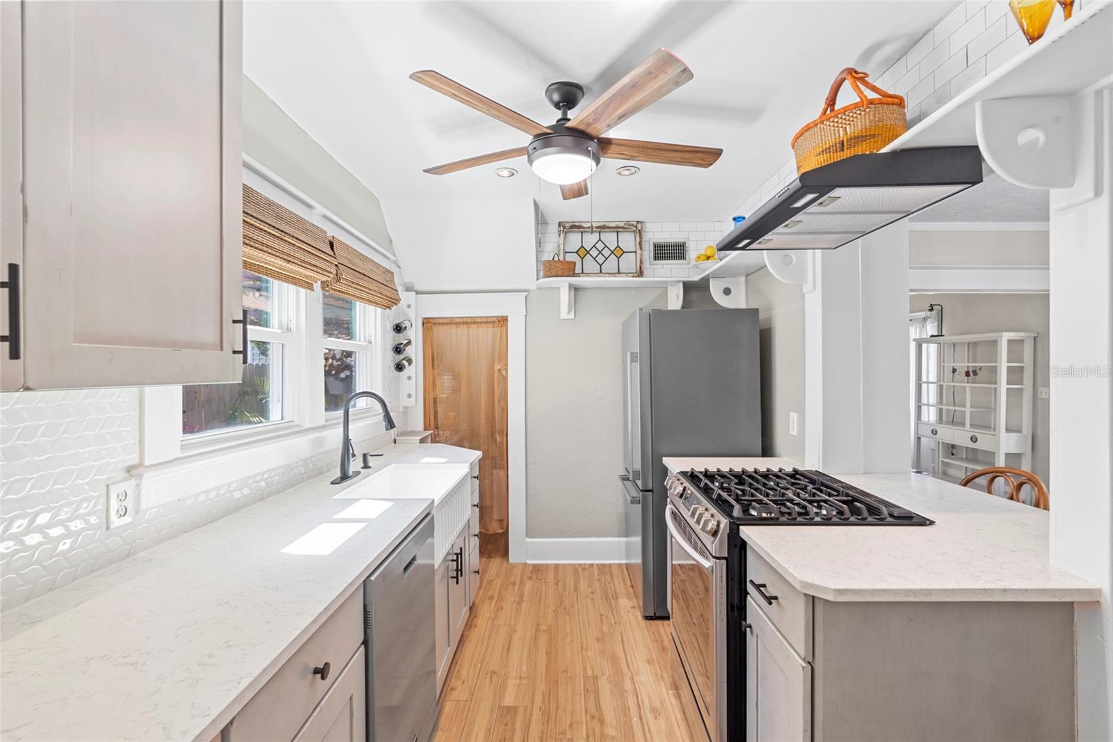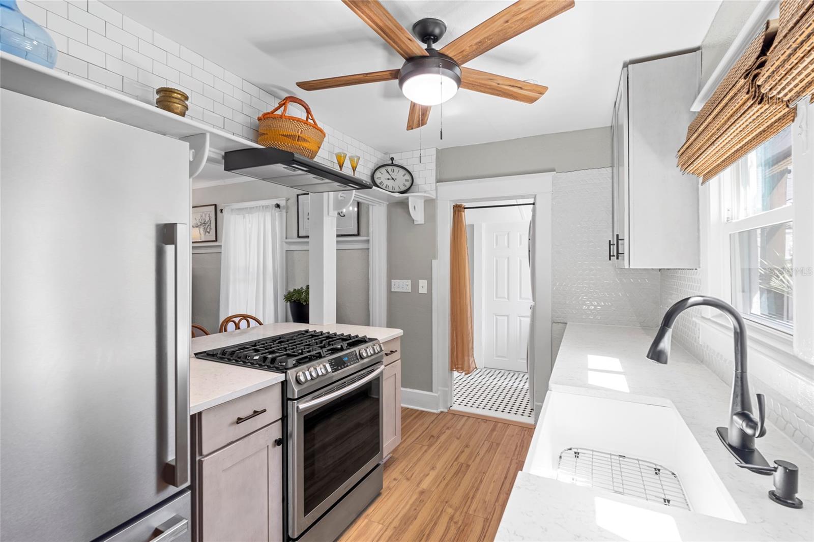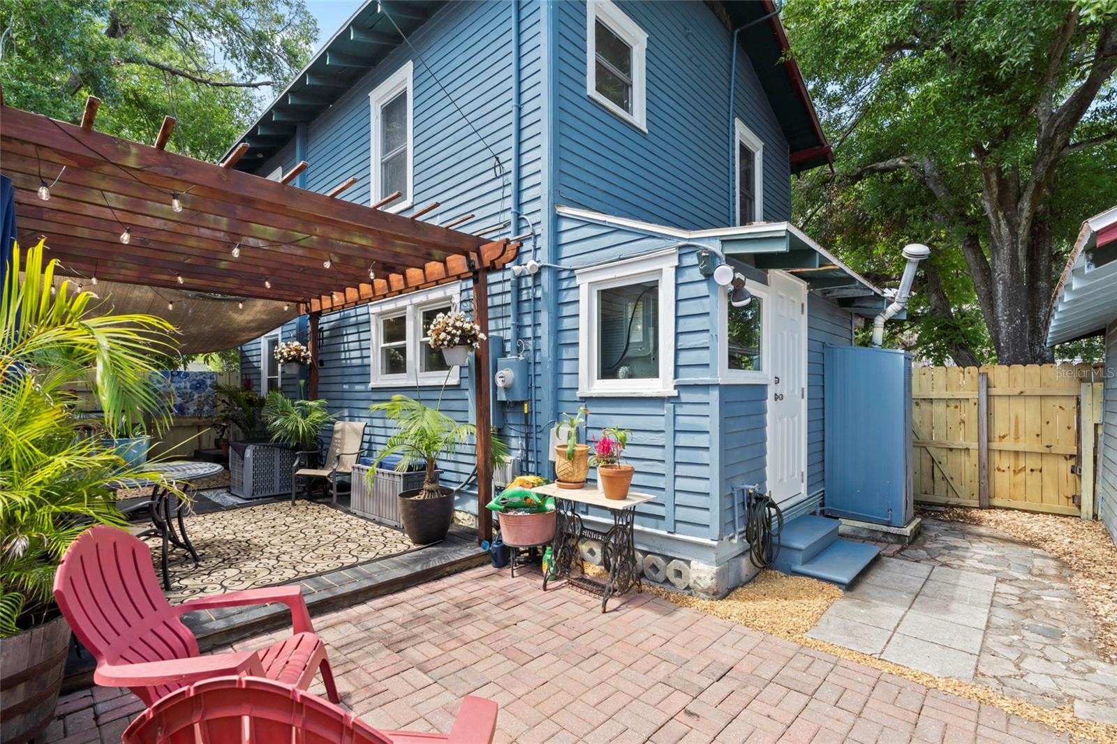 Welcome to this beautifully updated 1920s home, where timeless character and vintage charm meet modern upgrades and thoughtful details for the perfect blend of comfort and style. The moment you step inside, you’ll appreciate the unique architectural touches of the era, paired with today’s conveniences. Enjoy peace of mind with a brand new HVAC system installed in November 2024. The kitchen has been completely refreshed over the past 18 months, featuring new appliances, countertops, sink, and cabinetry. Beautiful wood flooring runs throughout the home, including original pine floors downstairs and thoughtful updates that add warmth and sophistication to every space. The main level also features brand new windows, a new front door, and a new side door—enhancing both energy efficiency and curb appeal. Step outside to enjoy a newly installed pergola, fresh sod with Augustine Bitter Blue grass, the perfection of curb appeal and outdoor entertaining. Inside, both bathrooms have been fully renovated with new vanities, faucets, tiled walls, molding, and updated lighting. The laundry room and half bath now boast stylish new tile flooring. Additional features include ceiling fans in every bedroom and the living room, along with a striking new dining room fixture. Located in a non-flood zone and offering excellent walkability to vibrant downtown St. Pete, this home provides the rare combination of historic charm, modern living, and an unbeatable location. Welcome home!