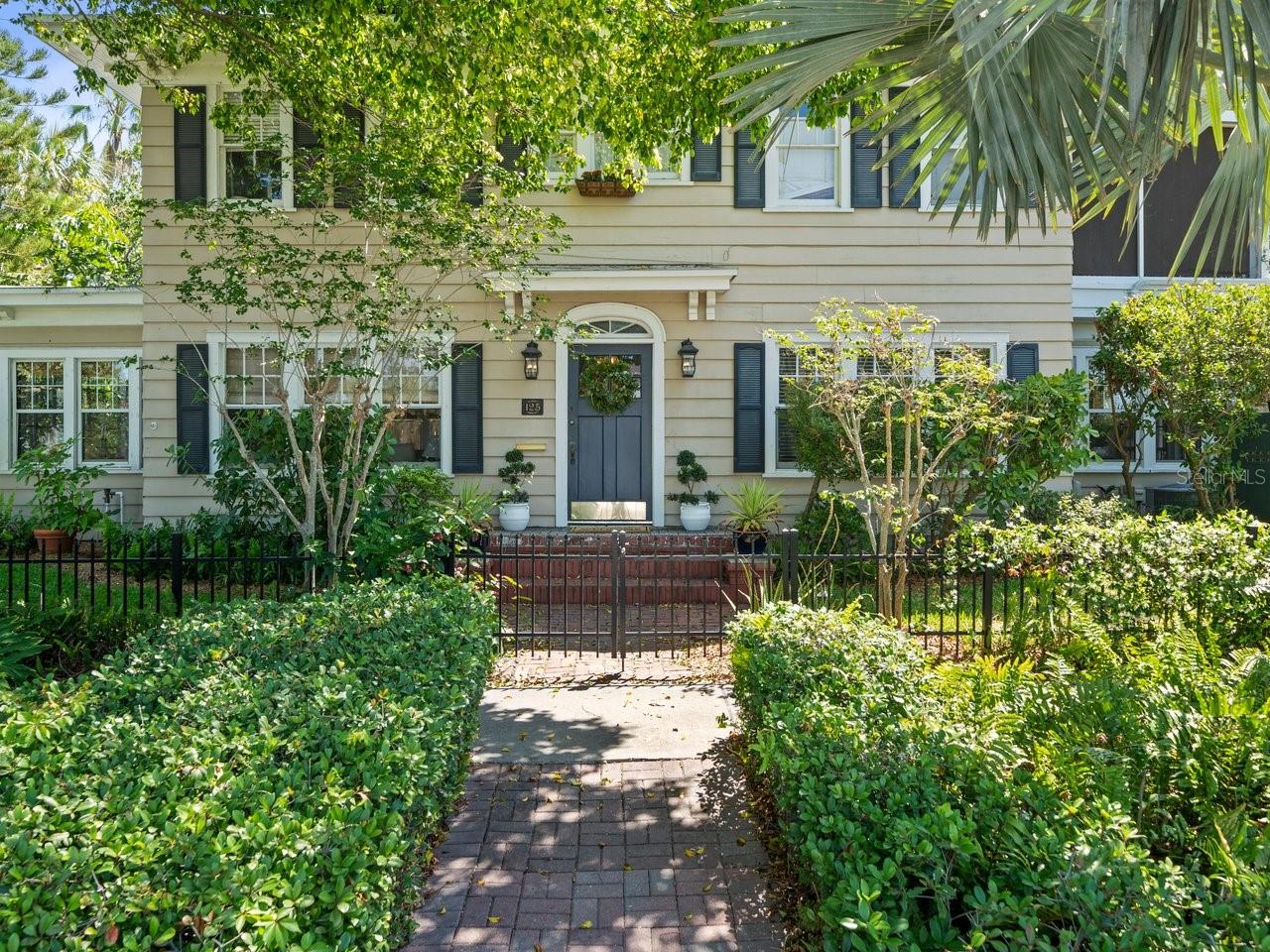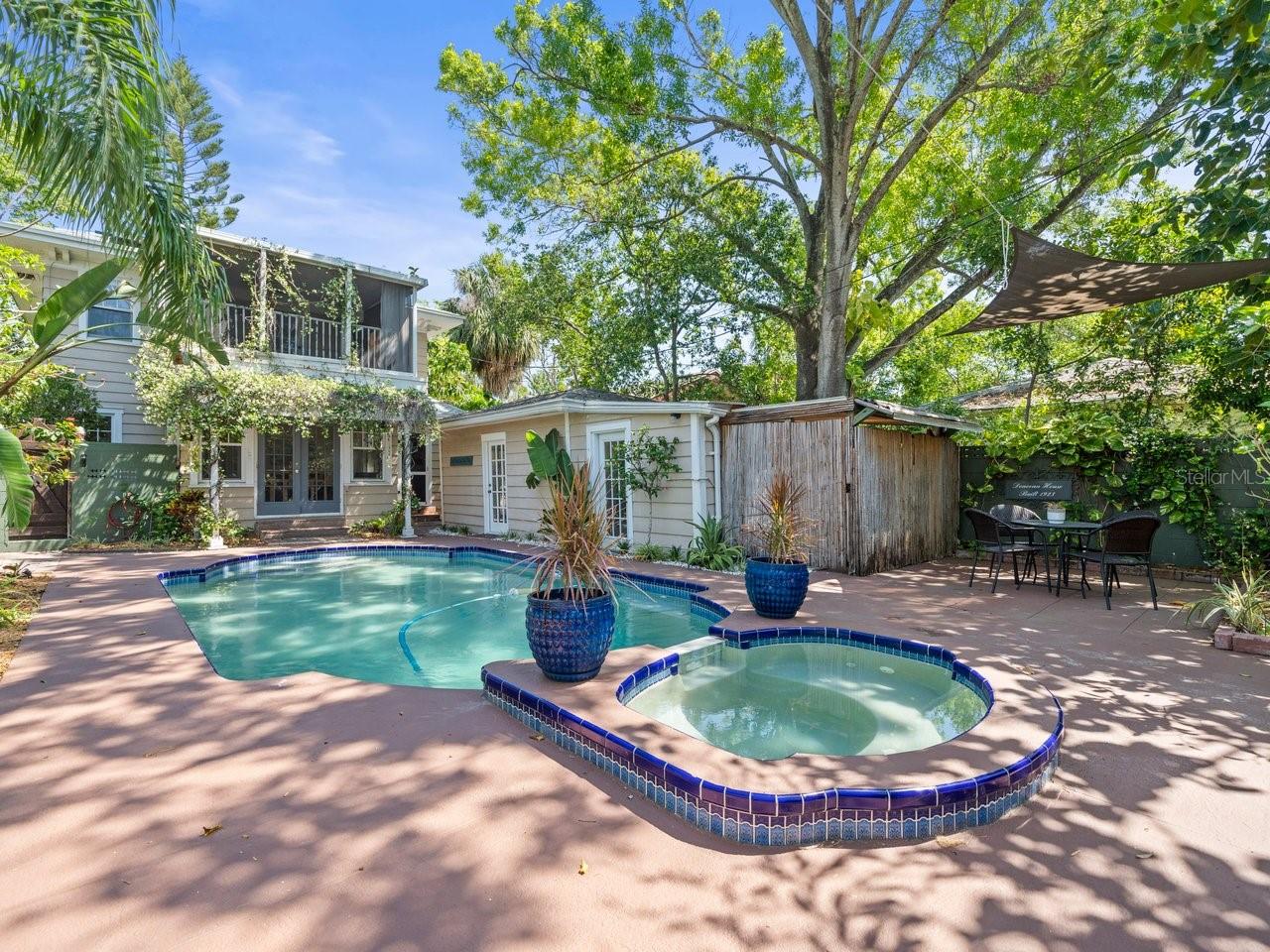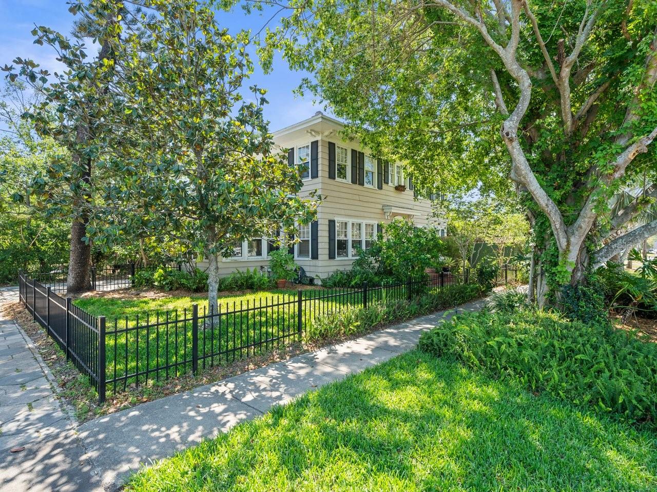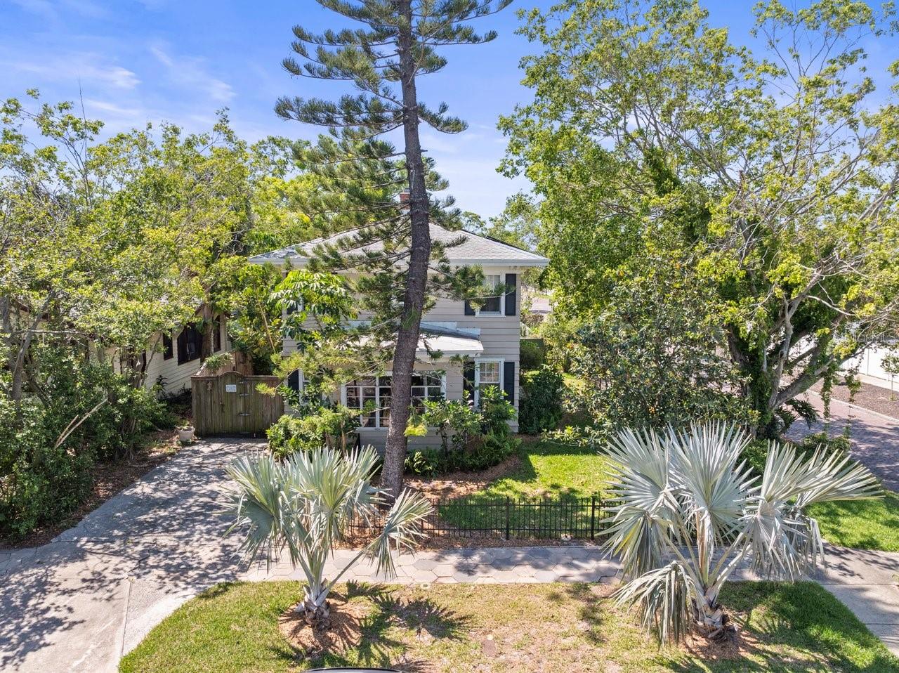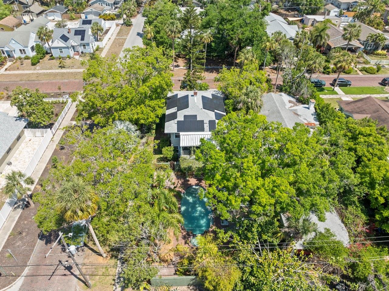 Welcome to this incredible character drenched pool home in the vibrant Grand Central District, one of St.Petersburg’s most coveted neighborhoods, known for its tree-lined streets, cobbled roads and rich architectural character, coupled with the walkability to the Central Avenue Arts District! This imposing property offers a natural light filled two-story residence exuding timeless charm! It has been lovingly maintained and tastefully improved in all its original glory. It is nestled on a very desirable corner lot featuring lush landscaping with accent lighting which add to the tremendous curb appeal of this dramatic classical home. From the moment you step into the grand entryway, you are greeted with the impressive original staircase, gleaming, recently refinished solid wood floors throughout and classic vintage finishes with original fixtures and fittings adding to the incredible draw of this historical property. You are immediately transported to a more elegant era. This stunning residence exudes timeless charm, lovingly maintained in its original glory while thoughtful updates ensure everyday comfort.The main floor flows beautifully from the formal living area with its own sunroom and impressive wood burning fireplace to the sun-drenched dining room only steps away from the cleverly designed kitchen which is a chef’s delight, blending modern upgrades with classic style, featuring an impressive gas Monogram stove, a charming Belfast sink, and picture-perfect views from the kitchen window, while providing complete privacy. It’s a space where form and function meet. The pantry/ laundry is only steps away from the kitchen and provides additional pantry style storage. There is an additional sitting room off the dining room and overlooks the walled garden complete with a heated pool and spill over spa. The spacious powder room is tucked away in the hallway, yet conveniently located under the stairs. There is a seperate and recently refinished flex room and storage building just steps away from the main house, perfect for summer pool parties, This room is directly off the pool area makes the perfect home gym, office, or art studio. This home includes solar panels which greatly reduces your electric costs for this sizable property. Don't delay in seeing this incredible property as it will not last! This property is in a non flood zone.