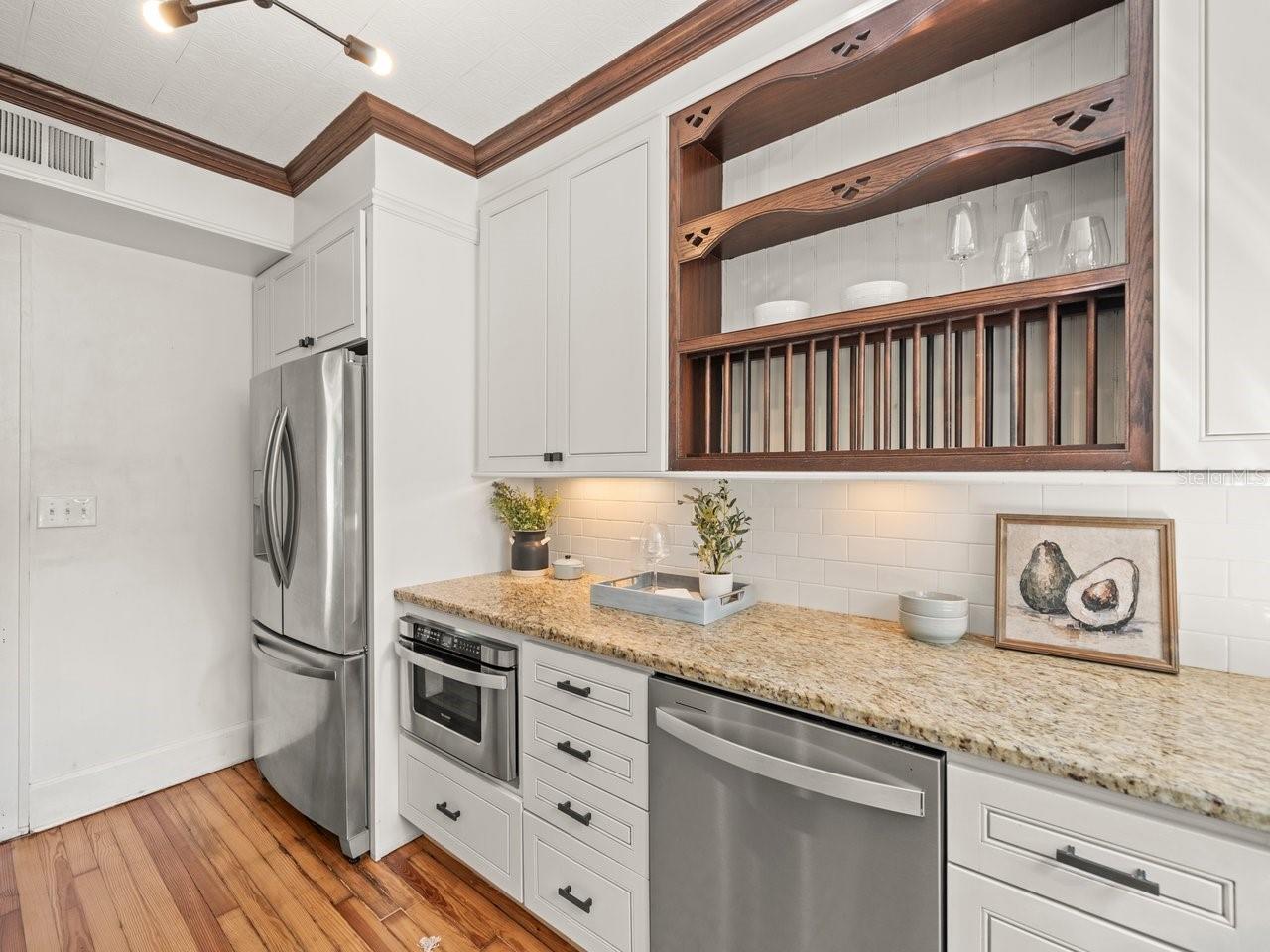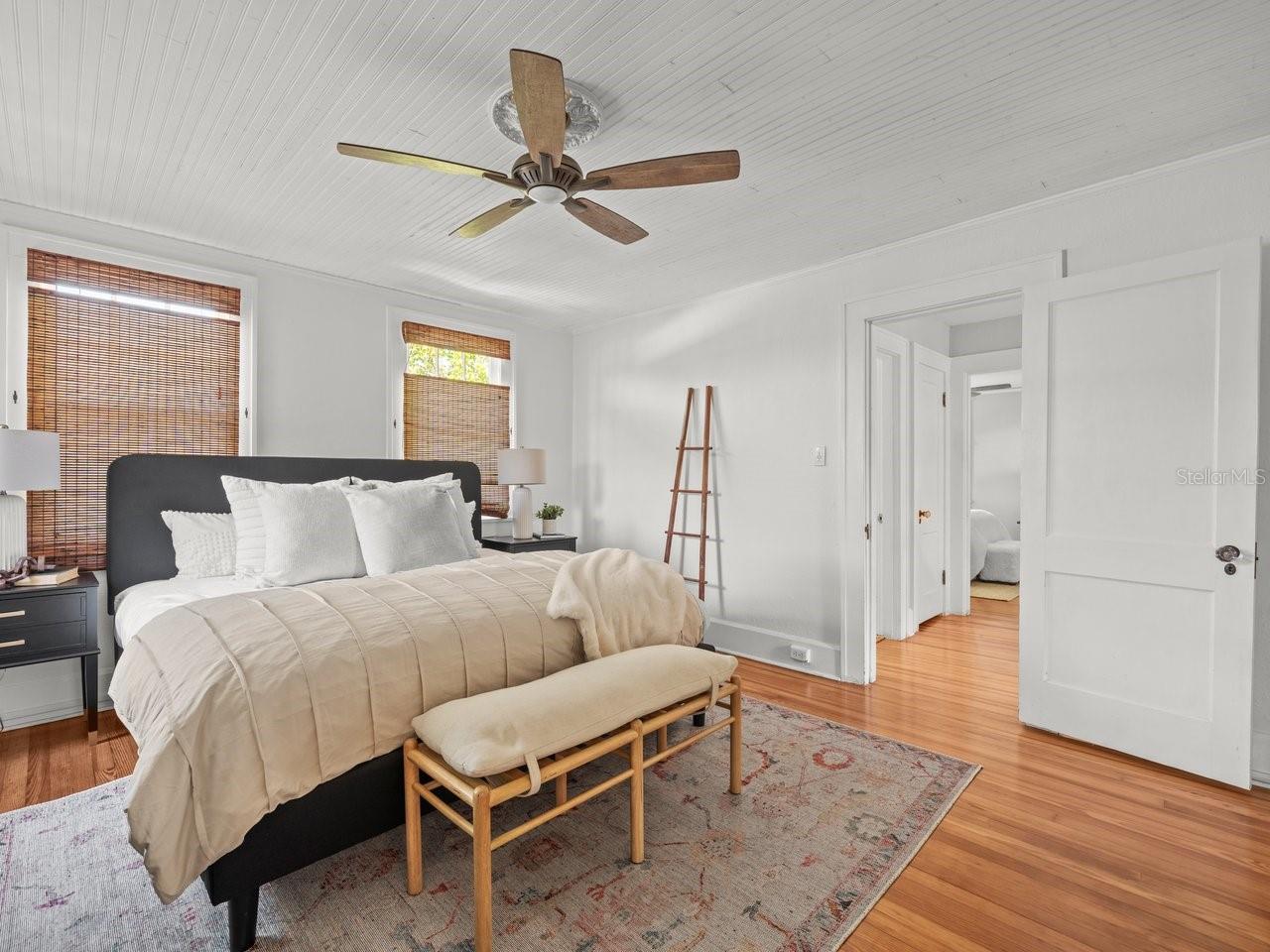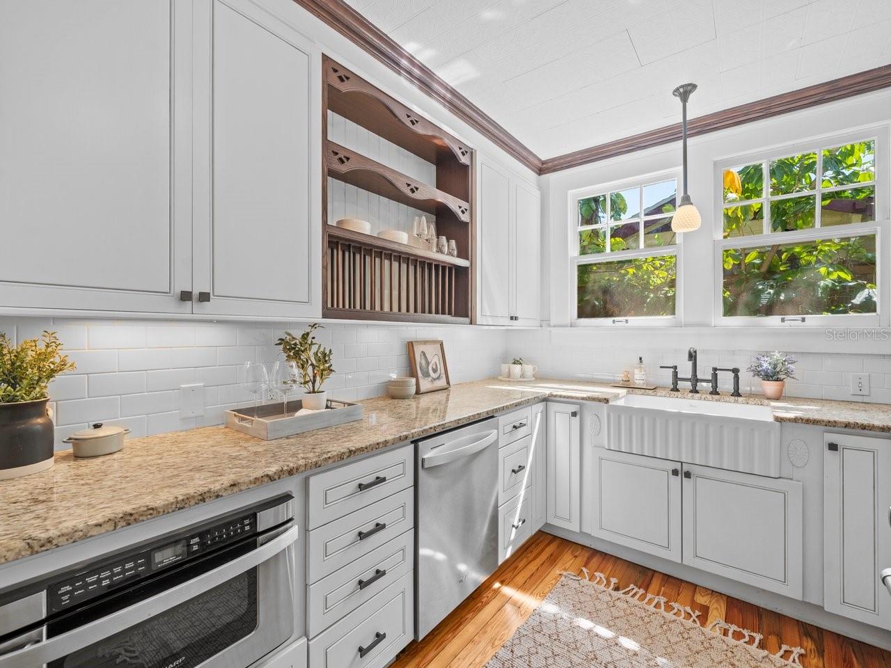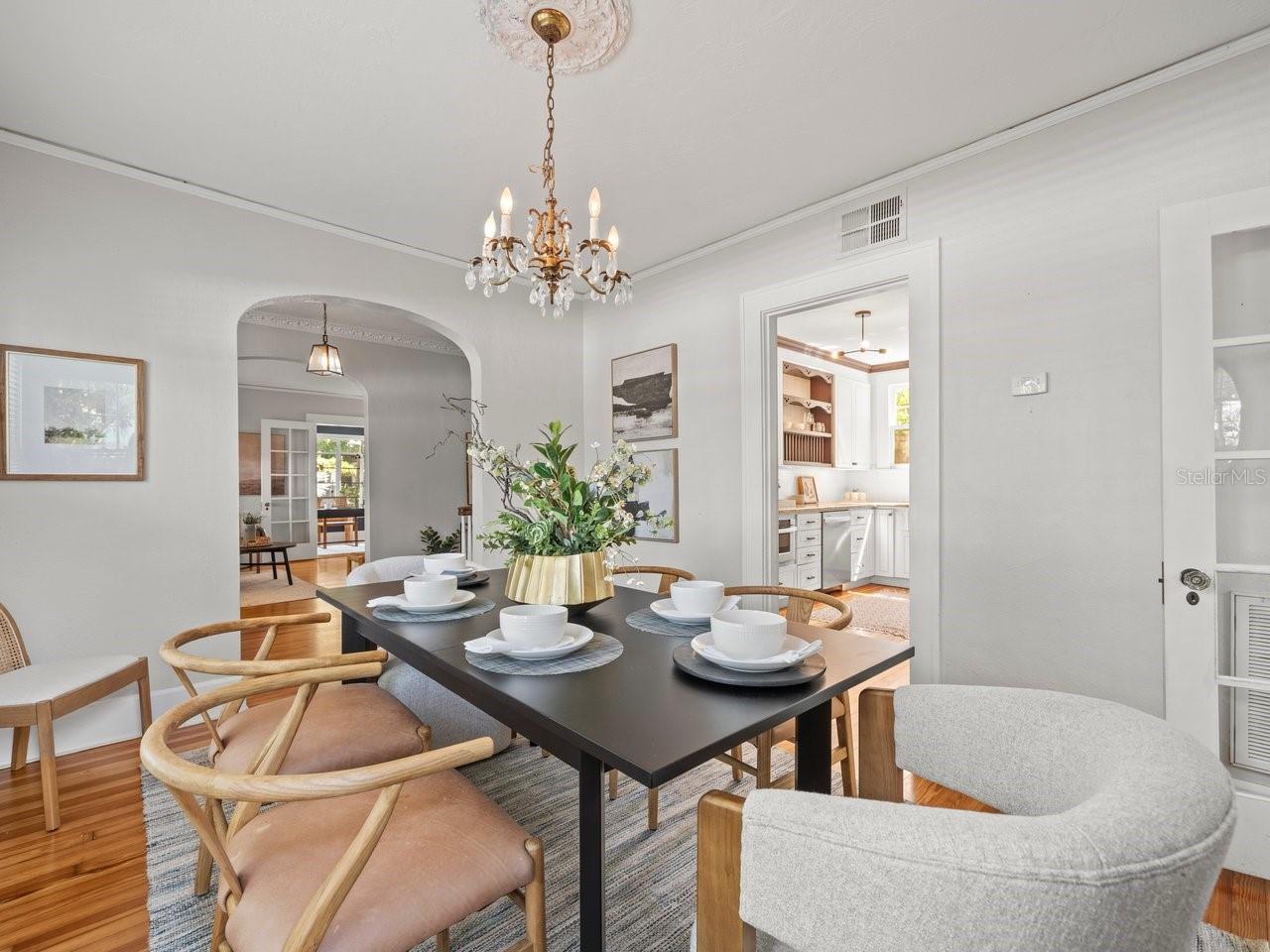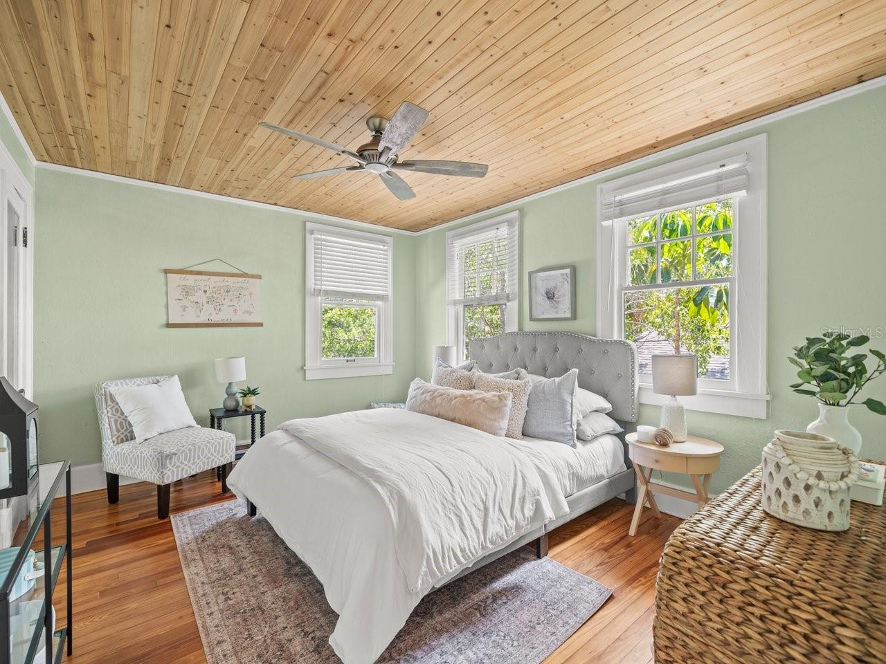 Welcome to this incredible character drenched pool home in the vibrant Grand Central District, one of St.Petersburg’s most coveted neighborhoods, known for its tree-lined streets, cobbled roads and rich architectural character, coupled with the walkability to the Central Avenue Arts District! This imposing property offers a natural light filled two-story residence exuding timeless charm! It has been lovingly maintained and tastefully improved in all its original glory. It is nestled on a very desirable corner lot featuring lush landscaping with accent lighting which add to the tremendous curb appeal of this dramatic classical home. From the moment you step into the grand entryway, you are greeted with the impressive original staircase, gleaming, recently refinished solid wood floors throughout and classic vintage finishes with original fixtures and fittings adding to the incredible draw of this historical property. You are immediately transported to a more elegant era. This stunning residence exudes timeless charm, lovingly maintained in its original glory while thoughtful updates ensure everyday comfort.The main floor flows beautifully from the formal living area with its own sunroom and impressive wood burning fireplace to the sun-drenched dining room only steps away from the cleverly designed kitchen which is a chef’s delight, blending modern upgrades with classic style, featuring an impressive gas Monogram stove, a charming Belfast sink, and picture-perfect views from the kitchen window, while providing complete privacy. It’s a space where form and function meet. The pantry/ laundry is only steps away from the kitchen and provides additional pantry style storage. There is an additional sitting room off the dining room and overlooks the walled garden complete with a heated pool and spill over spa. The spacious powder room is tucked away in the hallway, yet conveniently located under the stairs. There is a seperate and recently refinished flex room and storage building just steps away from the main house, perfect for summer pool parties, This room is directly off the pool area makes the perfect home gym, office, or art studio. This home includes solar panels which greatly reduces your electric costs for this sizable property. Don't delay in seeing this incredible property as it will not last! This property is in a non flood zone.