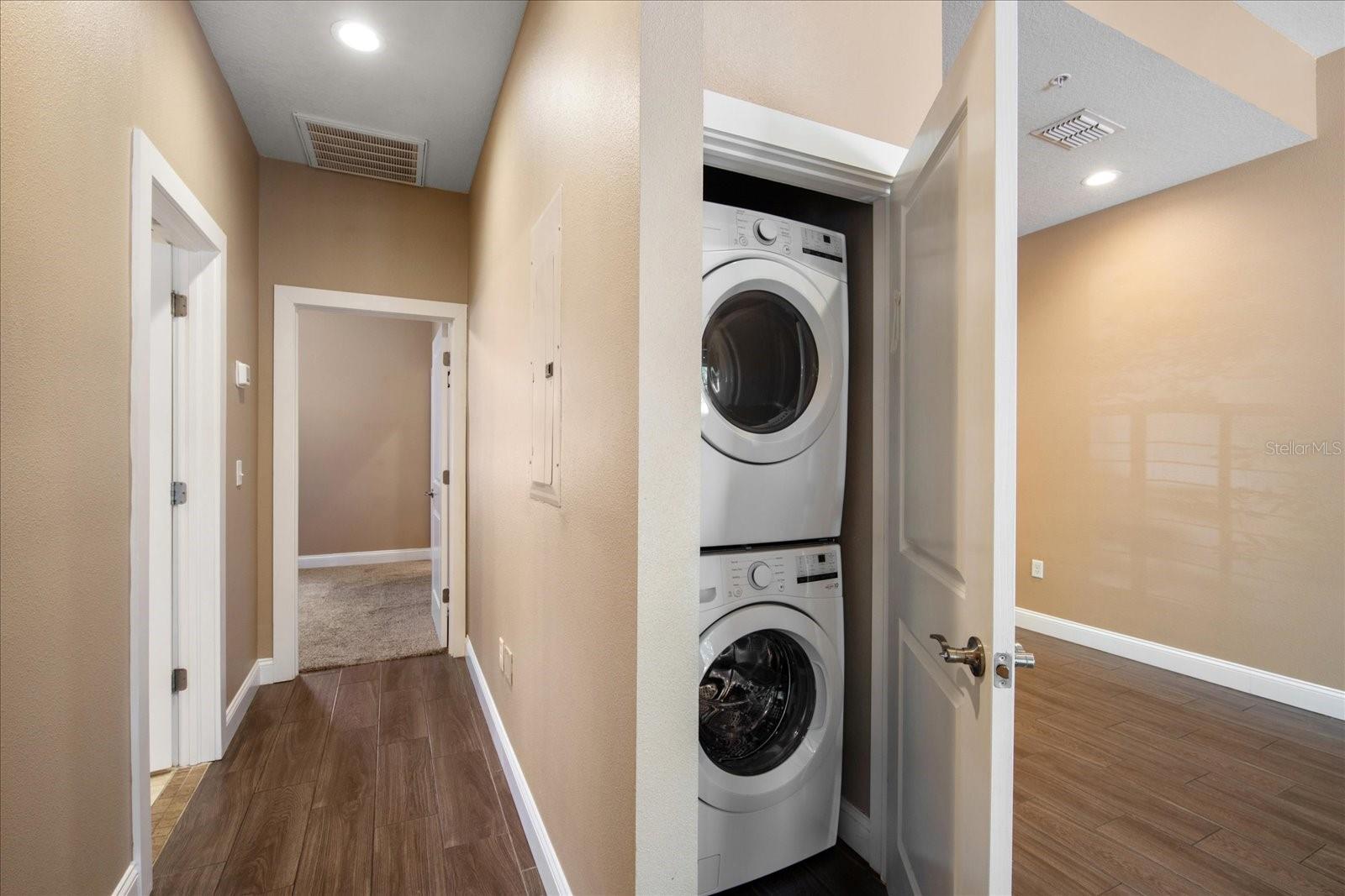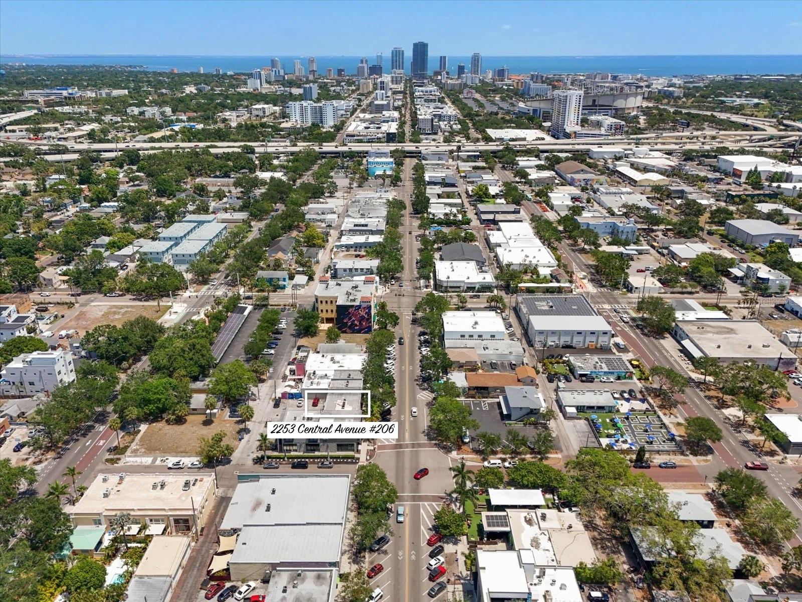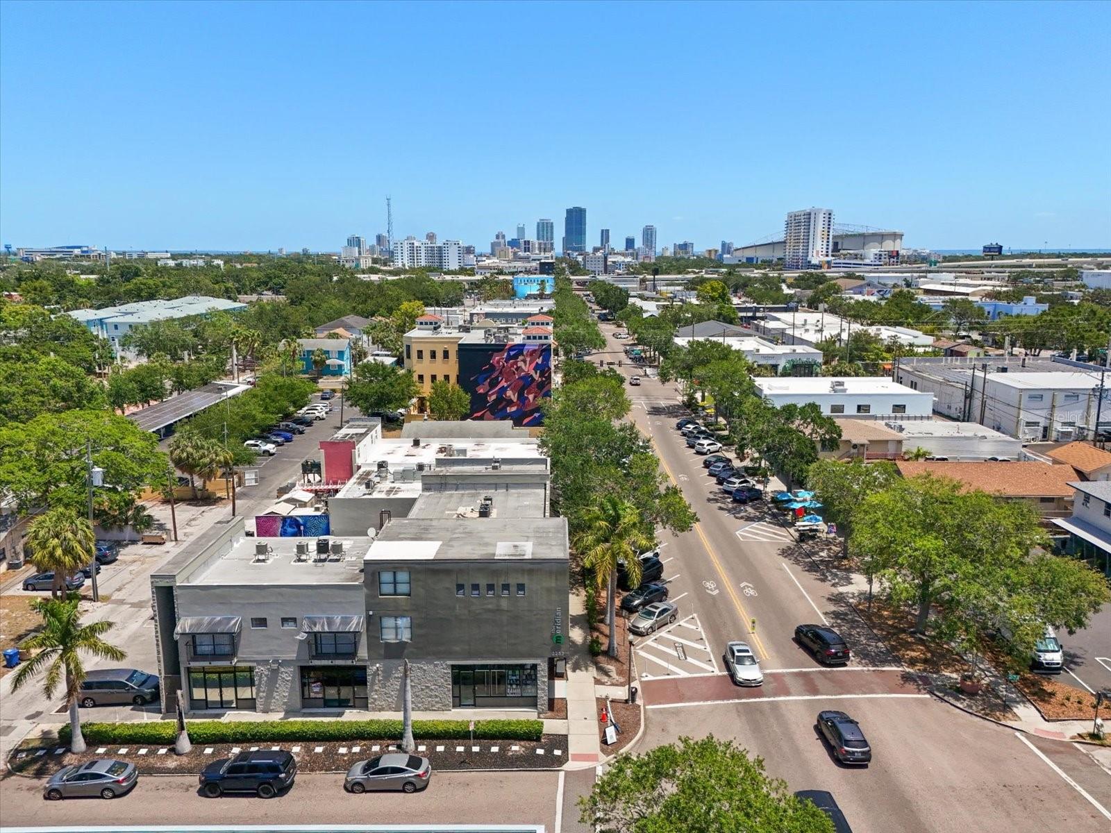 Don’t miss this RARE opportunity to live in the heart of St. Pete’s vibrant Grand Central District—where modern design meets unbeatable location! Located in The Meridian, a boutique-style condominium community that provides privacy and exclusivity with no long hallways or crowded elevators—just ease, comfort, and convenience. The 2 bedroom, 2 bathroom condo features a thoughtful layout with soaring 10-foot ceilings, wood plank tile flooring, and stylish updates throughout. The sleek kitchen boasts granite countertops, stainless steel appliances, an eat-in nook, and flows seamlessly into the open living area. Ideal for entertaining or enjoying a peaceful retreat in the city. The living room is complemented with a gorgeous light feature and the sliding glass doors lead to a covered, personal balcony overlooking Central Avenue. The bedrooms are located in the hallway off of the main living area. The primary bedroom is tucked in the back of the condo and en suite bathroom finishes include travertine tile, granite counter vanity, and glass framed walk-in shower. The second bedroom has easy access to the guest bathroom, which includes a travertine finished shower/tub combo, vanity with cabinet storage, and linen closet. A commonly overlooked but truly valuable luxury: your own in-unit washer and dryer. The community welcomes its owners with 2 gated entrances, reserved resident parking, and is pet friendly! The Grand Central District offers a true city-living experience with a small-town feel. It's known for its walkability, tree-lined streets, and an eclectic mix of locally owned restaurants, cafes, galleries, coffee shops, breweries, bars, boutiques, and just minutes from downtown and the waterfront. The condo is located in flood zone X, does not require flood insurance, and perfectly positioned near on street parking with easy access to the Pinellas Trail and SunRunner bus. Whether you're seeking a stylish place to call home or add to your portfolio, this distinctive condo stands out with its modern design, premium finishes, and access to everything downtown has to offer!