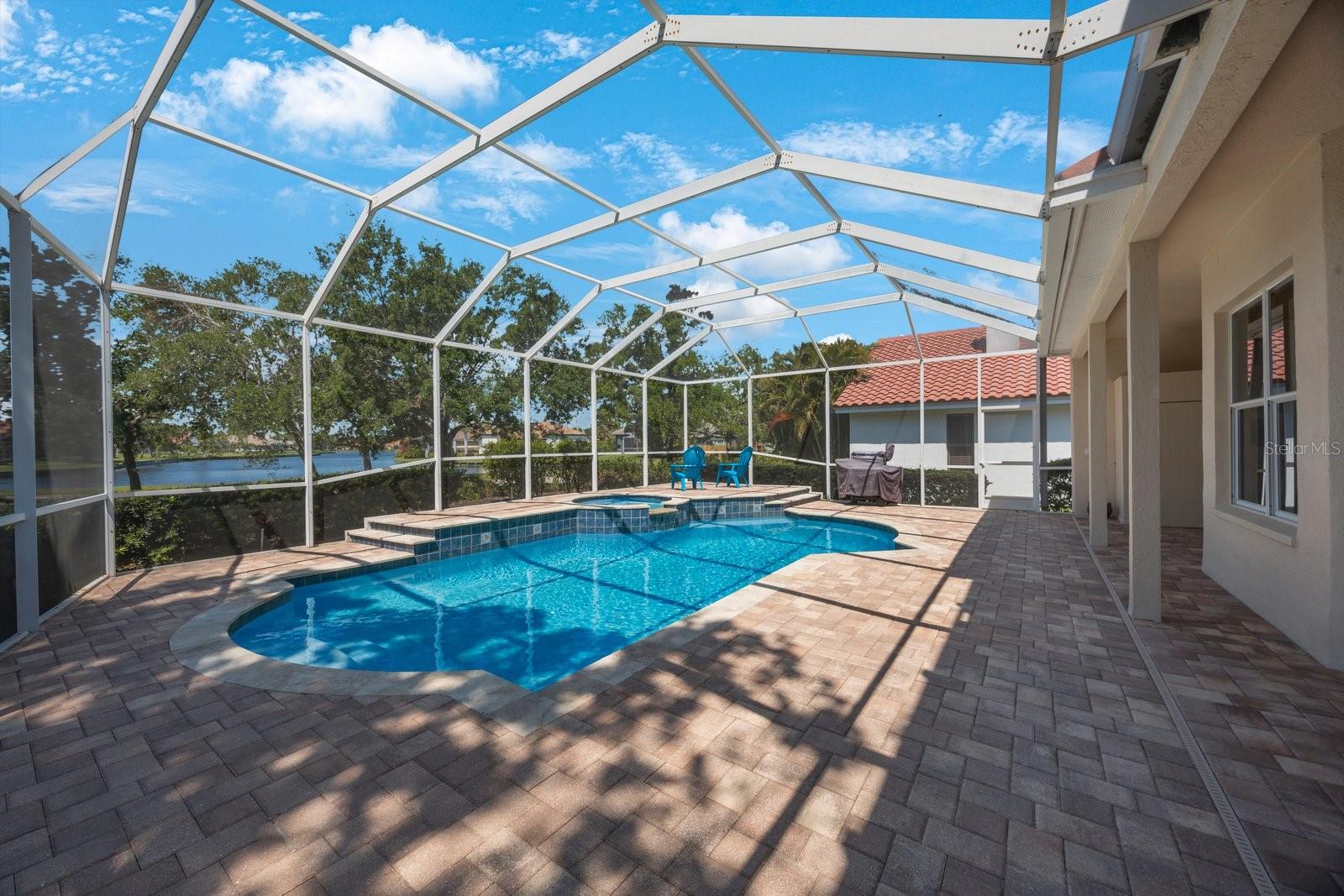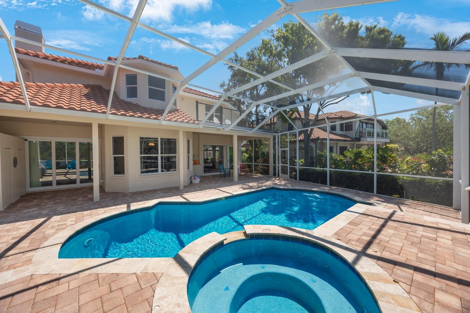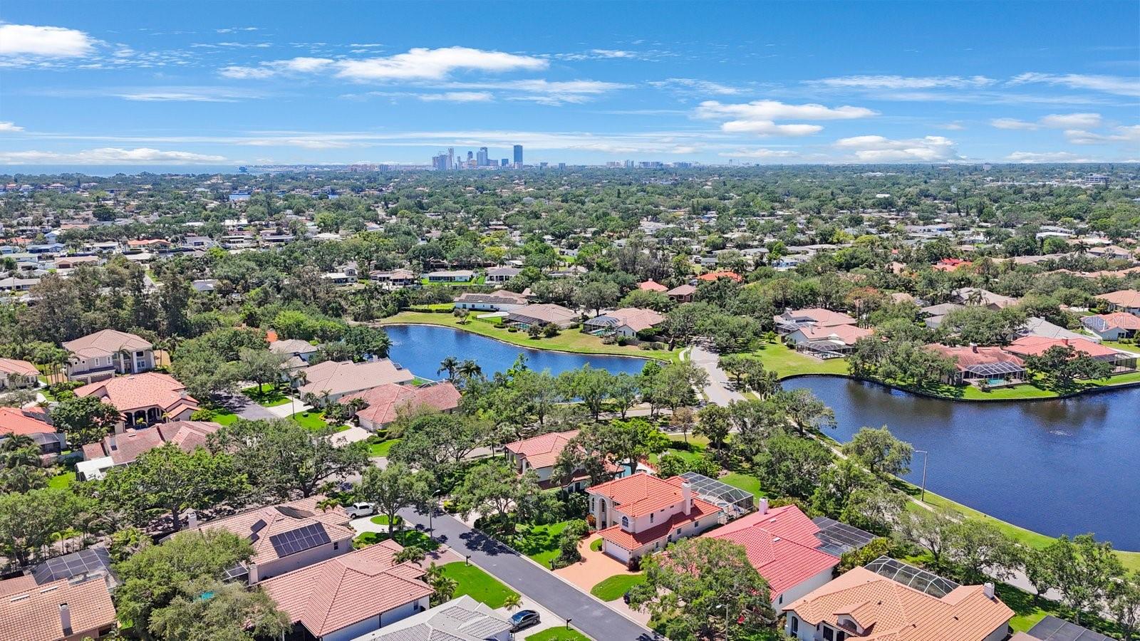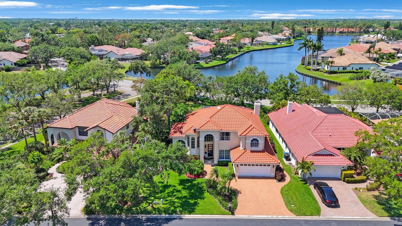 Secreted deep in the privacy of the northeast Placido Bayou neighborhood is a gorgeous two story home perfectly groomed for new owners. An oversized sparkling pool and in-ground heated spa stand ready for birthday parties or evening swims. The floorplan welcomes expansive entertaining with hurricane rated sliding doors that pocket and disappear, providing over 2000 sq ft of entertaining space. The lanai bar sink cabinet makes providing beverages easy and your guests will ooh and ahh at spectacular sunsets over the lake. For family nights the 75 inch TV brings any movie to life and with five bedrooms and three full baths there is plenty of room for guests and family to stay a while. “Gas up” your Tesla with the in-garage charger or offer the amenity to your guests. Retire to your very private primary bedroom and luxurious ensuite with jacuzzi soaking tub and large stand up shower. There is even a laundry chute for those wet towels. Take your evening cocktail out on the balcony and enjoy beautiful landscaping and lake views from your perch. For evenings in there is your gourmet kitchen with gleaming counters and hanging pans at hand, along with a prep sink and Bosch dishwasher for easy clean up. For the athlete there is a tennis/pickleball club right outside the gates of the neighborhood, and a brand new YMCA five minutes away. Private and public schools are close by – Shorecrest is even within walking distance. Placido Bayou is a gated community and everyone can ride their bikes and walk in a very friendly neighborhood. Fishing is right out your back door and large mouth bass, snook and bluegills are yours for the taking. In fact, the closet on the lanai houses a set of fishing poles! The current owner is an engineer and is meticulous about maintenance. The roof, gutters and a/c ducts were replaced in 2015, the A/C in 2017, the floors, baths and kitchen updated in 2020, the hot water heater replaced in 2020 and all doors including garage replaced in 2020. California closets 2021. Balcony renovated 2022. Pool cage redone 2024 and pool pump replaced 2025. Landscape refresh 2025. Tommy Todd handles all landscape requirements and Pool Troopers the pool and spa. The brick driveway and walkways are composed of full bricks which do not mold or gather algae. The lawn has a complete irrigation and drainage system. The electrical system has been updated and the pool pump and salt pool are new. The house is concrete block and is rated by the county to be excellent construction. The home stands at 9 feet above sea level and there has been no flooding in the home ever. Placido Bayou is close to downtown (25 minute bike ride), the Pinellas Trail (5 min. bike ride), a Publix shopping center (5 min drive), I275 (10 min. drive), the Tampa airport (25 min) and a plethora of restaurants, boutiques, movie theatres and event venues (Dali, MFA, etc). It is the perfect location to experience everything St. Pete has to offer. This home is waiting for you – grab the opportunity and come and see your new home!