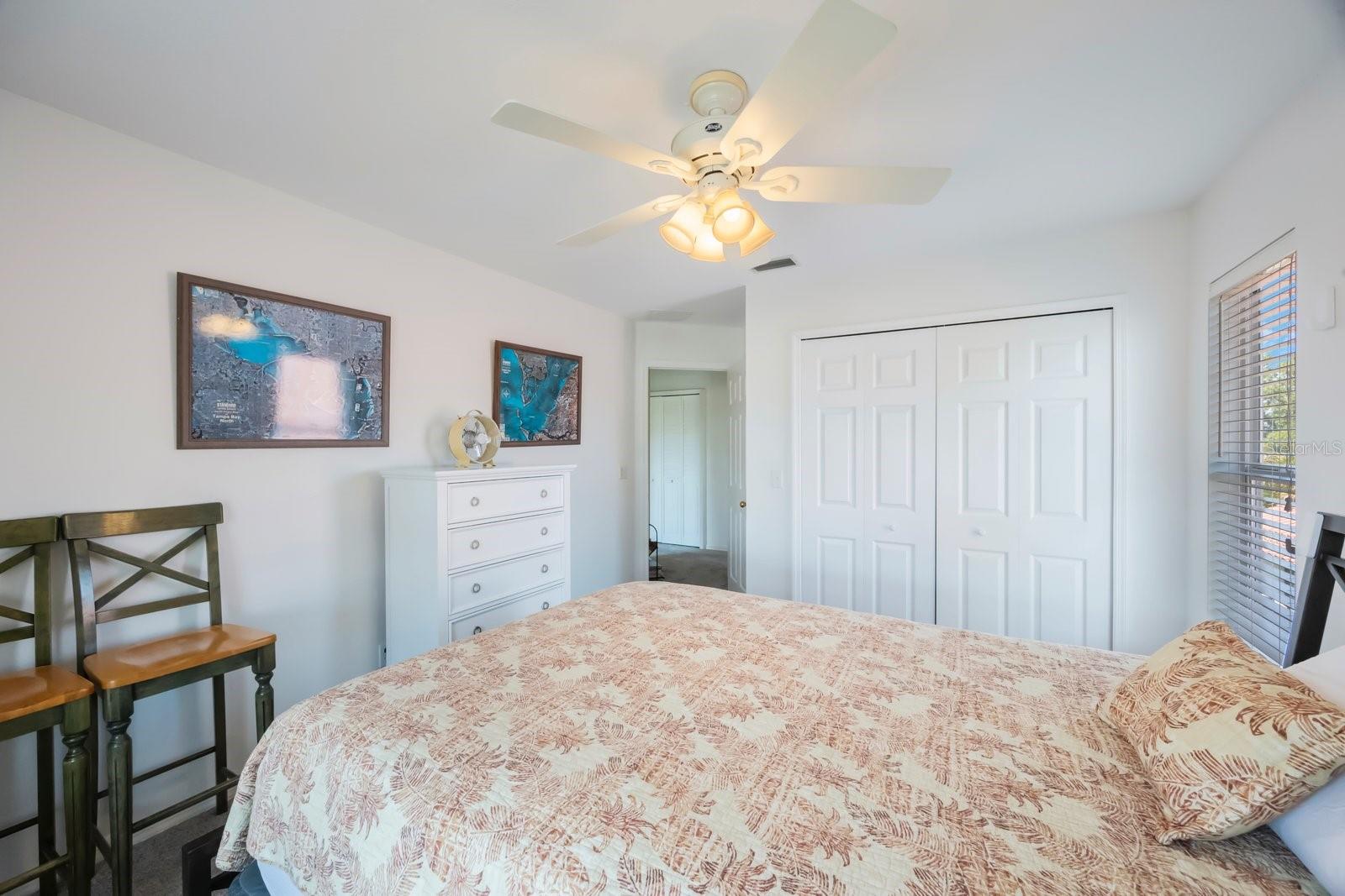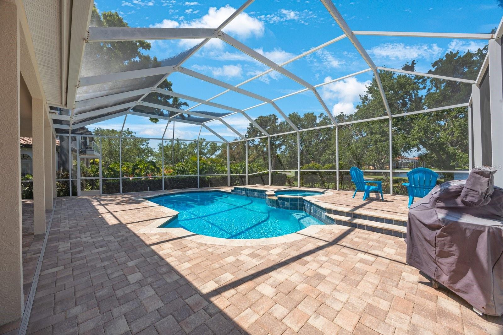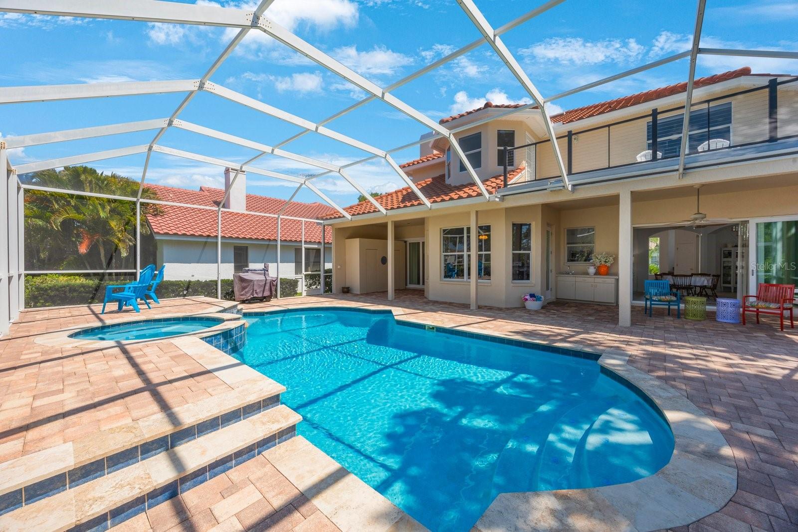 Secreted deep in the privacy of the northeast Placido Bayou neighborhood is a gorgeous two story home perfectly groomed for new owners. An oversized sparkling pool and in-ground heated spa stand ready for birthday parties or evening swims. The floorplan welcomes expansive entertaining with hurricane rated sliding doors that pocket and disappear, providing over 2000 sq ft of entertaining space. The lanai bar sink cabinet makes providing beverages easy and your guests will ooh and ahh at spectacular sunsets over the lake. For family nights the 75 inch TV brings any movie to life and with five bedrooms and three full baths there is plenty of room for guests and family to stay a while. “Gas up” your Tesla with the in-garage charger or offer the amenity to your guests. Retire to your very private primary bedroom and luxurious ensuite with jacuzzi soaking tub and large stand up shower. There is even a laundry chute for those wet towels. Take your evening cocktail out on the balcony and enjoy beautiful landscaping and lake views from your perch. For evenings in there is your gourmet kitchen with gleaming counters and hanging pans at hand, along with a prep sink and Bosch dishwasher for easy clean up. For the athlete there is a tennis/pickleball club right outside the gates of the neighborhood, and a brand new YMCA five minutes away. Private and public schools are close by – Shorecrest is even within walking distance. Placido Bayou is a gated community and everyone can ride their bikes and walk in a very friendly neighborhood. Fishing is right out your back door and large mouth bass, snook and bluegills are yours for the taking. In fact, the closet on the lanai houses a set of fishing poles! The current owner is an engineer and is meticulous about maintenance. The roof, gutters and a/c ducts were replaced in 2015, the A/C in 2017, the floors, baths and kitchen updated in 2020, the hot water heater replaced in 2020 and all doors including garage replaced in 2020. California closets 2021. Balcony renovated 2022. Pool cage redone 2024 and pool pump replaced 2025. Landscape refresh 2025. Tommy Todd handles all landscape requirements and Pool Troopers the pool and spa. The brick driveway and walkways are composed of full bricks which do not mold or gather algae. The lawn has a complete irrigation and drainage system. The electrical system has been updated and the pool pump and salt pool are new. The house is concrete block and is rated by the county to be excellent construction. The home stands at 9 feet above sea level and there has been no flooding in the home ever. Placido Bayou is close to downtown (25 minute bike ride), the Pinellas Trail (5 min. bike ride), a Publix shopping center (5 min drive), I275 (10 min. drive), the Tampa airport (25 min) and a plethora of restaurants, boutiques, movie theatres and event venues (Dali, MFA, etc). It is the perfect location to experience everything St. Pete has to offer. This home is waiting for you – grab the opportunity and come and see your new home!
