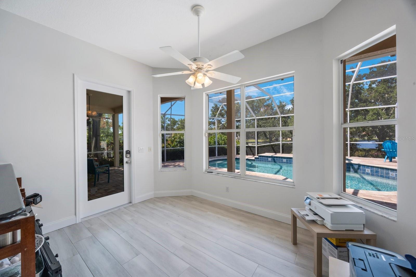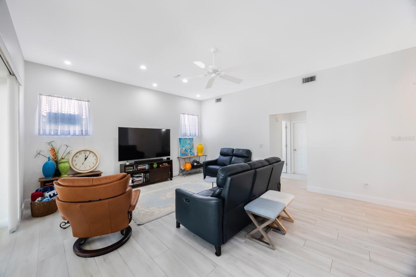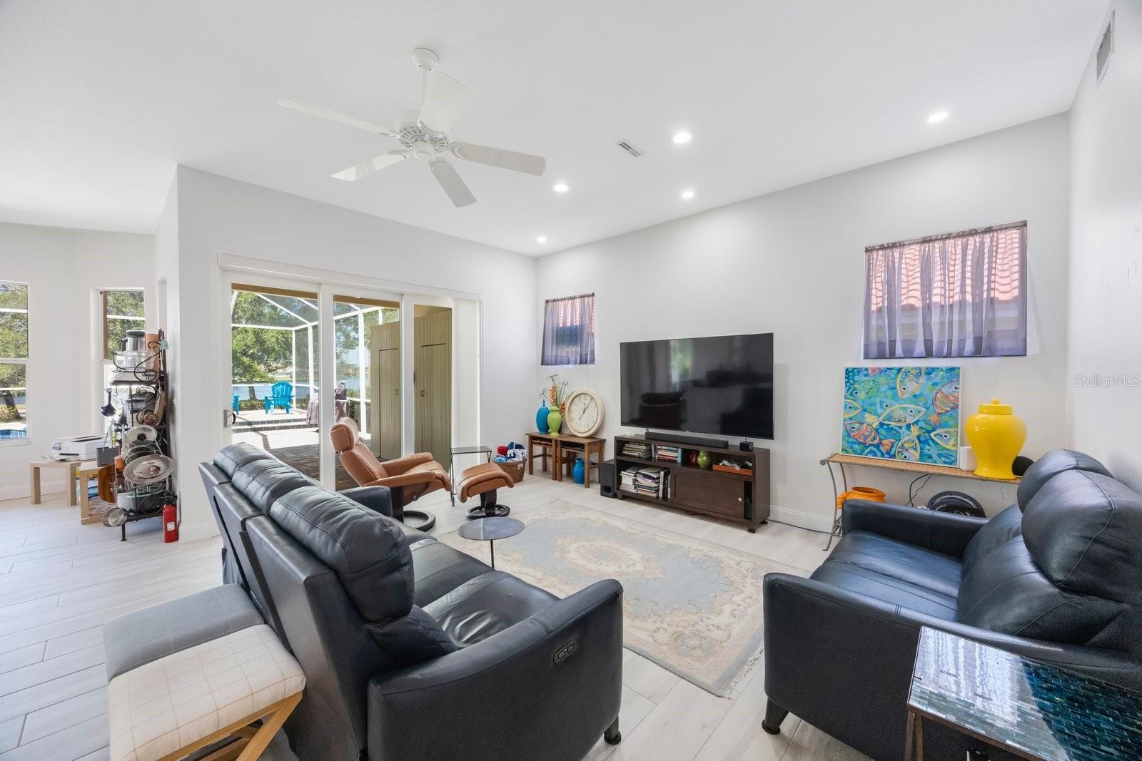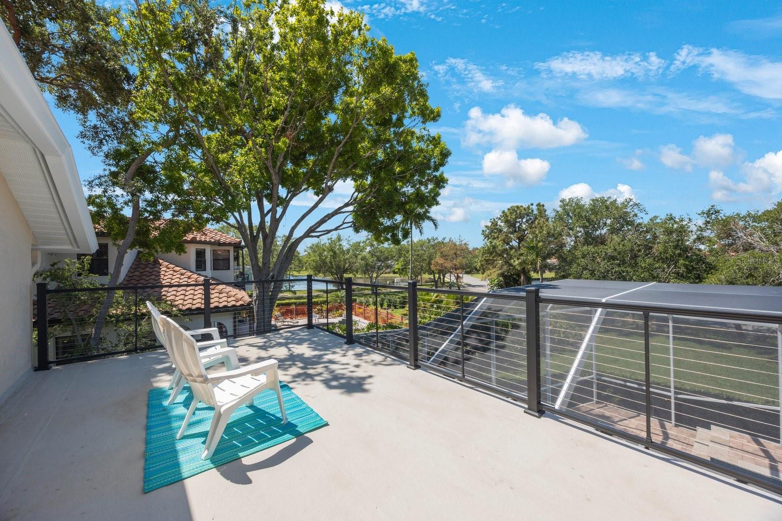 Secreted deep in the privacy of the northeast Placido Bayou neighborhood is a gorgeous two story home perfectly groomed for new owners. An oversized sparkling pool and in-ground heated spa stand ready for birthday parties or evening swims. The floorplan welcomes expansive entertaining with hurricane rated sliding doors that pocket and disappear, providing over 2000 sq ft of entertaining space. The lanai bar sink cabinet makes providing beverages easy and your guests will ooh and ahh at spectacular sunsets over the lake. For family nights the 75 inch TV brings any movie to life and with five bedrooms and three full baths there is plenty of room for guests and family to stay a while. “Gas up” your Tesla with the in-garage charger or offer the amenity to your guests. Retire to your very private primary bedroom and luxurious ensuite with jacuzzi soaking tub and large stand up shower. There is even a laundry chute for those wet towels. Take your evening cocktail out on the balcony and enjoy beautiful landscaping and lake views from your perch. For evenings in there is your gourmet kitchen with gleaming counters and hanging pans at hand, along with a prep sink and Bosch dishwasher for easy clean up. For the athlete there is a tennis/pickleball club right outside the gates of the neighborhood, and a brand new YMCA five minutes away. Private and public schools are close by – Shorecrest is even within walking distance. Placido Bayou is a gated community and everyone can ride their bikes and walk in a very friendly neighborhood. Fishing is right out your back door and large mouth bass, snook and bluegills are yours for the taking. In fact, the closet on the lanai houses a set of fishing poles! The current owner is an engineer and is meticulous about maintenance. The roof, gutters and a/c ducts were replaced in 2015, the A/C in 2017, the floors, baths and kitchen updated in 2020, the hot water heater replaced in 2020 and all doors including garage replaced in 2020. California closets 2021. Balcony renovated 2022. Pool cage redone 2024 and pool pump replaced 2025. Landscape refresh 2025. Tommy Todd handles all landscape requirements and Pool Troopers the pool and spa. The brick driveway and walkways are composed of full bricks which do not mold or gather algae. The lawn has a complete irrigation and drainage system. The electrical system has been updated and the pool pump and salt pool are new. The house is concrete block and is rated by the county to be excellent construction. The home stands at 9 feet above sea level and there has been no flooding in the home ever. Placido Bayou is close to downtown (25 minute bike ride), the Pinellas Trail (5 min. bike ride), a Publix shopping center (5 min drive), I275 (10 min. drive), the Tampa airport (25 min) and a plethora of restaurants, boutiques, movie theatres and event venues (Dali, MFA, etc). It is the perfect location to experience everything St. Pete has to offer. This home is waiting for you – grab the opportunity and come and see your new home!
