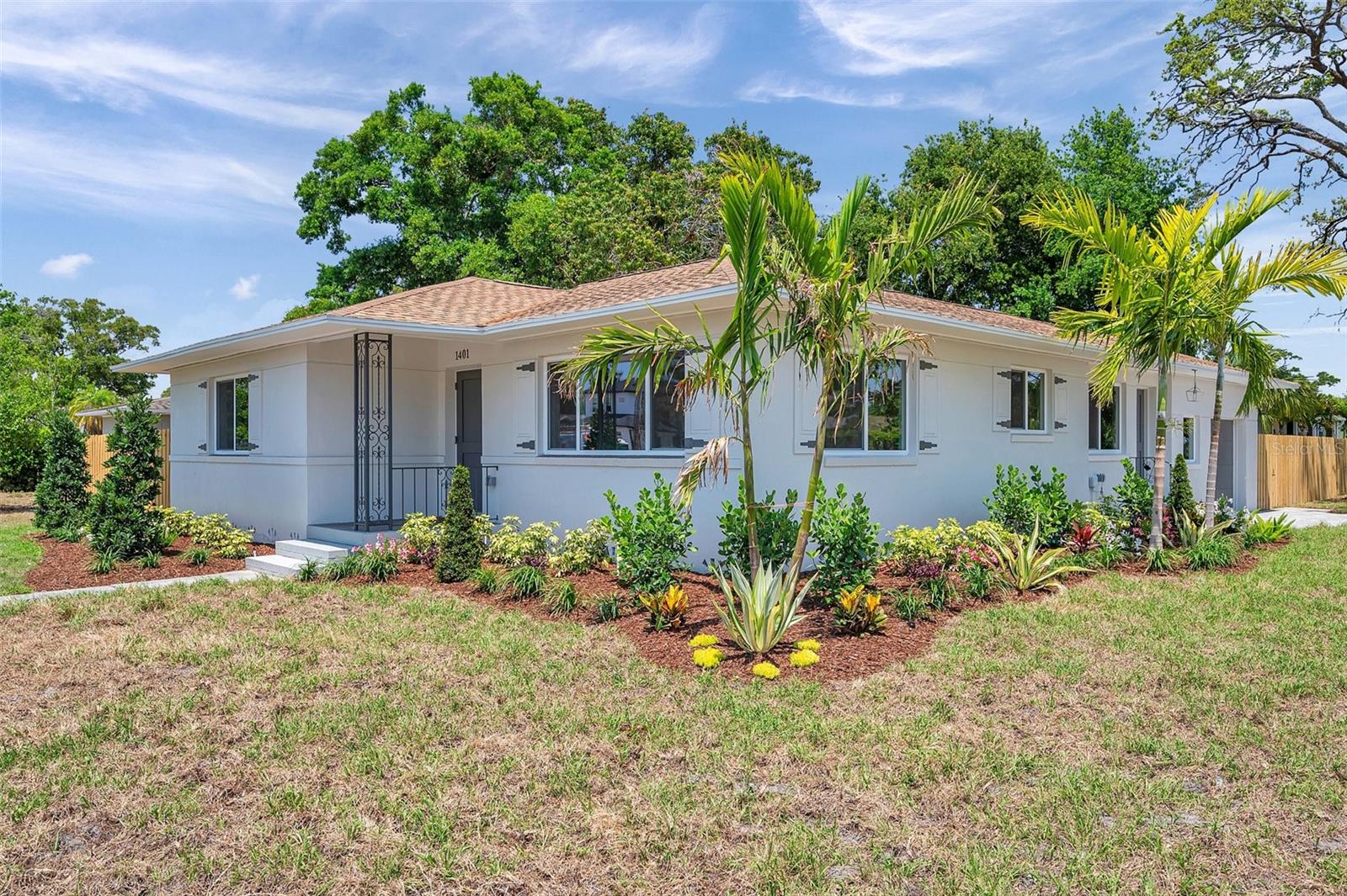 Welcome to your beautifully reimagined home in the heart of St. Petersburg. Positioned on a substantial 90x126 lot in Flood Zone X, one of the highest elevation points in the city, this residence offers a rare combination of thoughtful upgrades and long-term peace of mind. The three-bedroom, two-bath layout is complemented by an oversized one-car garage with ample space for tools or storage. Step into the redesigned kitchen, where quartz countertops, custom cabinetry, and GE appliances provide a refined space that enhances daily living and effortless entertaining. Both bathrooms have been carefully renovated to offer a spa-like atmosphere with modern tile work and elegant finishes. This home is not only aesthetically updated but structurally prepared for the future. It features MI vinyl impact Low-E windows, Therma-Tru fiberglass impact doors, a replaced sewer system extending to the city tap, full electrical rewire with a new service panel, updated HVAC system (2022), and a new overhead garage door with motor. The roof, replaced in 2017, completes the package of extensive improvements. Enjoy the fully fenced backyard, ideal for quiet outdoor relaxation or future expansion. With a spacious lot, there’s plenty of potential for a pool, garden, or customized outdoor retreat. With its modern enhancements, solid infrastructure, and desirable location, this St. Petersburg property presents a sound opportunity for buyers looking to invest in lasting value.