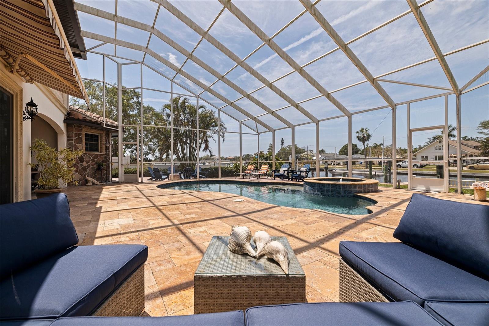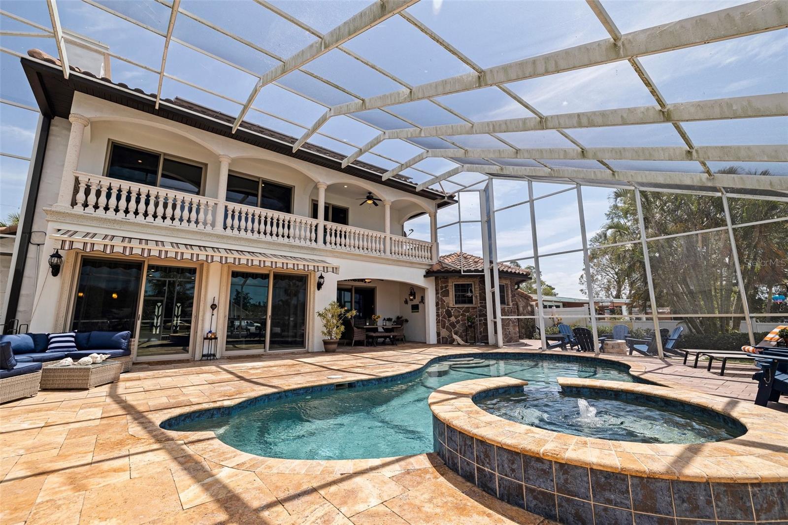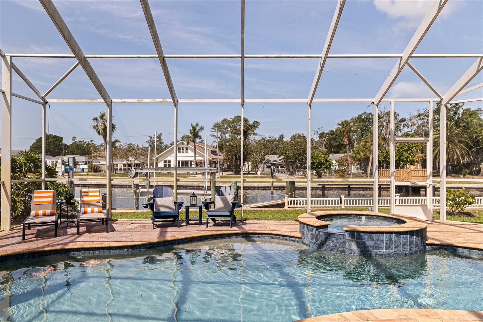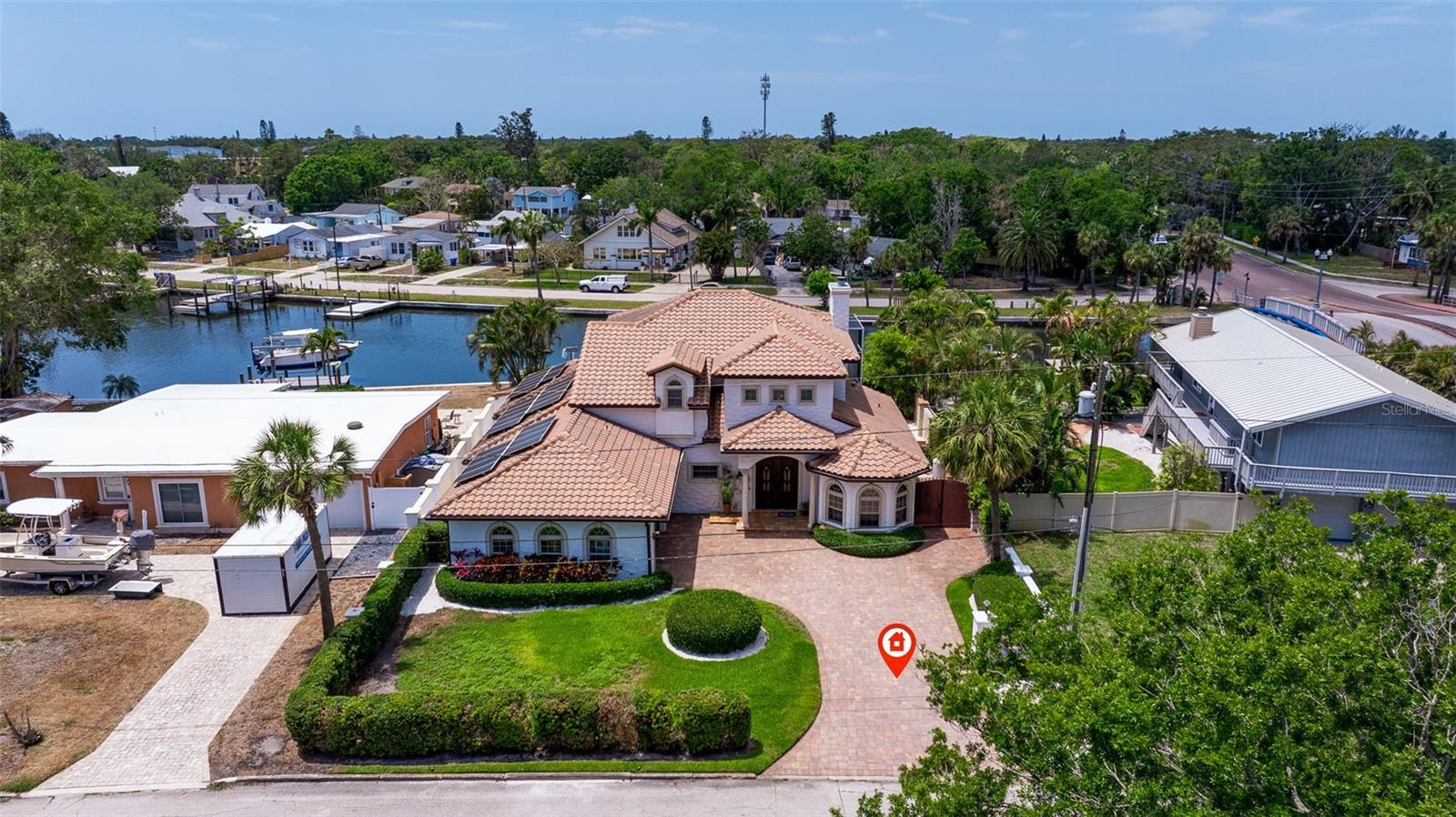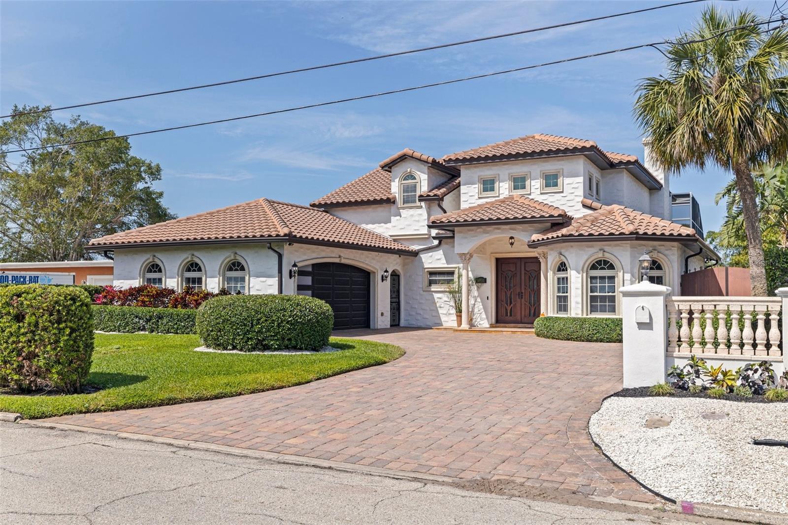 Picture this; a custom Spanish-Mediterranean style, waterfront home conveniently located just 2.5 miles from Downtown St. Pete and nestled on “The Friendly Island” of Coquina Key. Completed in 2012, this breathtaking 2-story, 3,366 sq/ft home with 3 beds, 3 baths & oversized 2-car garage, is sure to define luxury waterfront living. Featuring an open floor plan and 20’ ceilings in the entryway foyer, as you step inside you will be captivated by the openness of the home and unobstructed water views straight through the living quarters. Be sure to notice the added beauty of crown molding, travertine tile and wood plank flooring, a built-in dog space under the stairs, wood burning fireplace and many other custom finishes that make this home one-of-a-kind! The kitchen is a chef’s dream with top-of-the-line Miele appliances, a built-in barista station, dual pantry/storage, custom cabinetry, direct access to the formal dining room and is the center of the home making entertaining a breeze. The rest of the 1st floor includes a guest room & bath; private breezeway access to your breakfast room & garage; and the unmatched primary suite that boasts double sliders to the pool and a massive en-suite with double walk-in closets, soaking tub, dual vanity, water closet, and oversized walk-in shower with two rain showerheads and numerous body jets. Head upstairs to your 2nd en-suite that features a flex space/game room, stunning bathroom and access to your 2nd floor balcony that is within the screened enclosure overlooking the pool and dazzling waterways. Adjacent, the upstairs is complete with an additional oversized living area with added space for an office area and dual-sliders to the 2nd floor balcony, perfect for sipping morning coffee or enjoying an evening cocktail. And for the standout exterior, this property features all fresh landscaping and shell beds, a custom paver driveway, paver patio with built-in fire pit overlooking the waterway and pool, private dock with boat & PWC lift, and the unparalleled 2-story screened enclosure that houses your heated pool and spa. This pool is an entertainment highlight with an expansive travertine tile pool deck, dining areas, multiple lounging spaces and endless opportunity for fun in the sun, all just steps from the beautiful intercoastal waters and the Gulf! Aiding in efficiency, this home is equipped with solar panels, a barrel tile roof, all impact sliders and windows, and in 2024 a new propane pool heater & equipment installed. With the common goal of creating a community that makes all its residents proud, Coquina Key is home to parks & playgrounds, pickleball, basketball and tennis courts, a soccer/football field, miles of walking trails, 2 dog parks and more! This neighborhood makes staying active enjoyable for you, your family, and/or pets! Between the high-end custom finishes and unmatched luxuries of the outdoor living spaces, this home speaks for itself in providing endless opportunity for the highly sought after waterfront lifestyle on the sparking waters of St. Petersburg, FL!