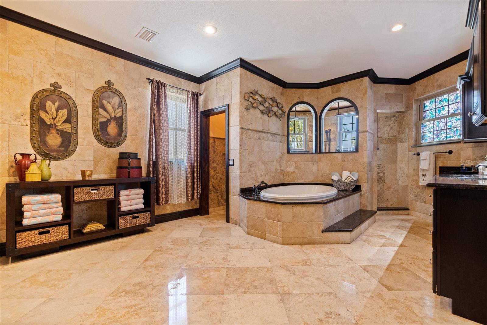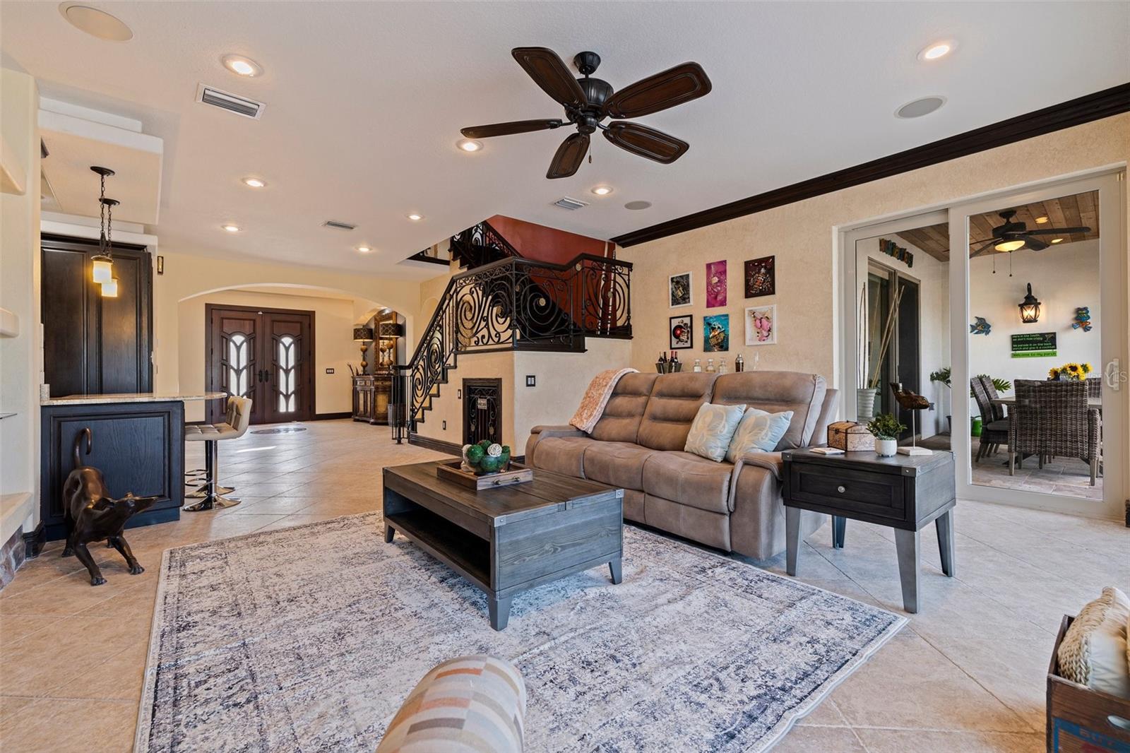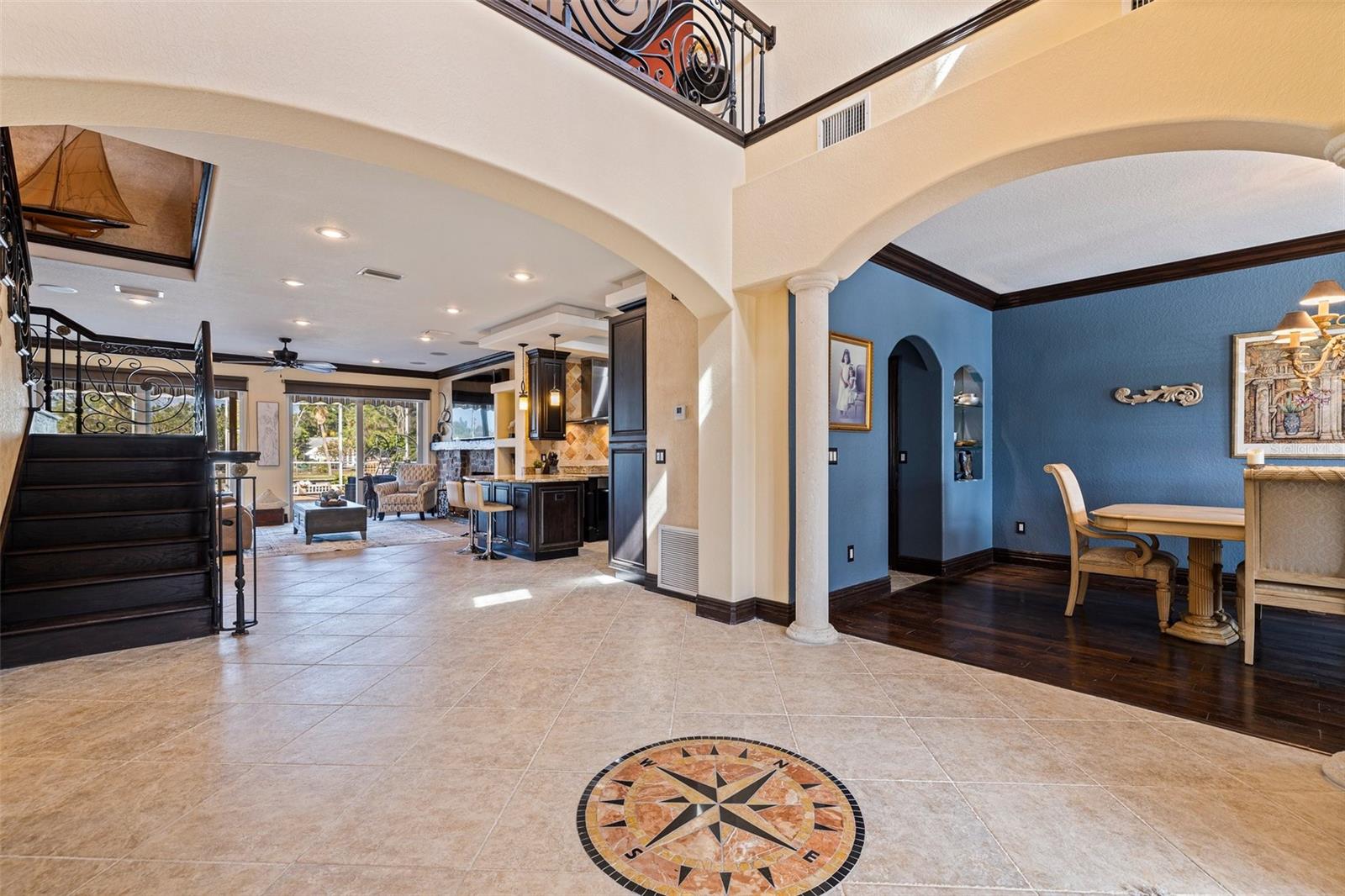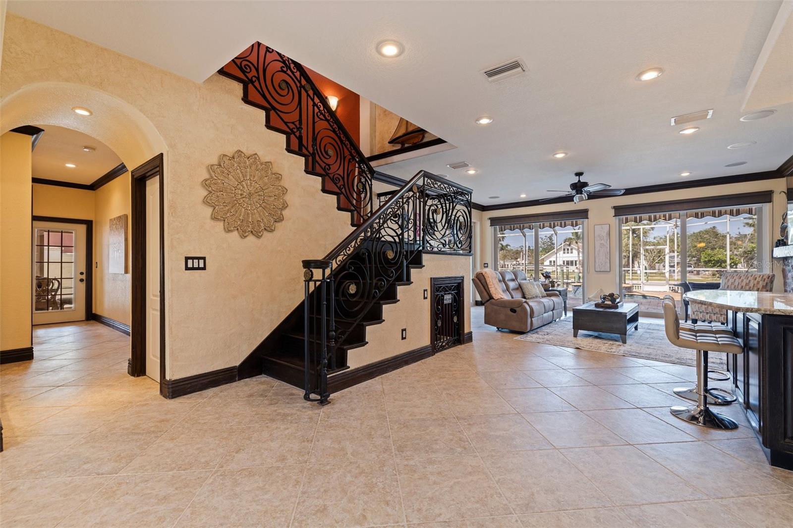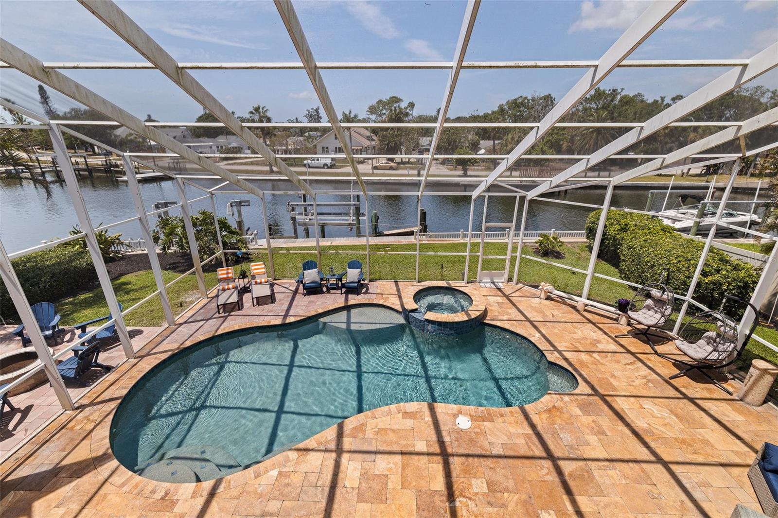 Picture this; a custom Spanish-Mediterranean style, waterfront home conveniently located just 2.5 miles from Downtown St. Pete and nestled on “The Friendly Island” of Coquina Key. Completed in 2012, this breathtaking 2-story, 3,366 sq/ft home with 3 beds, 3 baths & oversized 2-car garage, is sure to define luxury waterfront living. Featuring an open floor plan and 20’ ceilings in the entryway foyer, as you step inside you will be captivated by the openness of the home and unobstructed water views straight through the living quarters. Be sure to notice the added beauty of crown molding, travertine tile and wood plank flooring, a built-in dog space under the stairs, wood burning fireplace and many other custom finishes that make this home one-of-a-kind! The kitchen is a chef’s dream with top-of-the-line Miele appliances, a built-in barista station, dual pantry/storage, custom cabinetry, direct access to the formal dining room and is the center of the home making entertaining a breeze. The rest of the 1st floor includes a guest room & bath; private breezeway access to your breakfast room & garage; and the unmatched primary suite that boasts double sliders to the pool and a massive en-suite with double walk-in closets, soaking tub, dual vanity, water closet, and oversized walk-in shower with two rain showerheads and numerous body jets. Head upstairs to your 2nd en-suite that features a flex space/game room, stunning bathroom and access to your 2nd floor balcony that is within the screened enclosure overlooking the pool and dazzling waterways. Adjacent, the upstairs is complete with an additional oversized living area with added space for an office area and dual-sliders to the 2nd floor balcony, perfect for sipping morning coffee or enjoying an evening cocktail. And for the standout exterior, this property features all fresh landscaping and shell beds, a custom paver driveway, paver patio with built-in fire pit overlooking the waterway and pool, private dock with boat & PWC lift, and the unparalleled 2-story screened enclosure that houses your heated pool and spa. This pool is an entertainment highlight with an expansive travertine tile pool deck, dining areas, multiple lounging spaces and endless opportunity for fun in the sun, all just steps from the beautiful intercoastal waters and the Gulf! Aiding in efficiency, this home is equipped with solar panels, a barrel tile roof, all impact sliders and windows, and in 2024 a new propane pool heater & equipment installed. With the common goal of creating a community that makes all its residents proud, Coquina Key is home to parks & playgrounds, pickleball, basketball and tennis courts, a soccer/football field, miles of walking trails, 2 dog parks and more! This neighborhood makes staying active enjoyable for you, your family, and/or pets! Between the high-end custom finishes and unmatched luxuries of the outdoor living spaces, this home speaks for itself in providing endless opportunity for the highly sought after waterfront lifestyle on the sparking waters of St. Petersburg, FL!