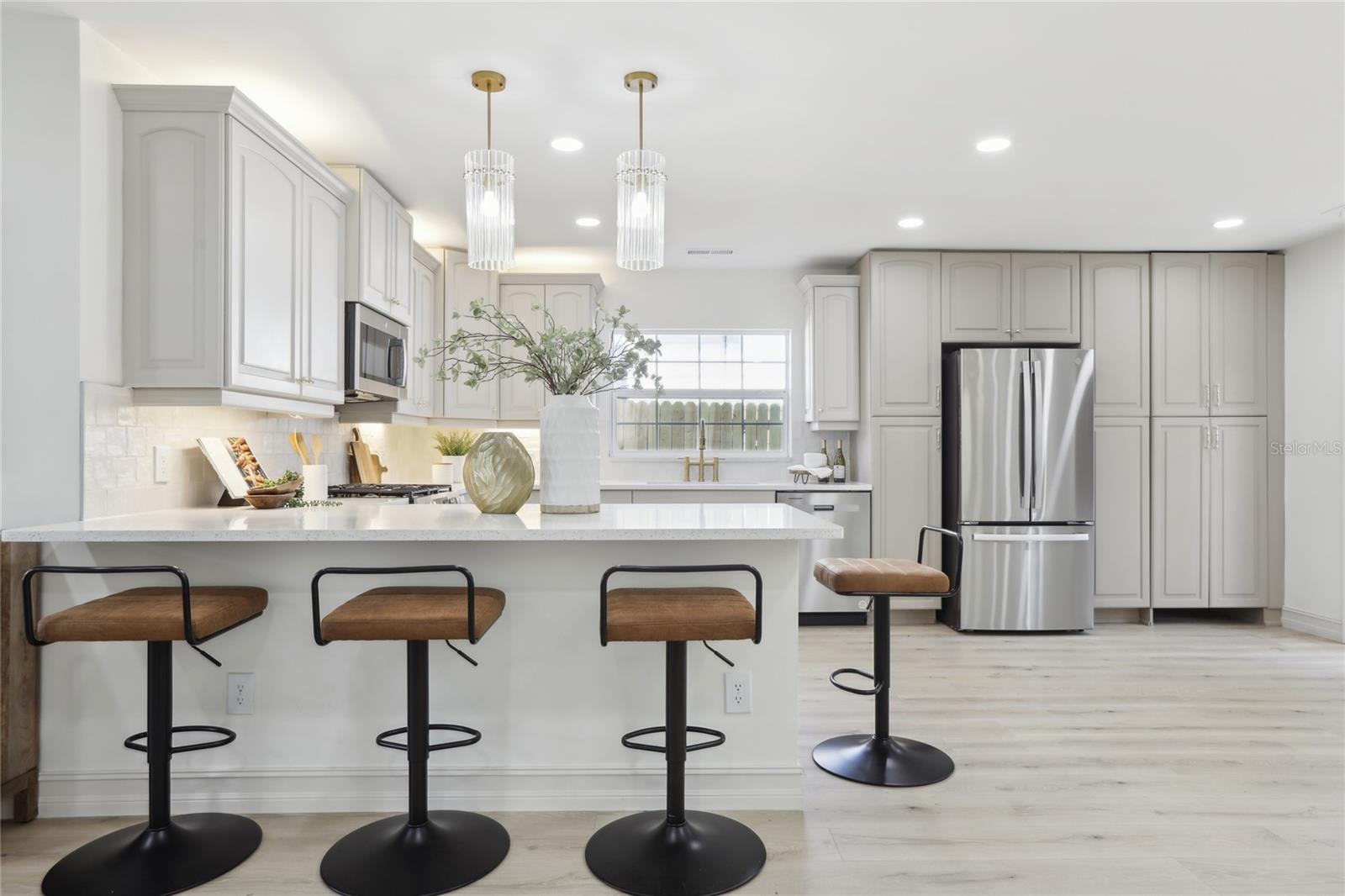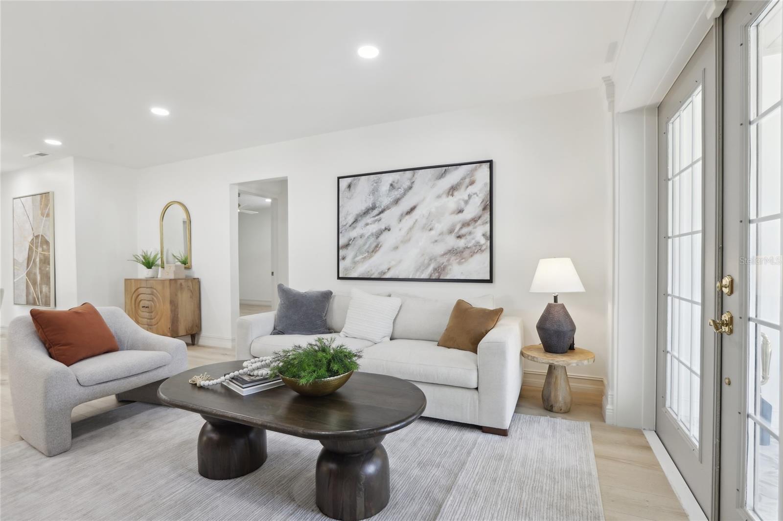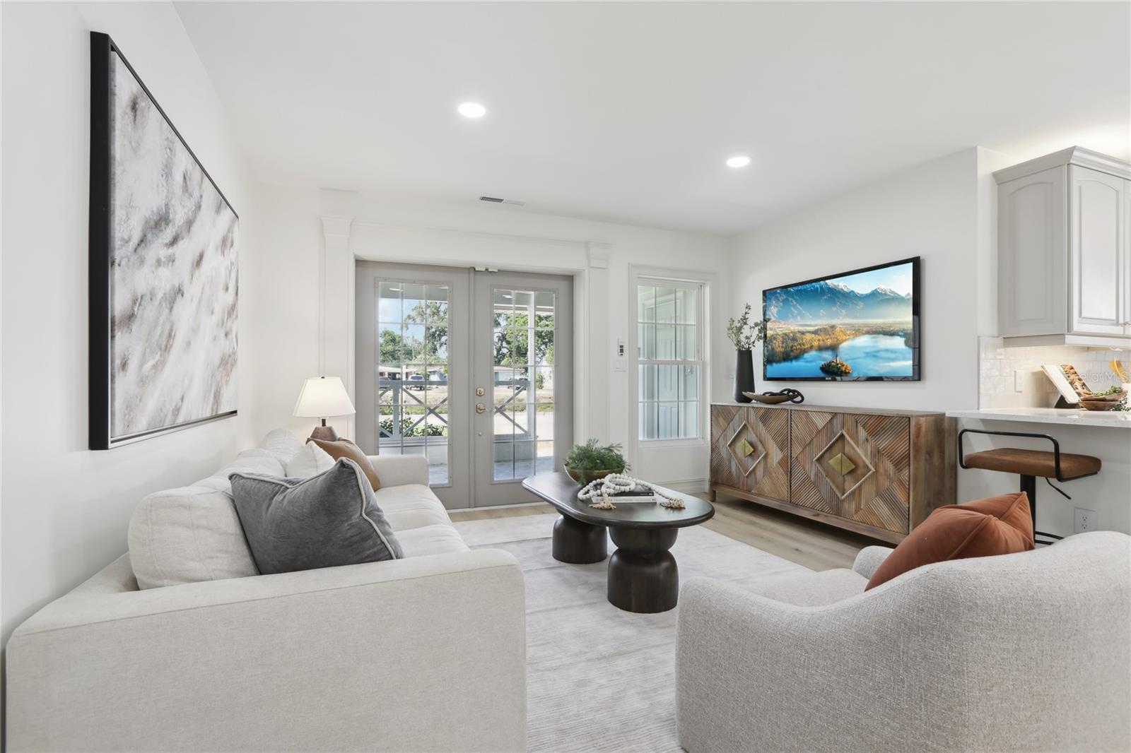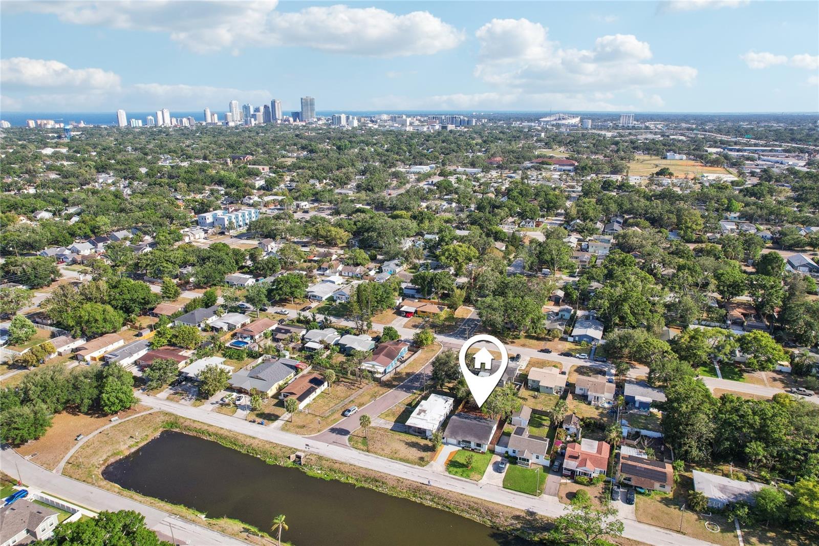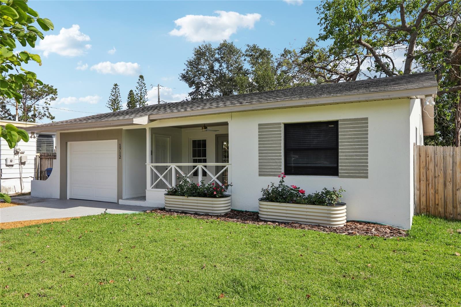 Welcome to this beautifully updated home nestled in the highly sought-after Lake Euclid neighborhood of St. Petersburg—where no expense was spared in this full renovation. Situated high and dry outside of a flood zone, this 2-bedroom, 1-bathroom home offers a perfect blend of timeless style and thoughtful upgrades. A brand-new roof, new AC handler, and new tankless water heater ensure peace of mind for years to come. From the moment you arrive, the inviting curb appeal draws you in with a covered front porch, complete with a ceiling fan and elegant flooring—setting the tone for the warmth and character found inside. Double front doors lead you into a sun-drenched open-concept living space finished with level 5 smooth walls, new luxury vinyl plank flooring, recessed lighting, and graceful archways that nod to the home’s classic roots. The fully renovated kitchen is a true focal point, boasting stunning quartz countertops, all-new stainless steel appliances including a gas range, and barstool seating. Custom cabinetry provides ample storage, making this a dream space for any home chef. Both bedrooms are generously sized, offering peaceful retreats, while the remodeled bathroom stands out with its eye-catching checkered tile flooring, dual sink vanity, and sleek modern finishes. Step outside through french doors to your private, fully fenced backyard—a tranquil space perfect for hosting, gardening, or simply enjoying a quiet Florida afternoon. Just minutes from downtown St. Pete, I-275, the historic Sunken Gardens, golf at the Vinoy, trendy dining, and award-winning beaches—this home delivers on location, lifestyle, and comfort. Don't miss your opportunity to own this Lake Euclid gem. Schedule your private showing today!