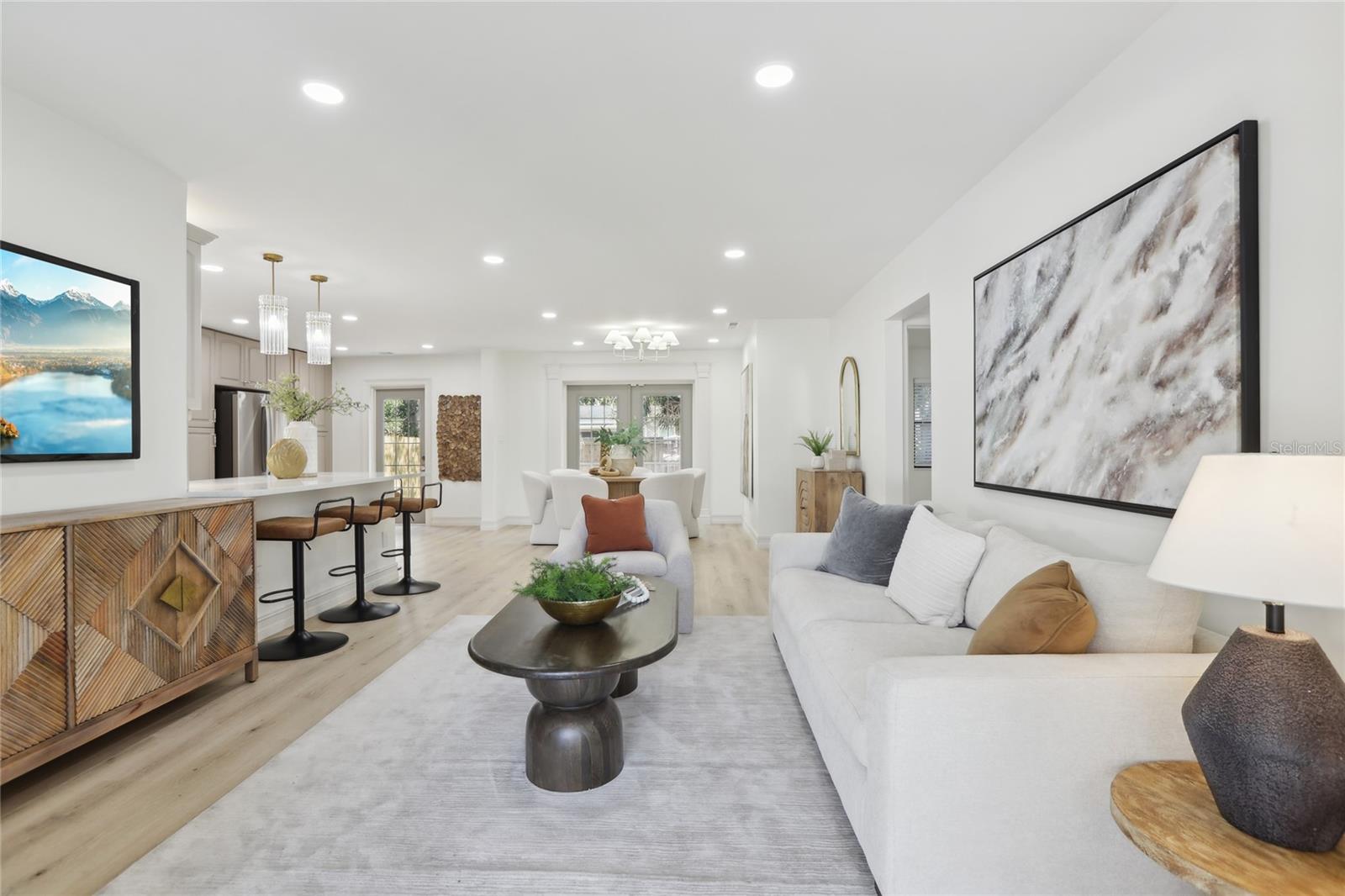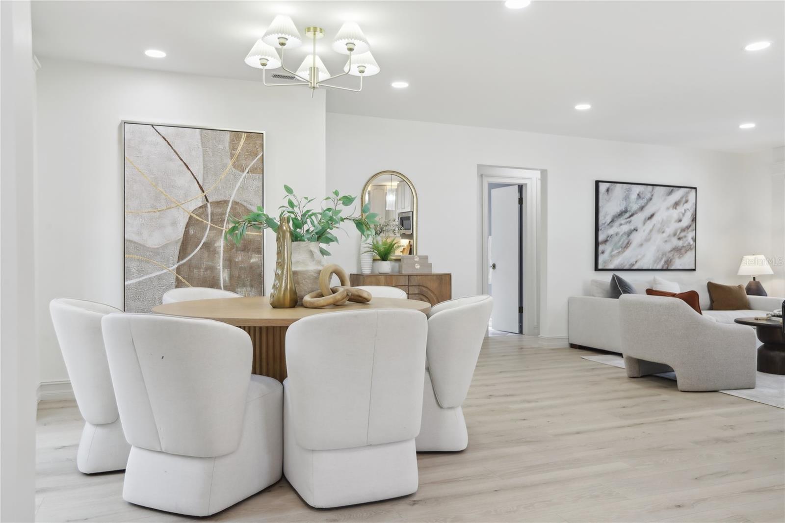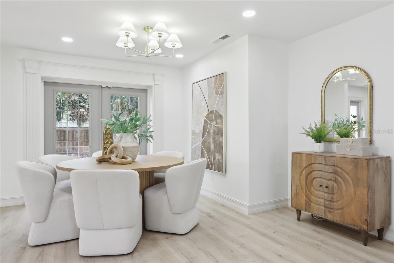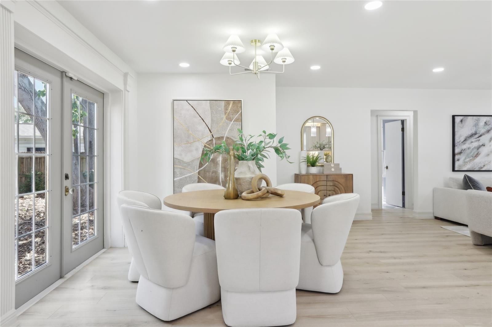 Welcome to this beautifully updated home nestled in the highly sought-after Lake Euclid neighborhood of St. Petersburg—where no expense was spared in this full renovation. Situated high and dry outside of a flood zone, this 2-bedroom, 1-bathroom home offers a perfect blend of timeless style and thoughtful upgrades. A brand-new roof, new AC handler, and new tankless water heater ensure peace of mind for years to come. From the moment you arrive, the inviting curb appeal draws you in with a covered front porch, complete with a ceiling fan and elegant flooring—setting the tone for the warmth and character found inside. Double front doors lead you into a sun-drenched open-concept living space finished with level 5 smooth walls, new luxury vinyl plank flooring, recessed lighting, and graceful archways that nod to the home’s classic roots. The fully renovated kitchen is a true focal point, boasting stunning quartz countertops, all-new stainless steel appliances including a gas range, and barstool seating. Custom cabinetry provides ample storage, making this a dream space for any home chef. Both bedrooms are generously sized, offering peaceful retreats, while the remodeled bathroom stands out with its eye-catching checkered tile flooring, dual sink vanity, and sleek modern finishes. Step outside through french doors to your private, fully fenced backyard—a tranquil space perfect for hosting, gardening, or simply enjoying a quiet Florida afternoon. Just minutes from downtown St. Pete, I-275, the historic Sunken Gardens, golf at the Vinoy, trendy dining, and award-winning beaches—this home delivers on location, lifestyle, and comfort. Don't miss your opportunity to own this Lake Euclid gem. Schedule your private showing today!