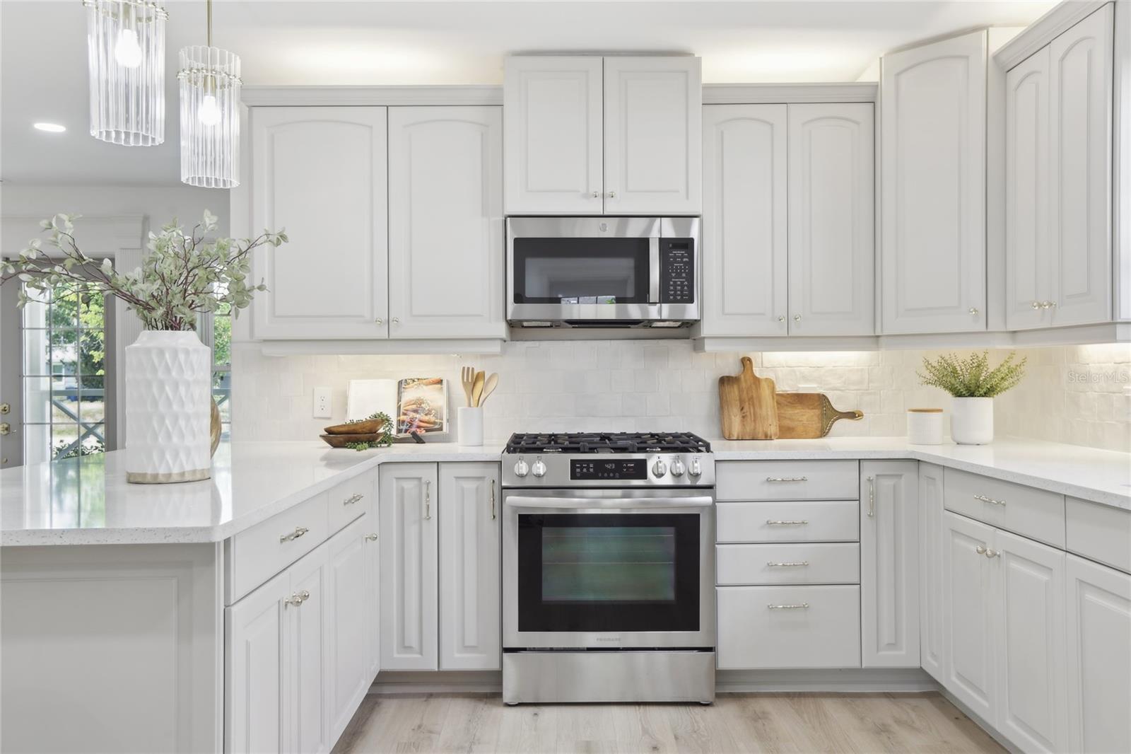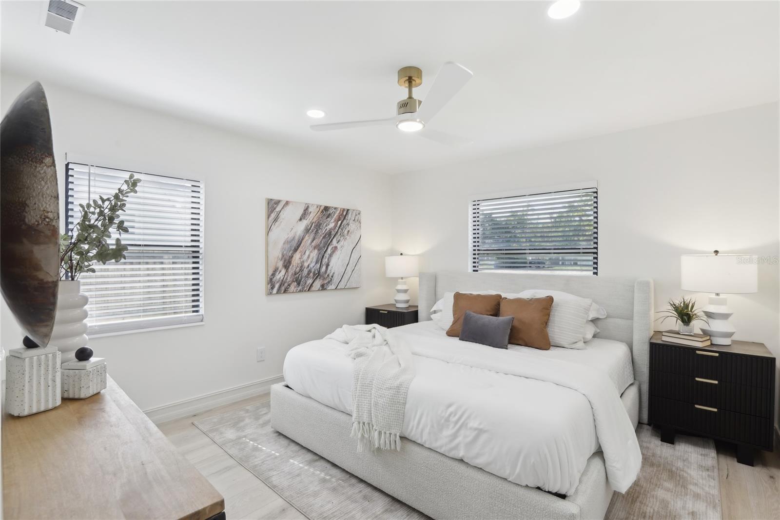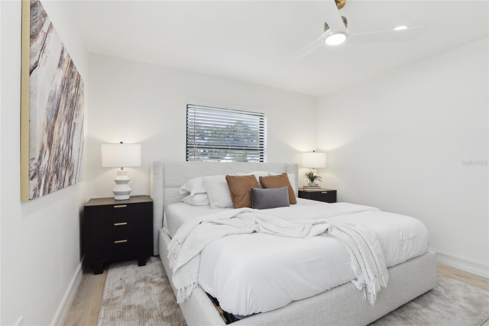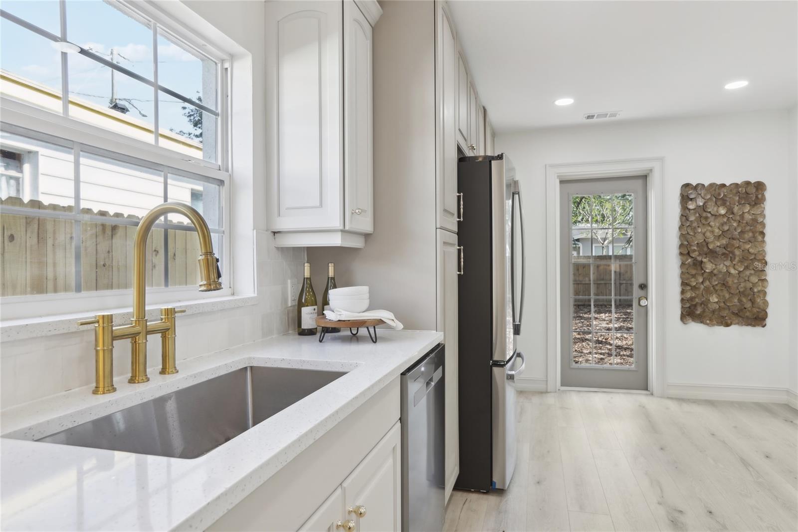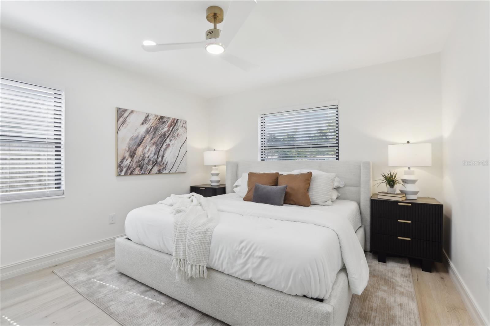 Welcome to this beautifully updated home nestled in the highly sought-after Lake Euclid neighborhood of St. Petersburg—where no expense was spared in this full renovation. Situated high and dry outside of a flood zone, this 2-bedroom, 1-bathroom home offers a perfect blend of timeless style and thoughtful upgrades. A brand-new roof, new AC handler, and new tankless water heater ensure peace of mind for years to come. From the moment you arrive, the inviting curb appeal draws you in with a covered front porch, complete with a ceiling fan and elegant flooring—setting the tone for the warmth and character found inside. Double front doors lead you into a sun-drenched open-concept living space finished with level 5 smooth walls, new luxury vinyl plank flooring, recessed lighting, and graceful archways that nod to the home’s classic roots. The fully renovated kitchen is a true focal point, boasting stunning quartz countertops, all-new stainless steel appliances including a gas range, and barstool seating. Custom cabinetry provides ample storage, making this a dream space for any home chef. Both bedrooms are generously sized, offering peaceful retreats, while the remodeled bathroom stands out with its eye-catching checkered tile flooring, dual sink vanity, and sleek modern finishes. Step outside through french doors to your private, fully fenced backyard—a tranquil space perfect for hosting, gardening, or simply enjoying a quiet Florida afternoon. Just minutes from downtown St. Pete, I-275, the historic Sunken Gardens, golf at the Vinoy, trendy dining, and award-winning beaches—this home delivers on location, lifestyle, and comfort. Don't miss your opportunity to own this Lake Euclid gem. Schedule your private showing today!