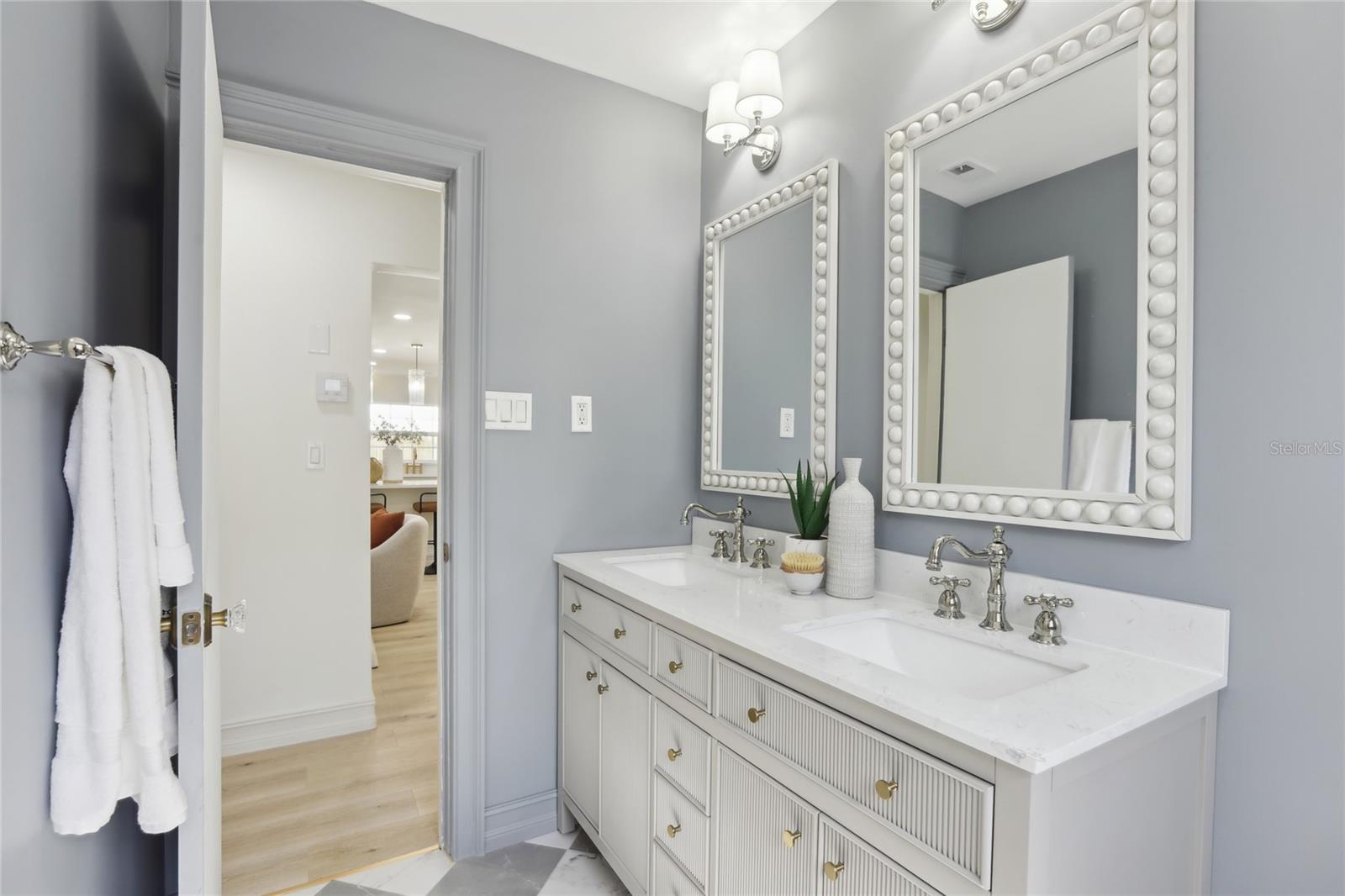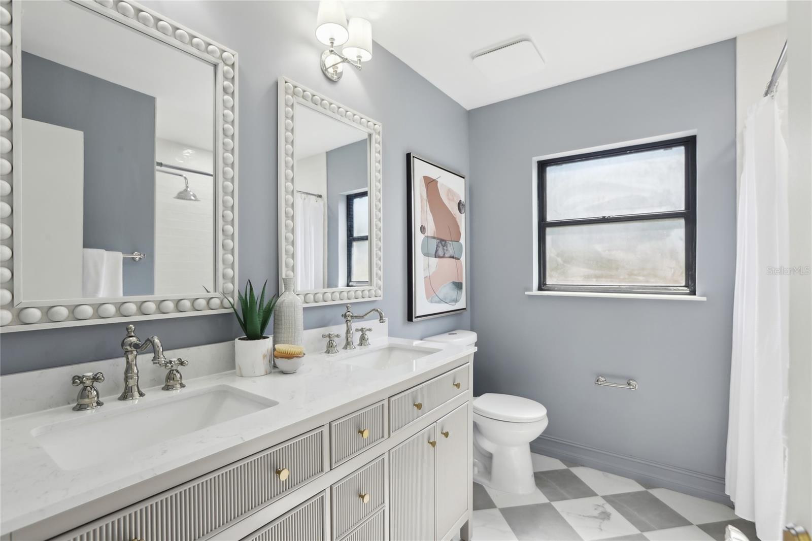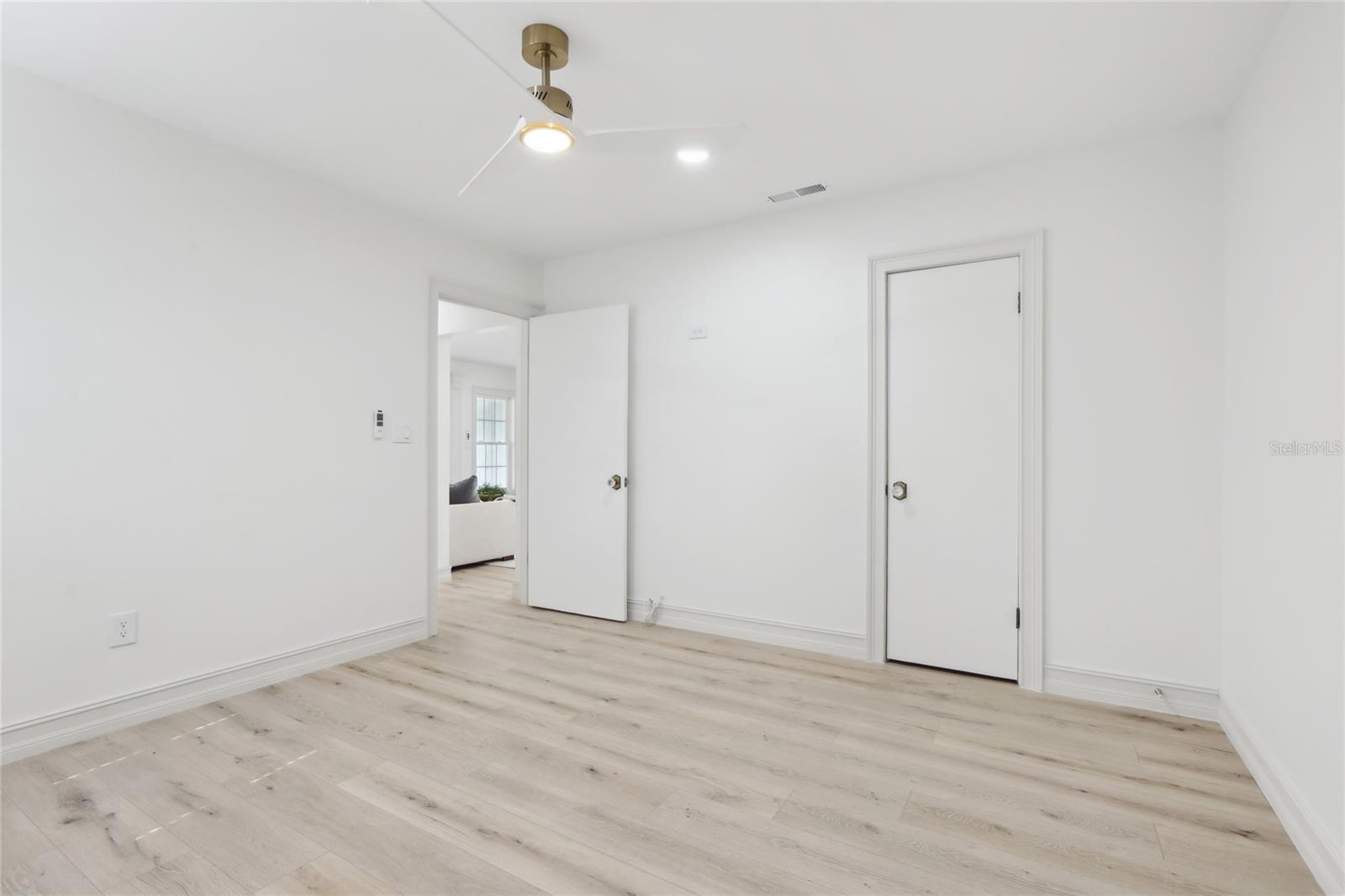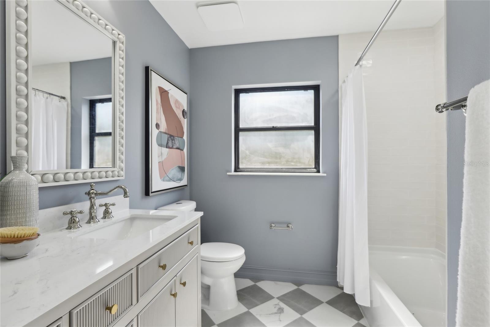 Welcome to this beautifully updated home nestled in the highly sought-after Lake Euclid neighborhood of St. Petersburg—where no expense was spared in this full renovation. Situated high and dry outside of a flood zone, this 2-bedroom, 1-bathroom home offers a perfect blend of timeless style and thoughtful upgrades. A brand-new roof, new AC handler, and new tankless water heater ensure peace of mind for years to come. From the moment you arrive, the inviting curb appeal draws you in with a covered front porch, complete with a ceiling fan and elegant flooring—setting the tone for the warmth and character found inside. Double front doors lead you into a sun-drenched open-concept living space finished with level 5 smooth walls, new luxury vinyl plank flooring, recessed lighting, and graceful archways that nod to the home’s classic roots. The fully renovated kitchen is a true focal point, boasting stunning quartz countertops, all-new stainless steel appliances including a gas range, and barstool seating. Custom cabinetry provides ample storage, making this a dream space for any home chef. Both bedrooms are generously sized, offering peaceful retreats, while the remodeled bathroom stands out with its eye-catching checkered tile flooring, dual sink vanity, and sleek modern finishes. Step outside through french doors to your private, fully fenced backyard—a tranquil space perfect for hosting, gardening, or simply enjoying a quiet Florida afternoon. Just minutes from downtown St. Pete, I-275, the historic Sunken Gardens, golf at the Vinoy, trendy dining, and award-winning beaches—this home delivers on location, lifestyle, and comfort. Don't miss your opportunity to own this Lake Euclid gem. Schedule your private showing today!