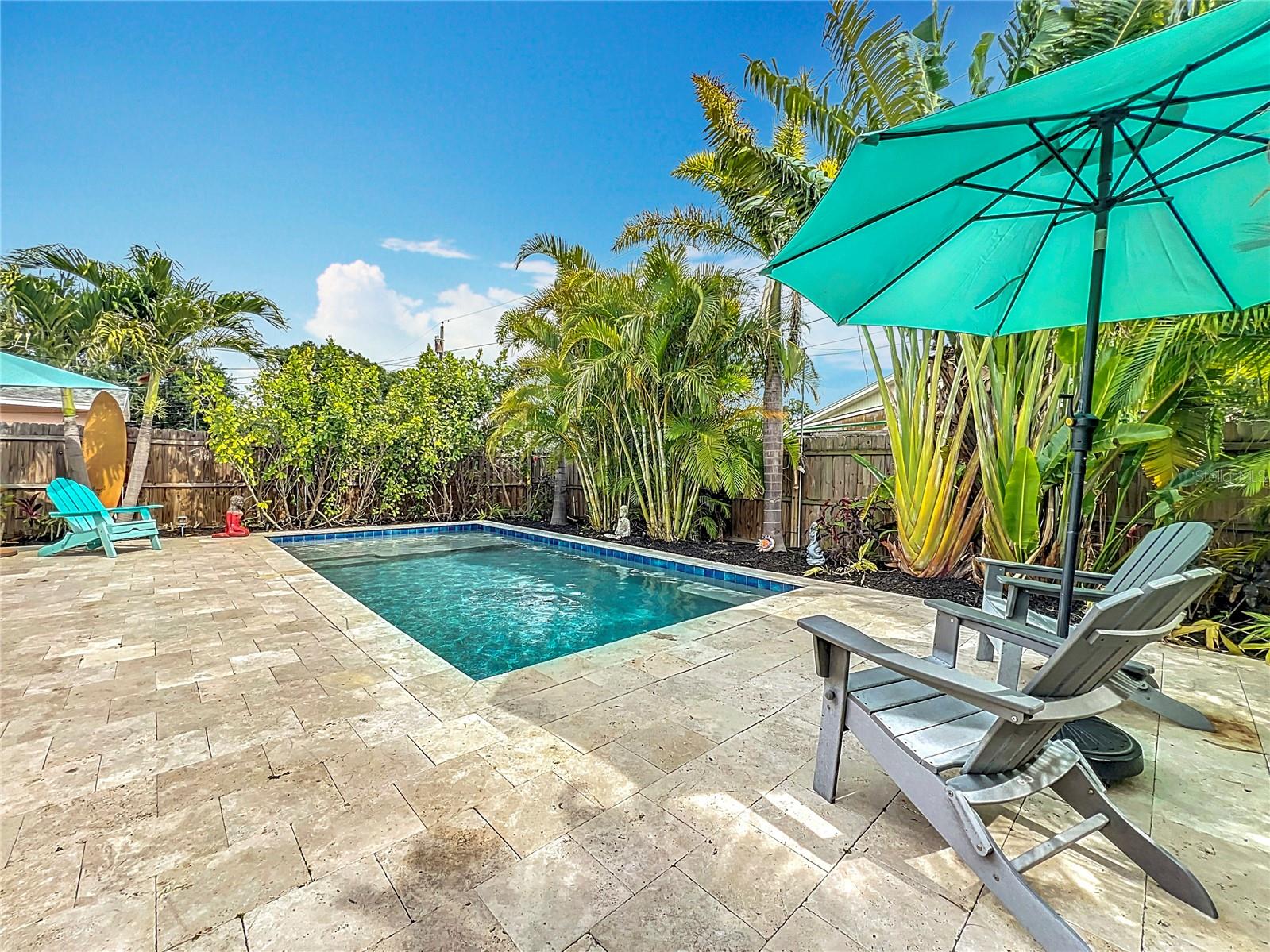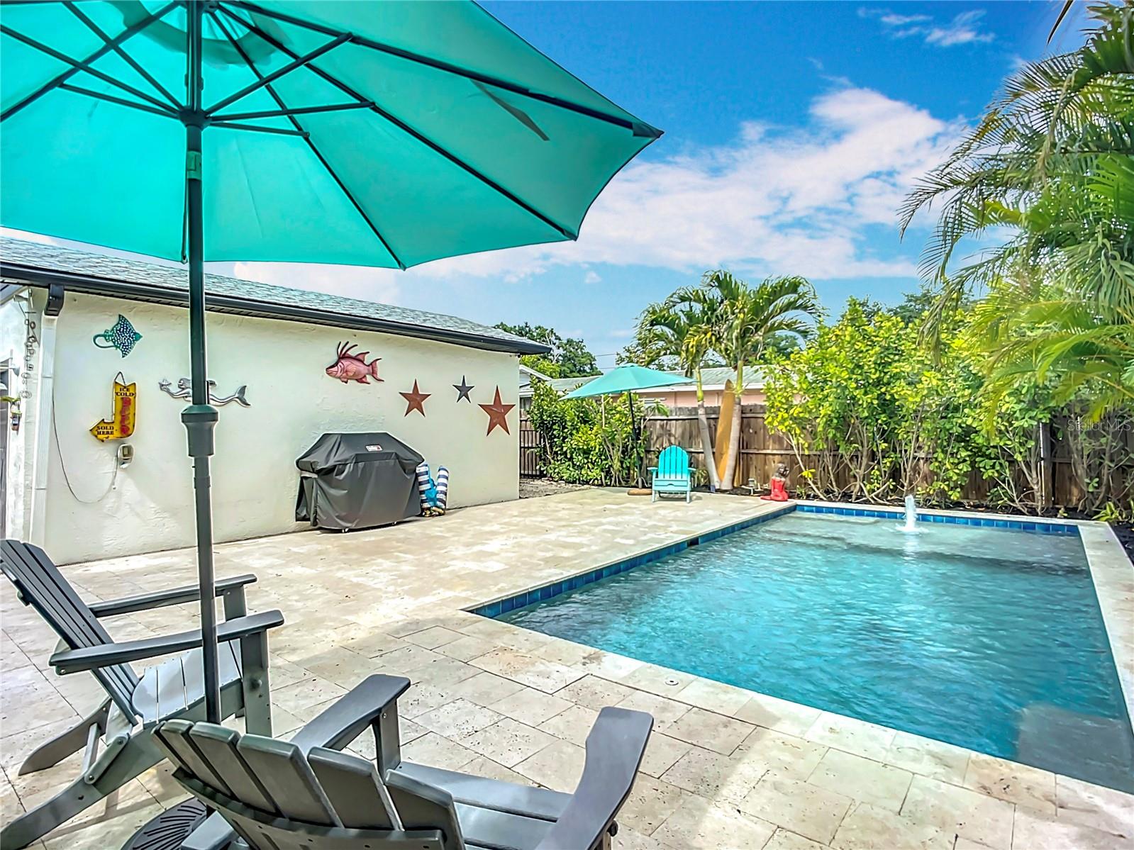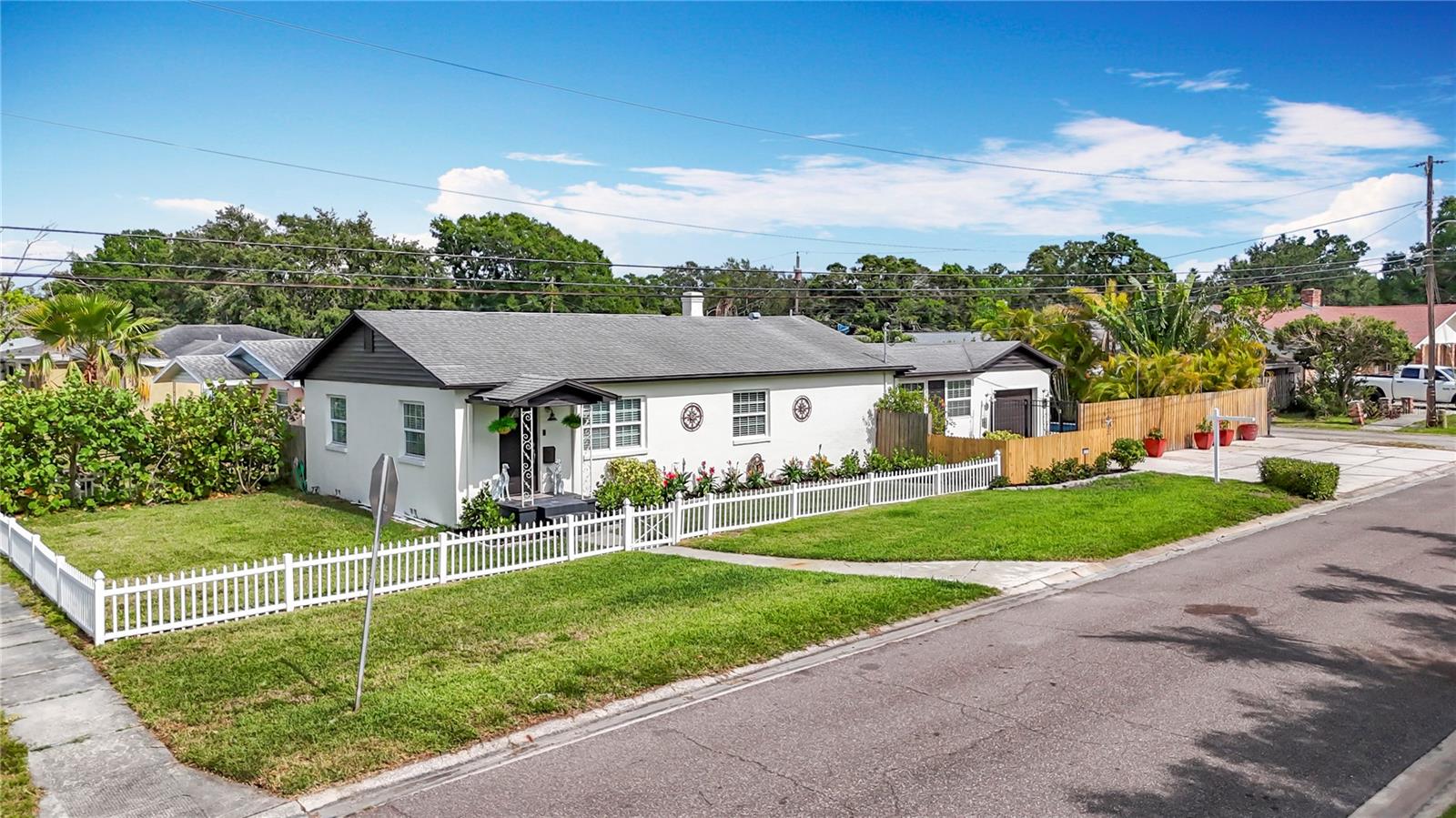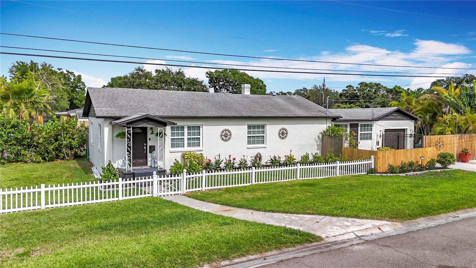 - Stylish Mid-Century Pool Home in Prime St. Pete Location! Don't miss this fantastic opportunity to own a beautifully updated 3-bedroom private heated saltwater pool home that perfectly captures the charm and energy of St. Petersburg living! Nestled on a quiet street just steps from popular 4th Street N dining and minutes to vibrant Downtown, this home offers the ideal blend of mid-century character, modern upgrades, and unbeatable convenience. Interior Highlights: Refinished and whitewashed original hardwood floors New luxury vinyl plank flooring in the kitchen and family room Stunning updated kitchen with an oversized quartz island—perfect for entertaining and everyday cooking New crown molding and upgraded 7¼-inch baseboards throughout All-new recessed lighting in main living areas, plus modern ceiling fans and light fixtures Smart Home features: All main house lighting is WiFi-enabled—control ambiance, brightness, and schedules right from your smartphone or voice assistant Outdoor Oasis Heated saltwater pool with WiFi-enabled controls for temperature, lighting, and features—manage it all re Lush, tropical landscaping creates a private backyard retreat ideal for relaxing or entertaining Expansive corner lot with a fully fenced front yard Garage with spacious storage loft Oversized parking pad—bring extra vehicles! NO HOA and no flood insurance required! This one-of-a-kind property blends timeless style with high-tech comfort, all in one of St. Pete’s most sought-after locations. Whether you're enjoying a tranquil evening by the pool or hosting a lively dinner party, this home is designed for modern Florida living. Agent is related to seller.