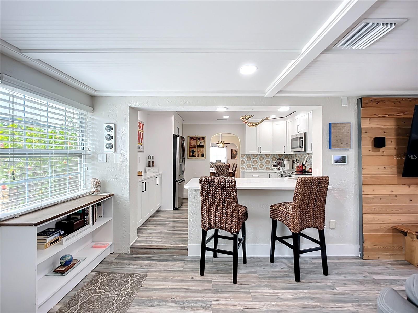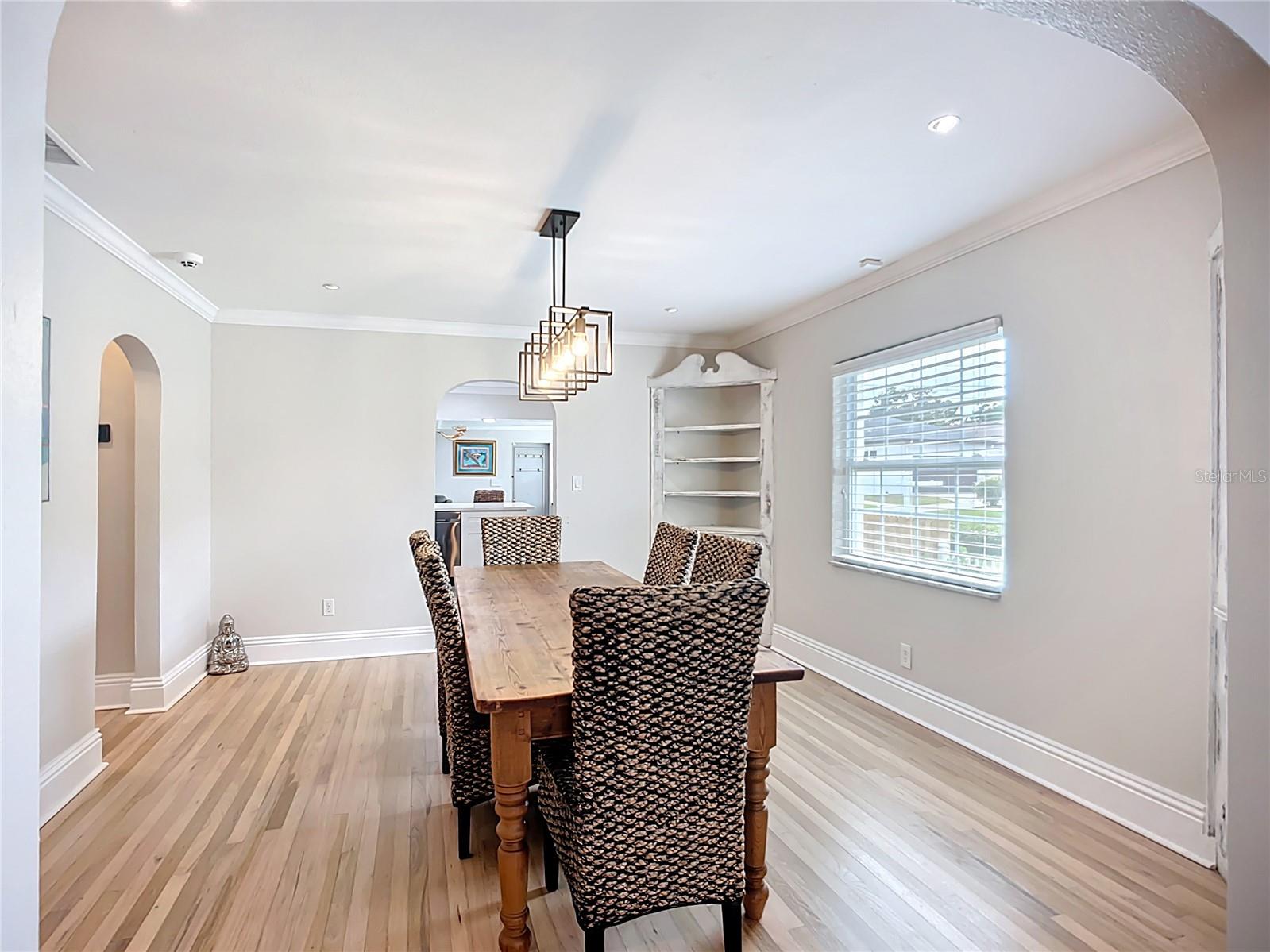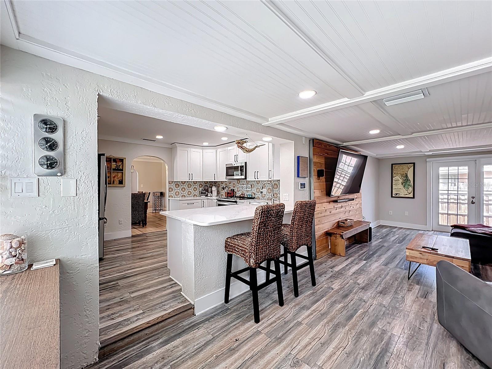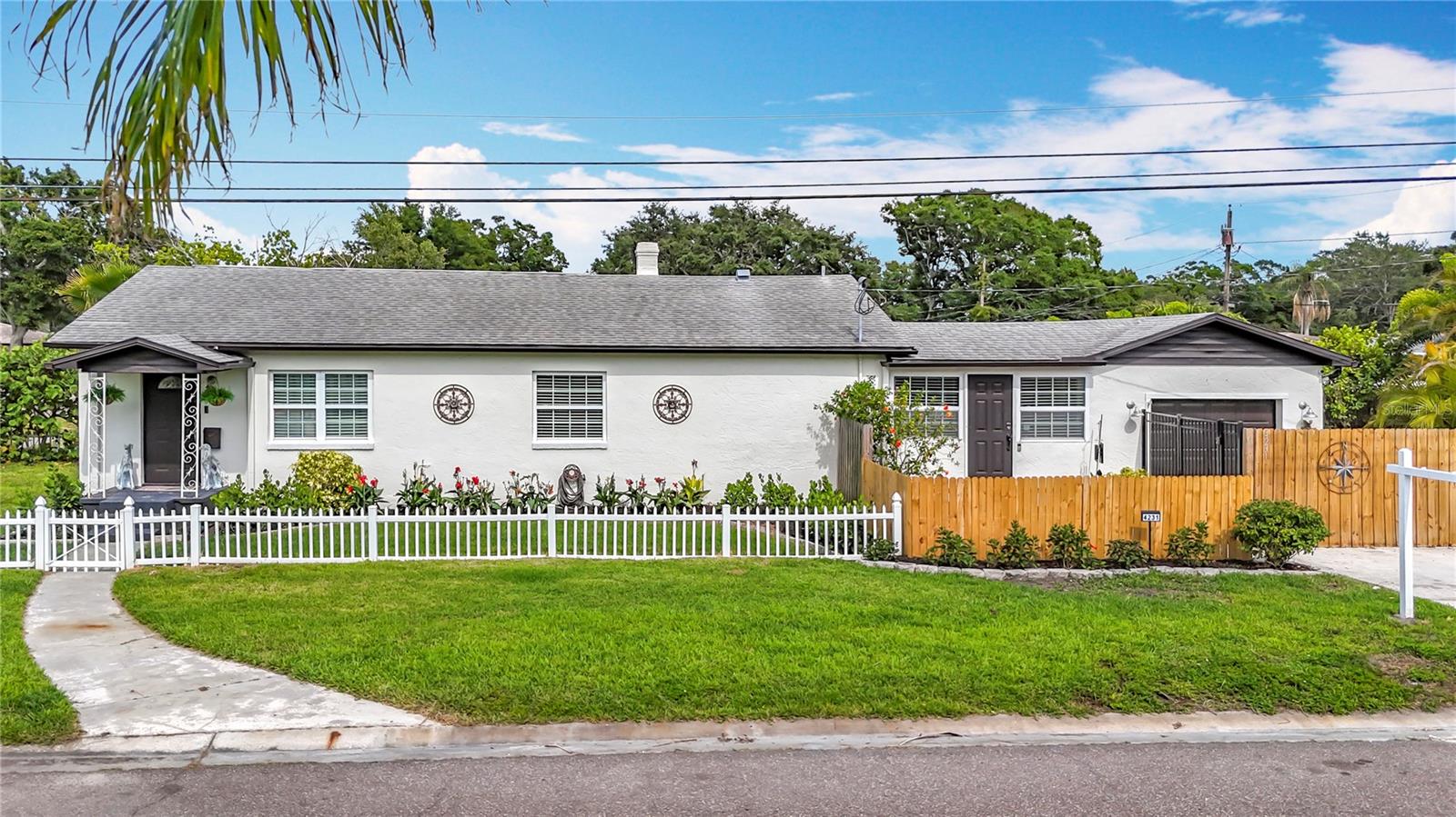 - Stylish Mid-Century Pool Home in Prime St. Pete Location! Don't miss this fantastic opportunity to own a beautifully updated 3-bedroom private heated saltwater pool home that perfectly captures the charm and energy of St. Petersburg living! Nestled on a quiet street just steps from popular 4th Street N dining and minutes to vibrant Downtown, this home offers the ideal blend of mid-century character, modern upgrades, and unbeatable convenience. Interior Highlights: Refinished and whitewashed original hardwood floors New luxury vinyl plank flooring in the kitchen and family room Stunning updated kitchen with an oversized quartz island—perfect for entertaining and everyday cooking New crown molding and upgraded 7¼-inch baseboards throughout All-new recessed lighting in main living areas, plus modern ceiling fans and light fixtures Smart Home features: All main house lighting is WiFi-enabled—control ambiance, brightness, and schedules right from your smartphone or voice assistant Outdoor Oasis Heated saltwater pool with WiFi-enabled controls for temperature, lighting, and features—manage it all re Lush, tropical landscaping creates a private backyard retreat ideal for relaxing or entertaining Expansive corner lot with a fully fenced front yard Garage with spacious storage loft Oversized parking pad—bring extra vehicles! NO HOA and no flood insurance required! This one-of-a-kind property blends timeless style with high-tech comfort, all in one of St. Pete’s most sought-after locations. Whether you're enjoying a tranquil evening by the pool or hosting a lively dinner party, this home is designed for modern Florida living. Agent is related to seller.