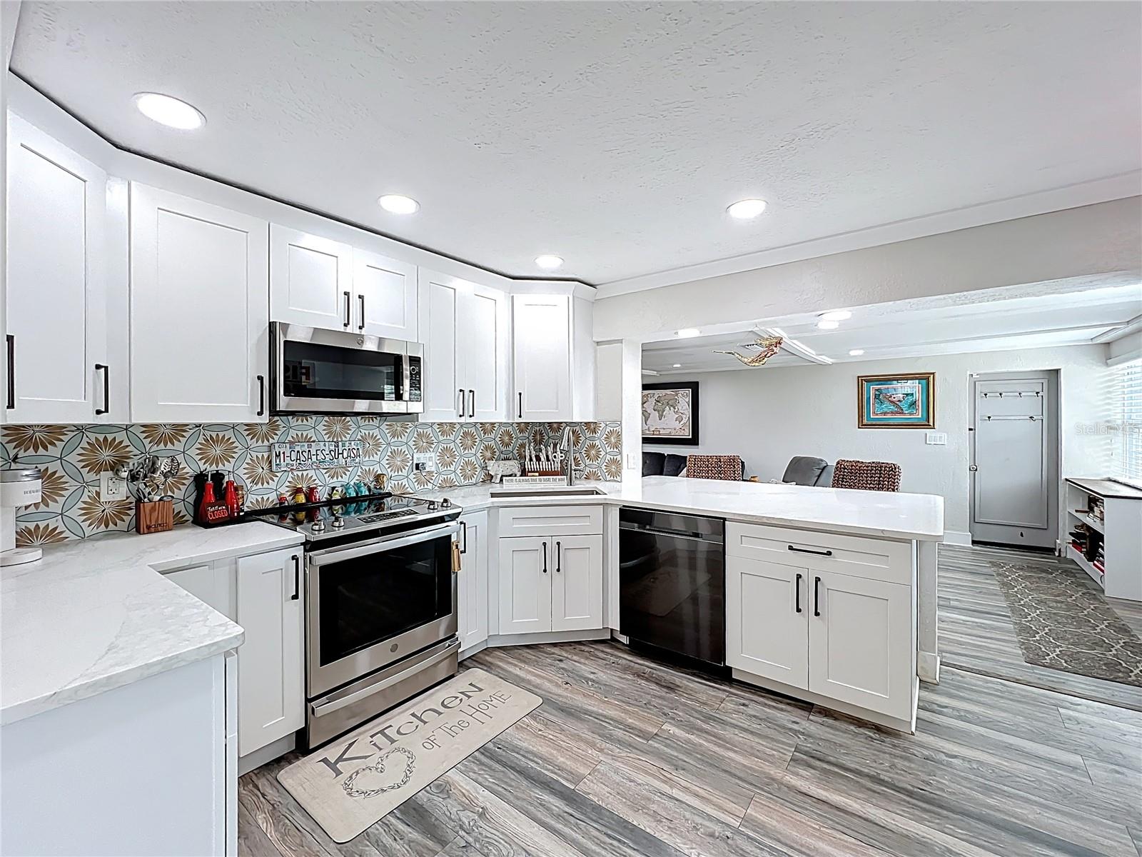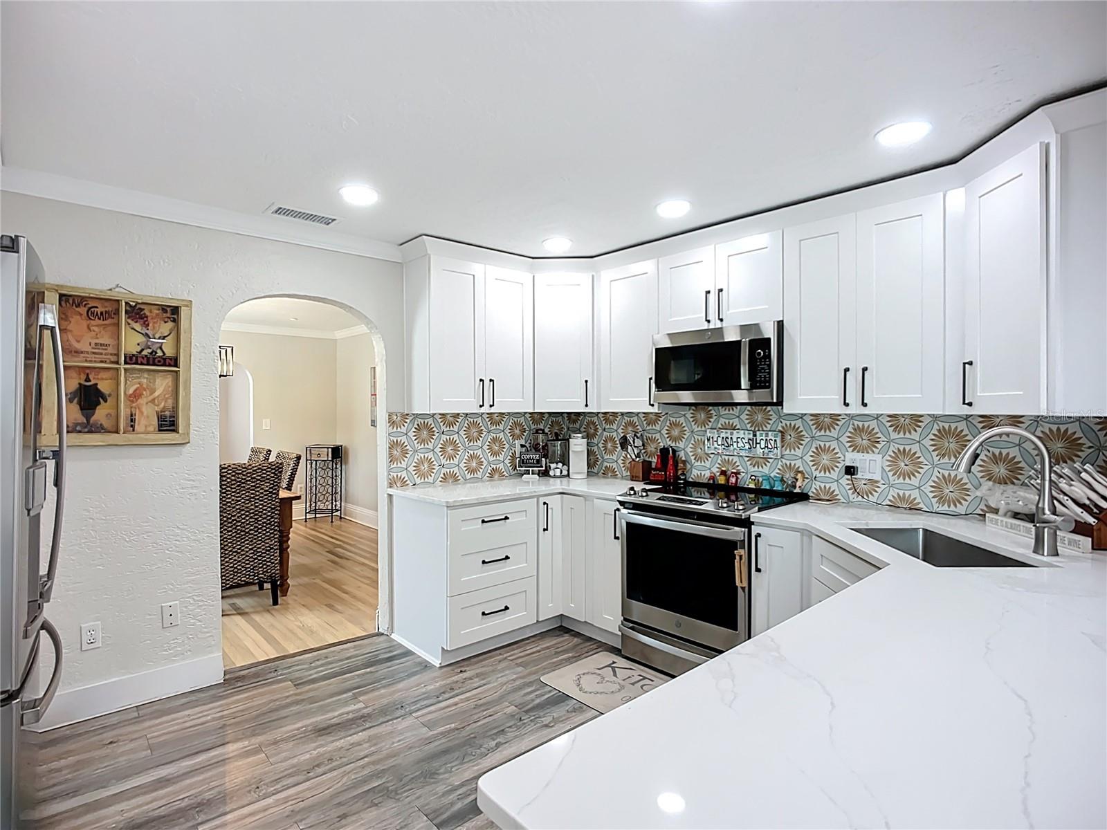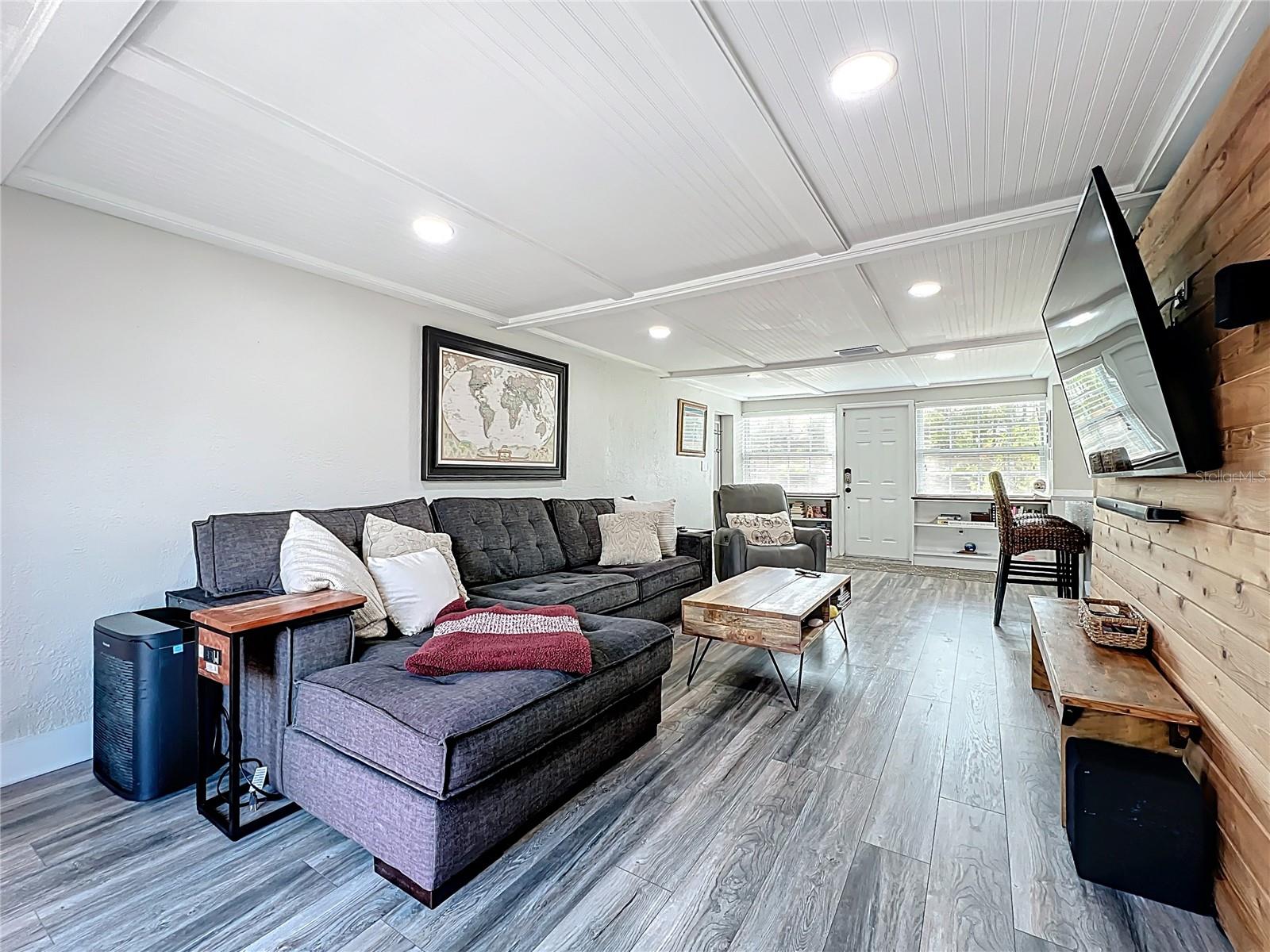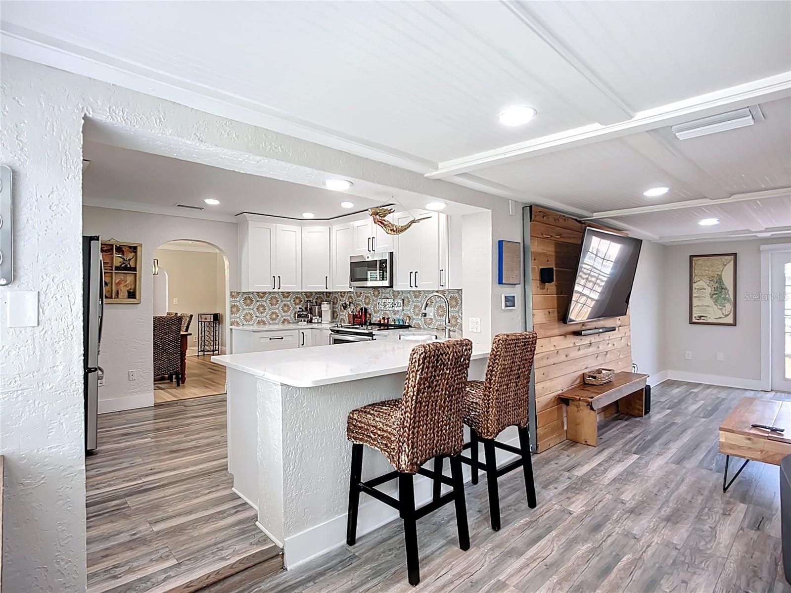 - Stylish Mid-Century Pool Home in Prime St. Pete Location! Don't miss this fantastic opportunity to own a beautifully updated 3-bedroom private heated saltwater pool home that perfectly captures the charm and energy of St. Petersburg living! Nestled on a quiet street just steps from popular 4th Street N dining and minutes to vibrant Downtown, this home offers the ideal blend of mid-century character, modern upgrades, and unbeatable convenience. Interior Highlights: Refinished and whitewashed original hardwood floors New luxury vinyl plank flooring in the kitchen and family room Stunning updated kitchen with an oversized quartz island—perfect for entertaining and everyday cooking New crown molding and upgraded 7¼-inch baseboards throughout All-new recessed lighting in main living areas, plus modern ceiling fans and light fixtures Smart Home features: All main house lighting is WiFi-enabled—control ambiance, brightness, and schedules right from your smartphone or voice assistant Outdoor Oasis Heated saltwater pool with WiFi-enabled controls for temperature, lighting, and features—manage it all re Lush, tropical landscaping creates a private backyard retreat ideal for relaxing or entertaining Expansive corner lot with a fully fenced front yard Garage with spacious storage loft Oversized parking pad—bring extra vehicles! NO HOA and no flood insurance required! This one-of-a-kind property blends timeless style with high-tech comfort, all in one of St. Pete’s most sought-after locations. Whether you're enjoying a tranquil evening by the pool or hosting a lively dinner party, this home is designed for modern Florida living. Agent is related to seller.