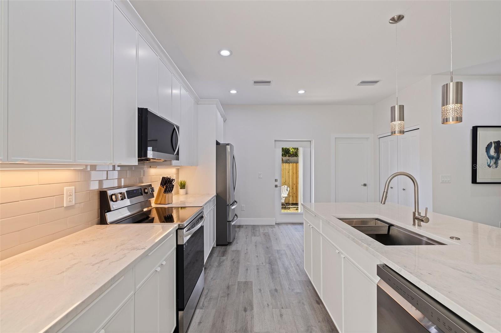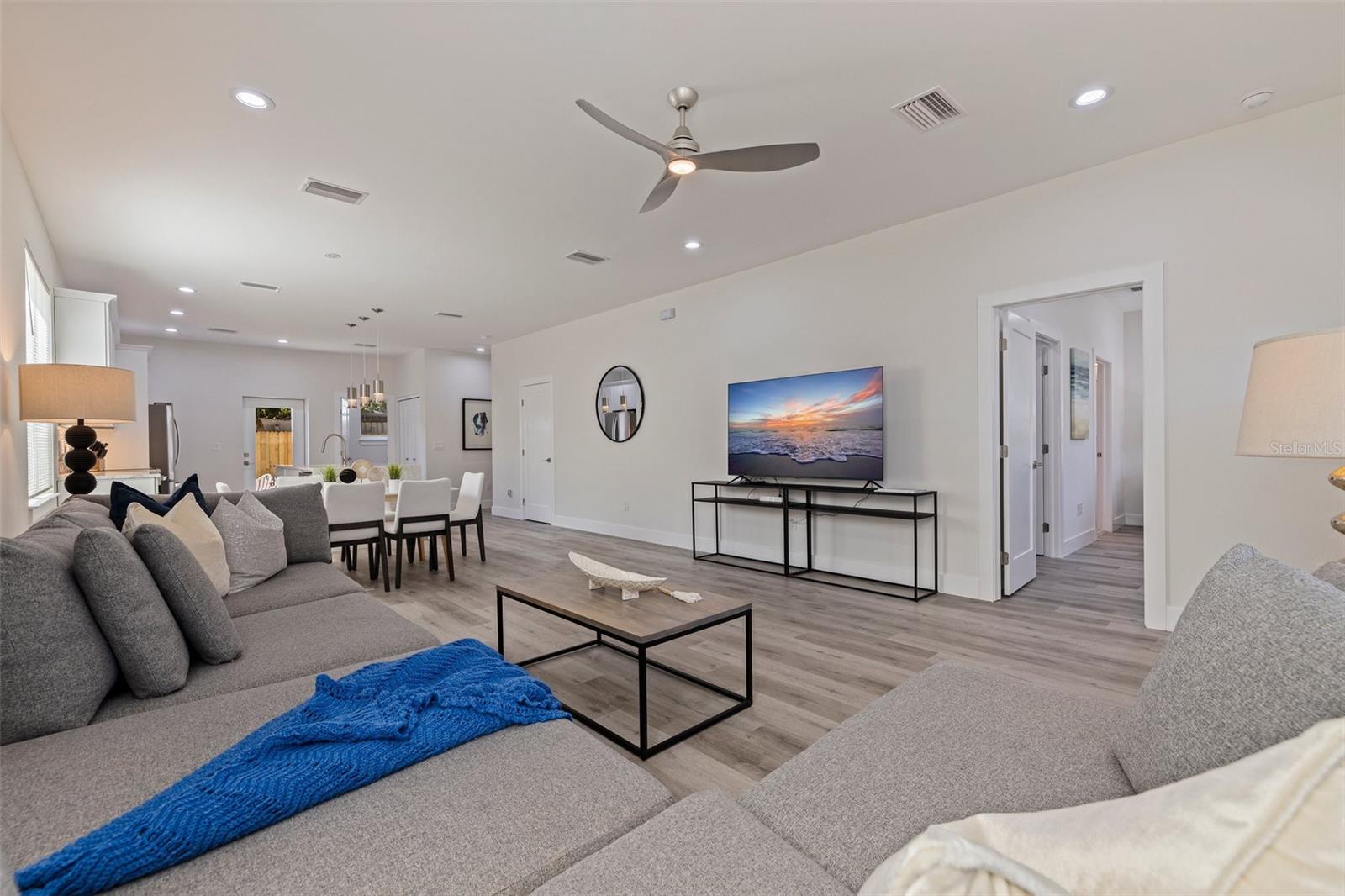 NEW CONSTRUCTION ENERGY-EFFICIENT BUNGALOW IN PRIME ST. PETE Welcome to 2150 43rd Terrace N—a newly constructed, energy-efficient bungalow offering contemporary design and exceptional value in Flood Zone X, where no flood insurance is required. This 3-bedroom, 2-bathroom home spans 1,778 square feet and is thoughtfully designed for modern living. Step inside to an open-concept layout filled with natural light, featuring high ceilings and luxury vinyl plank flooring throughout. The gourmet kitchen is equipped with 42-inch cabinets, granite countertops, Energy Star appliances, and a spacious pantry, seamlessly connecting to the dining and living areas—ideal for entertaining. The expansive primary suite serves as a private retreat, complete with a large walk-in closet and a spa-inspired bathroom featuring a double vanity and an oversized walk-in shower. Additional highlights include impact-rated Low-E vinyl windows and doors, a 16 SEER high-efficiency HVAC system, programmable thermostat, LED lighting, and R38 attic insulation, ensuring comfort and lower energy bills. Enjoy the convenience of an interior laundry room and ample storage throughout. The backyard offers just the right amount of space for weekend barbecues or relaxing in the Florida sunshine without the hassle of extensive yard maintenance. Located just two minutes from I-275 and only two miles from vibrant downtown St. Petersburg, you're never far from shopping, dining, or the beach. Kiwanis Park is also nearby, offering playgrounds, courts, and green space for outdoor fun. This is your opportunity to own a move-in ready new construction home with modern efficiency in one of the area’s most convenient locations.