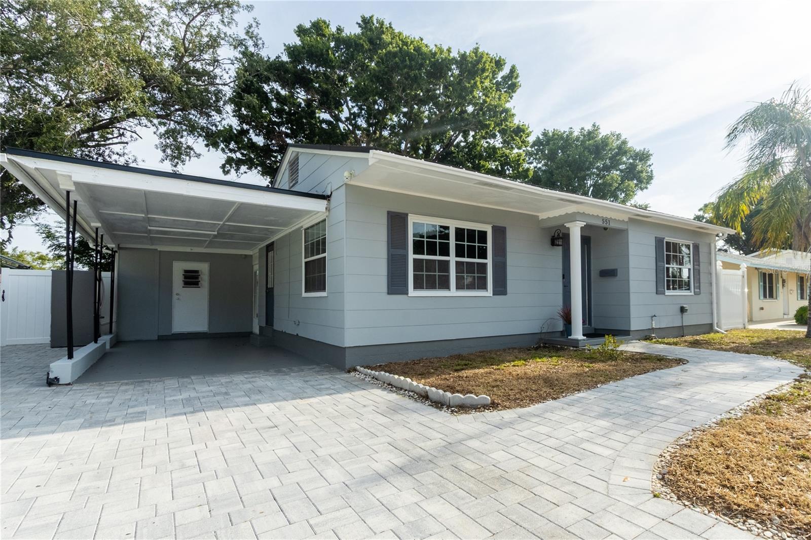 Price Improvement!! This home just received a professional appraisal and is now priced under appraised value!! Where can you find an updated, move-in ready home under $300K in St. Pete? Right here—don't miss this fantastic opportunity!!! Welcome to 551 84th Avenue North in the vibrant city of St. Petersburg, FL! This inviting bungalow's is eagerly awaiting to become your new home sweet home. With a cozy 756 square feet, this charming abode offers comfort and style in a perfect package. With two cozy bedrooms and a beautifully remodeled bathroom, this home perfectly blends comfort and style. Step inside to a modern kitchen boasting sleek granite countertops, perfect for whipping up culinary masterpieces. The entire home underwent a stylish remodel in 2022, upgrading the flooring, kitchen, bathroom, electrical, and even adding spray insulation for extra comfort and affordability. A brand-new roof was just completed in 2025, ensuring peace of mind for the years ahead! Stay cool with the updated HVAC system and enjoy perfect temperatures year-round with both electric and central heating. Laminate floors add a touch of elegance, while ceiling fans keep the air flowing smoothly. Plus, a water filtration system ensures your H2O is always crisp and clean. Outside, your private oasis awaits with a new outdoor shower—ideal for cooling off after a day in the sun. The front and back yards offer ample space for gardening or play, while the backyard is perfect for barbecues with your outdoor grill or simply relaxing. With covered parking under the carport and street parking available, your car will have as much room as you do. Laundry day is a breeze with washer and dryer hookups inside and under the covered carport. The newly installed driveway pavers add a touch of flair and practical style to your home’s entrance. This bungalow is not just a place to live; it's the Florida lifestyle! Come see it and discover why this could be your perfect new home. Age of Mechanics is as follows: HVAC (2016) Full house Remodel (2022)-including Kitchen, Bathroom, Electrical, Fence, Driveway Pavers, Window Tint, Outdoor Shower, Outdoor Grill, Water Filtration System, Spray Insulation. Roof, Patio, Exterior paint (2025)