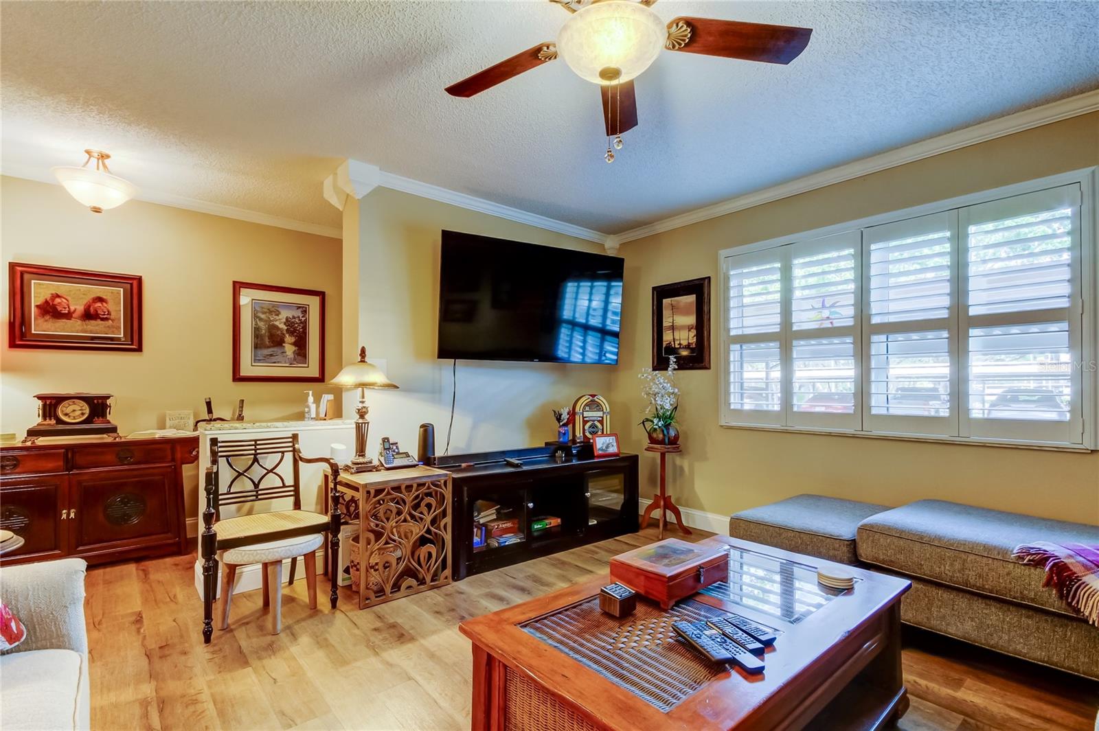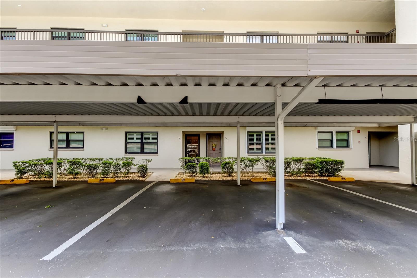 Don't miss out on the rare opportunity to own this ground-floor condominium situated in the highly sought-after Radcliffe building within the vibrant 55+ community of Five Towns. Spanning 1,440 square feet, this expansive 2-bedroom, 2-bath condo provides comfortable living and is beautifully updated, featuring newer durable luxury laminate flooring throughout. The chef's dream kitchen has been tastefully renovated, featuring a gas stove, new refrigerator, ample cabinetry and elegant granite countertops to prepare your meals in style. . The master bedroom includes an en suite bathroom for enhanced privacy, and both bathrooms have undergone tasteful renovations. Plantation shutters adorn the front windows, and the back windows are equipped roll-down hurricane shutters. The impressively spacious inside laundry room adds to the unit's convenience featuring a full size washer & dryer and loads of storage. The rear screened porch/lanai offers serene garden views. This unit provides the convenience of natural gas for cooking and hot water heating, covered by the condo fee, which also includes basic cable, internet, water, trash, and sewer. The Assigned covered carport parking (Space #21) is situated directly in front of the unit, adding to its appeal. The Radcliffe building's fifth-floor community observation deck is a standout feature, providing an ideal spot to relish breathtaking sunsets. Five Towns is not just a community; it's a lifestyle. With six heated pools, tennis courts, a bocce ball court, a clubhouse, and a fitness center, residents enjoy many amenities. Engage in planned events and enjoy spending time with neighbors who share your zest for life. The condo's prime location ensures easy access to shopping, dining, downtown St. Pete's cultural attractions, I-275 for seamless travel, and the world-class beaches that make Florida famous. Embrace the convenience and vibrant lifestyle that make this condo and Five Towns so special! Hurry, Schedule your appointment to view today.