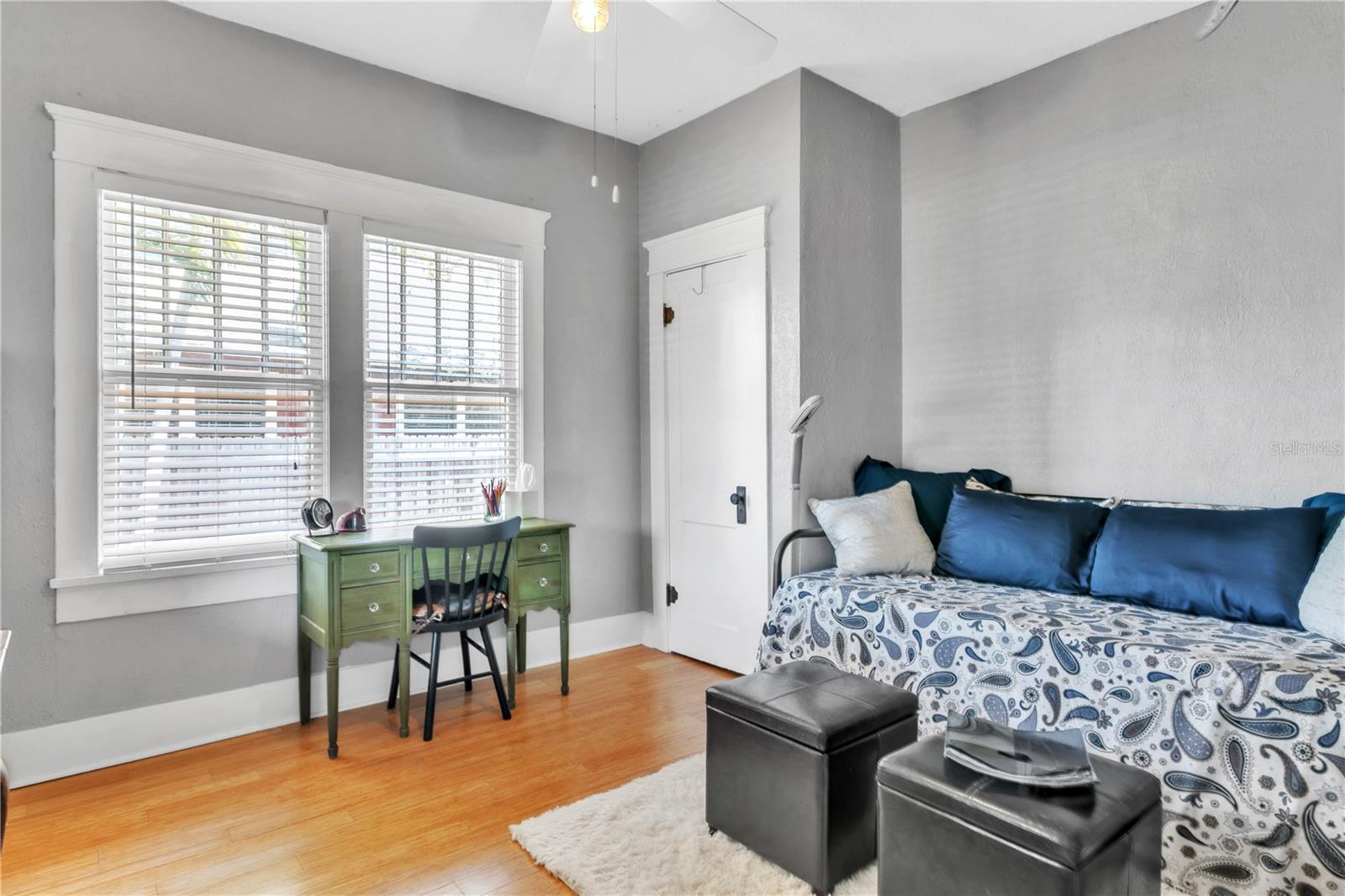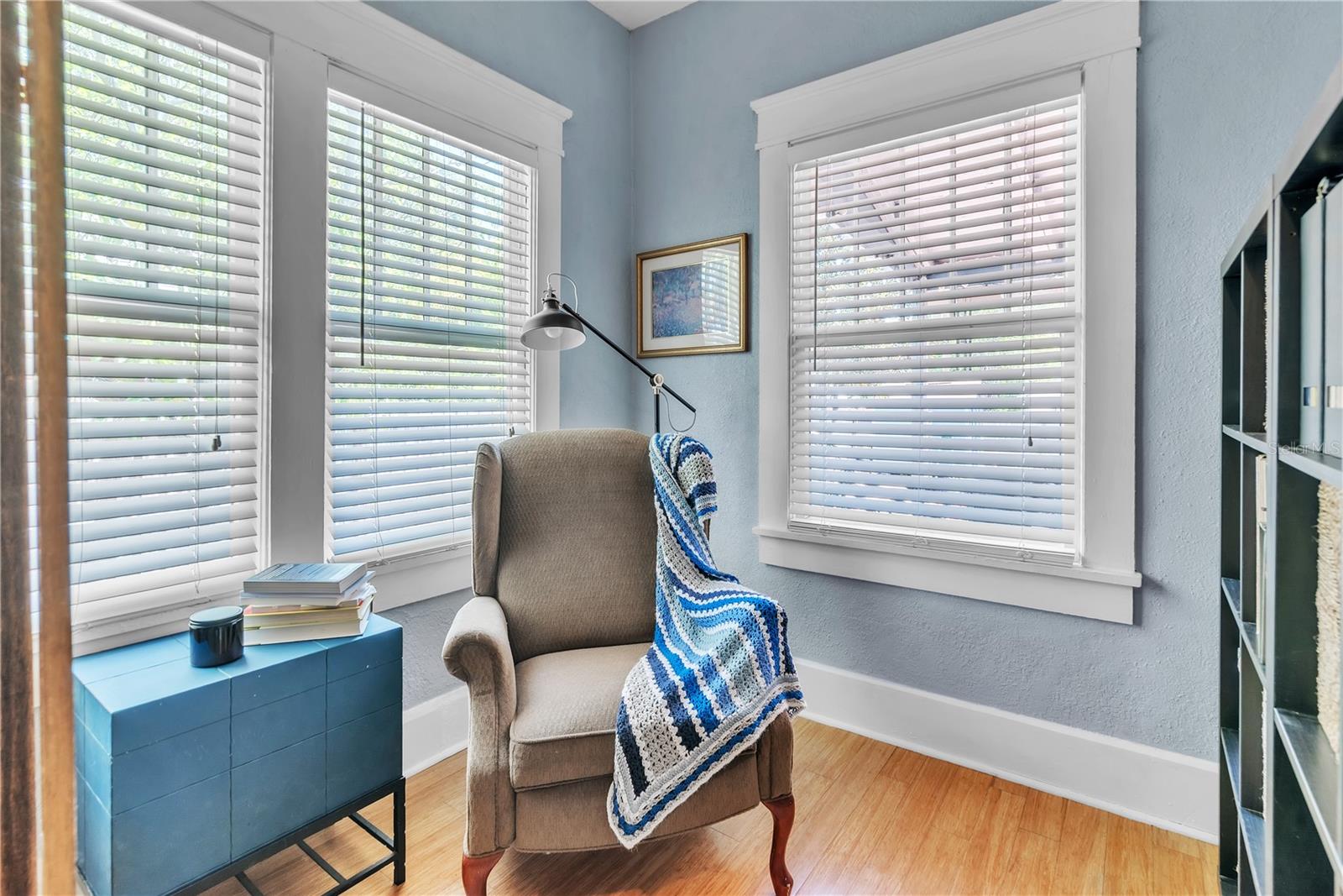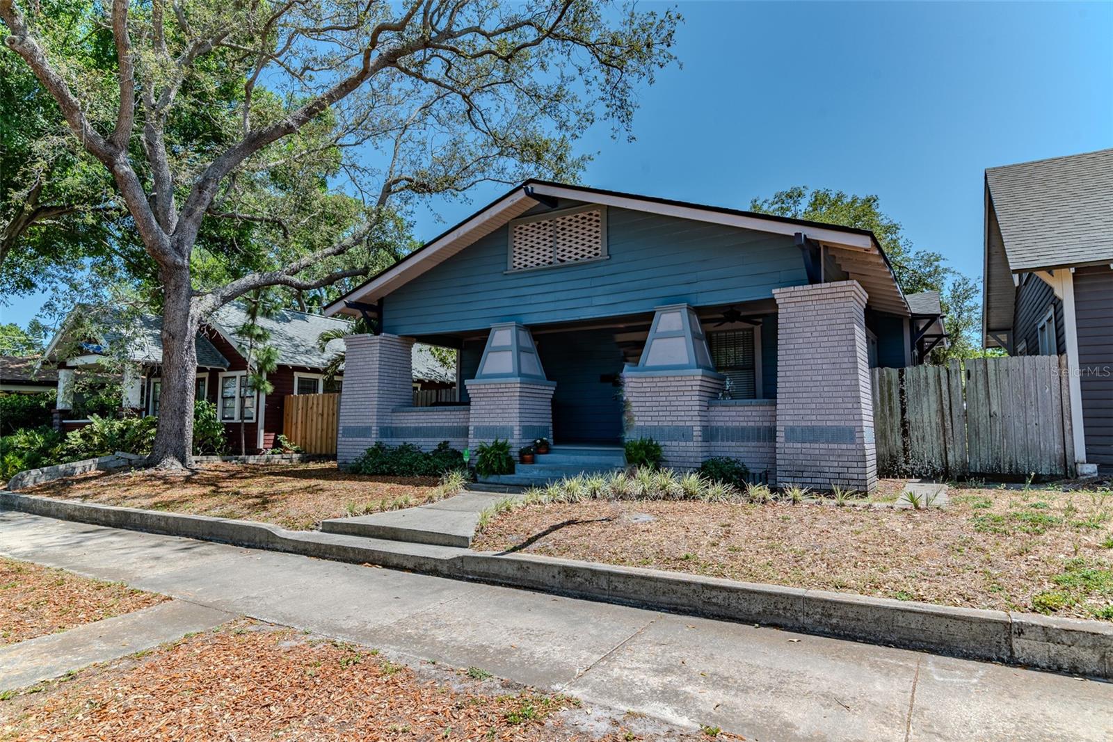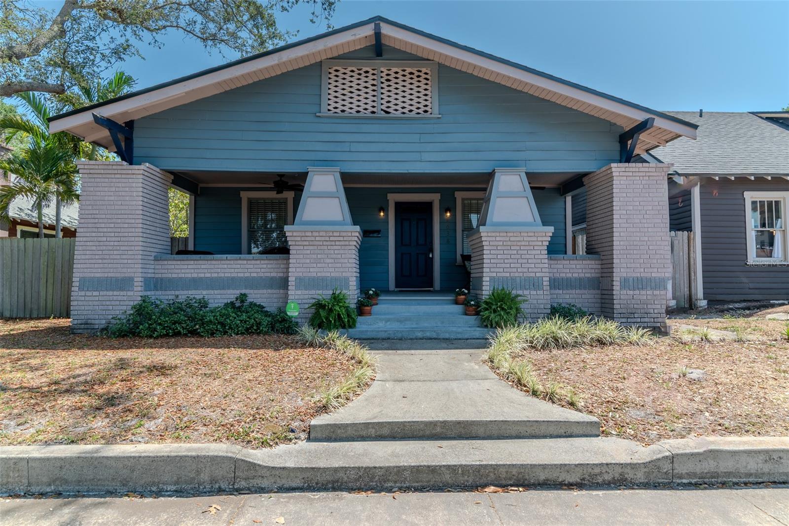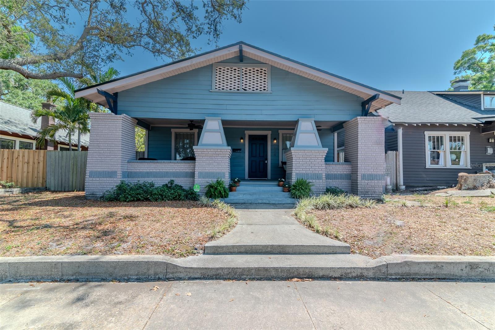 Amazing Kenwood location just 2 blocks to the heart of Central ave with stores, restaurants and bars. This 2 bed, 1 bath home (used to be 3 bedrooms so could be converted back) has a lovely front porch with ceiling fans and is on a beautiful tree lined, brick paved street. Enjoy super high 9 ft. ceilings and bamboo flooring throughout. Wood-burning fireplace and built-in bookshelves in the living room. Bathroom has lots of character with a cast iron pedestal tub and sink. Renovated kitchen with granite counters and farmhouse sink. Who loves gas cooking? This home has a gas stove! Front bedroom with closet and primary, very large bedroom (used to be 2 bedrooms) with 5 windows! Back door brings you to a great screened in porch and also a laundry area which then leads you to an amazing double level trex deck overlooking a large, fenced in yard. Double back gate opens for easy car parking. Large shed is great for storage. Roof is 2 years young. HVAC system is brand new 1/25. Get ready to enjoy your Craftsman bungalow in this Artist enclave with lots of porch parties!