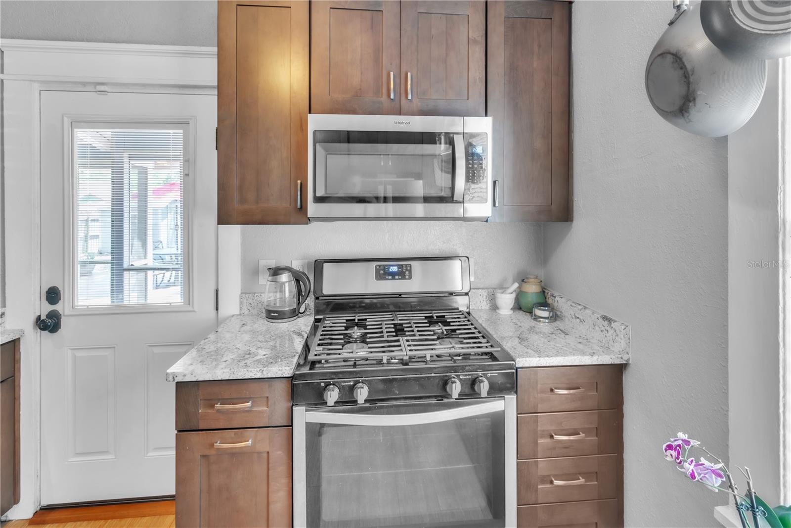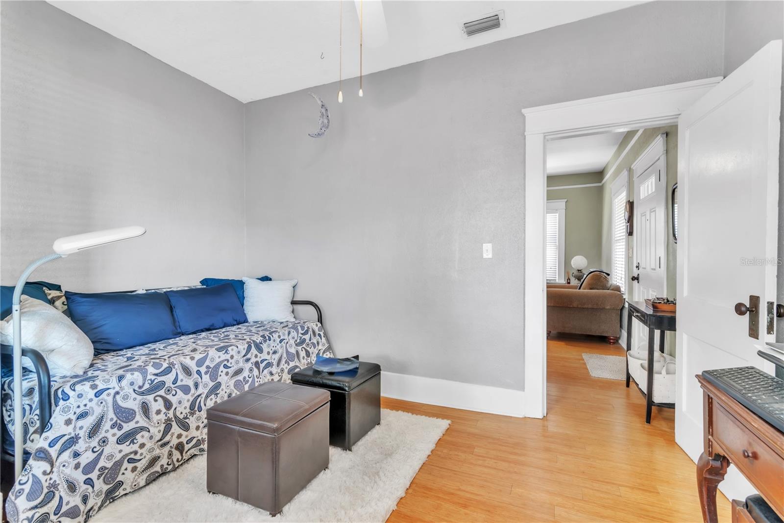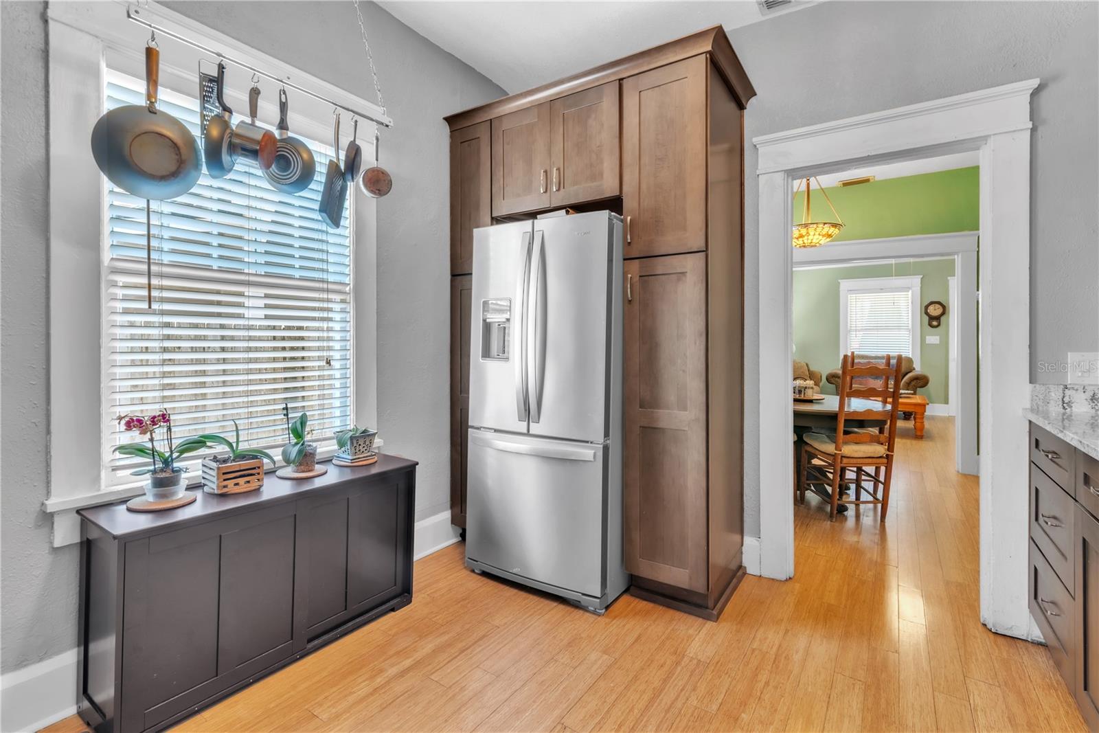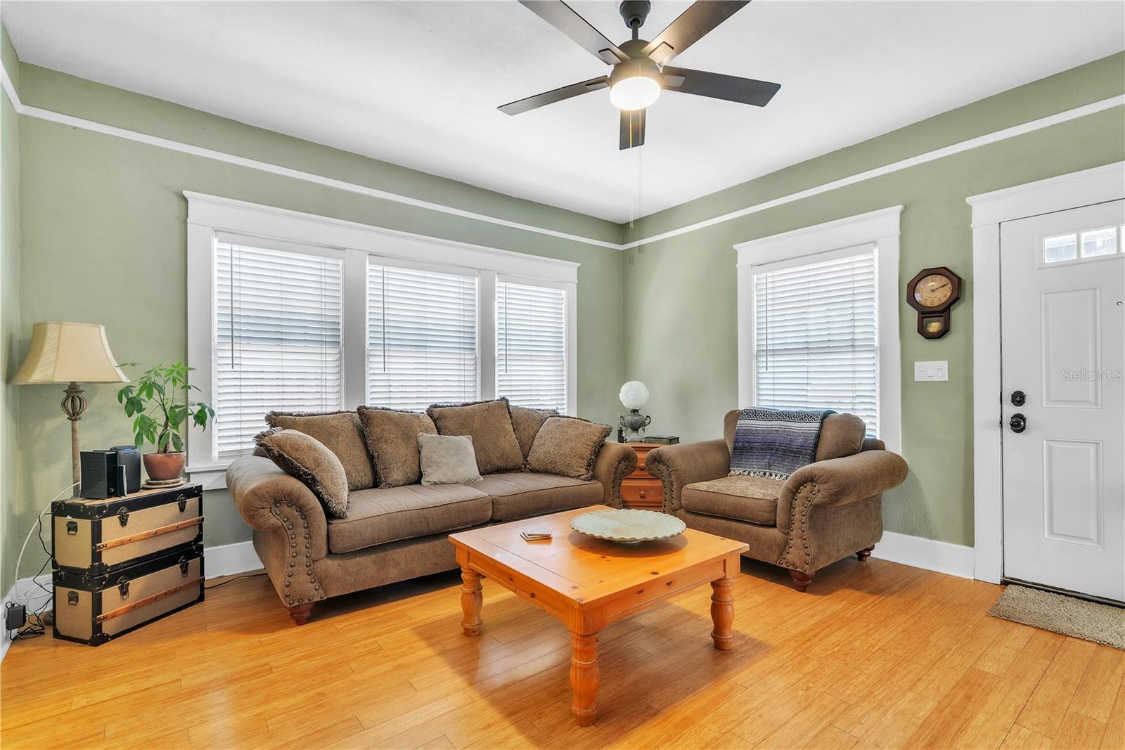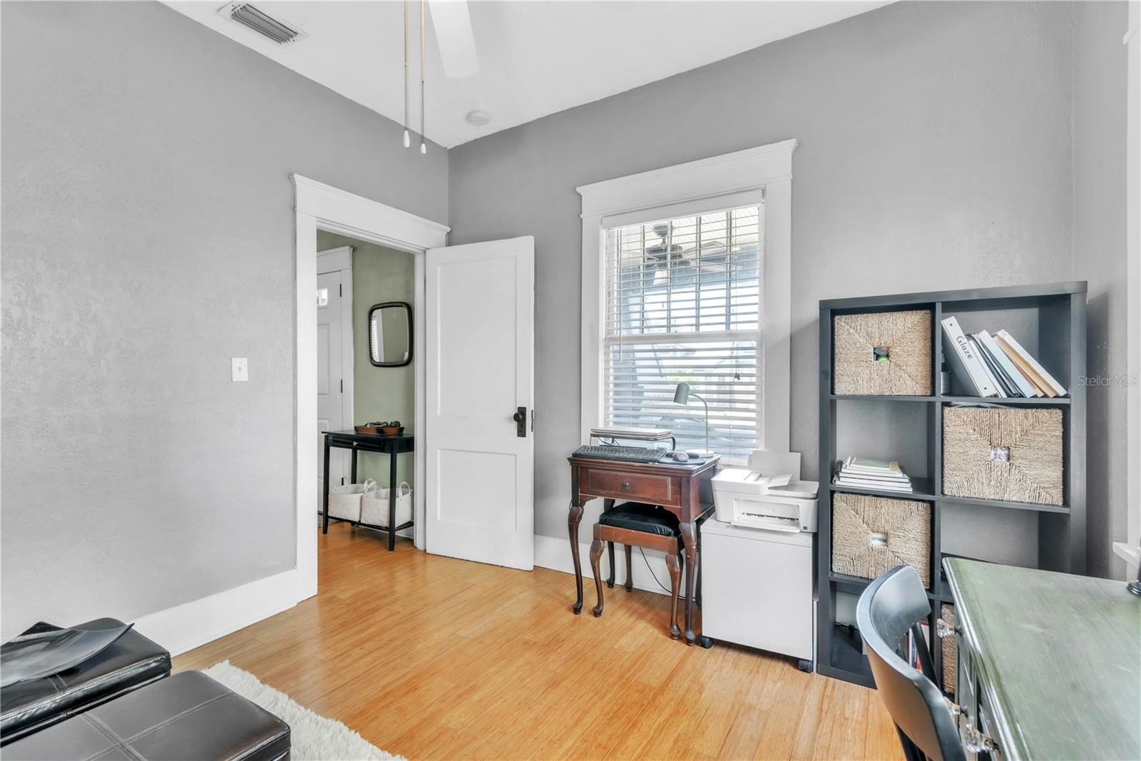 Amazing Kenwood location just 2 blocks to the heart of Central ave with stores, restaurants and bars. This 2 bed, 1 bath home (used to be 3 bedrooms so could be converted back) has a lovely front porch with ceiling fans and is on a beautiful tree lined, brick paved street. Enjoy super high 9 ft. ceilings and bamboo flooring throughout. Wood-burning fireplace and built-in bookshelves in the living room. Bathroom has lots of character with a cast iron pedestal tub and sink. Renovated kitchen with granite counters and farmhouse sink. Who loves gas cooking? This home has a gas stove! Front bedroom with closet and primary, very large bedroom (used to be 2 bedrooms) with 5 windows! Back door brings you to a great screened in porch and also a laundry area which then leads you to an amazing double level trex deck overlooking a large, fenced in yard. Double back gate opens for easy car parking. Large shed is great for storage. Roof is 2 years young. HVAC system is brand new 1/25. Get ready to enjoy your Craftsman bungalow in this Artist enclave with lots of porch parties!