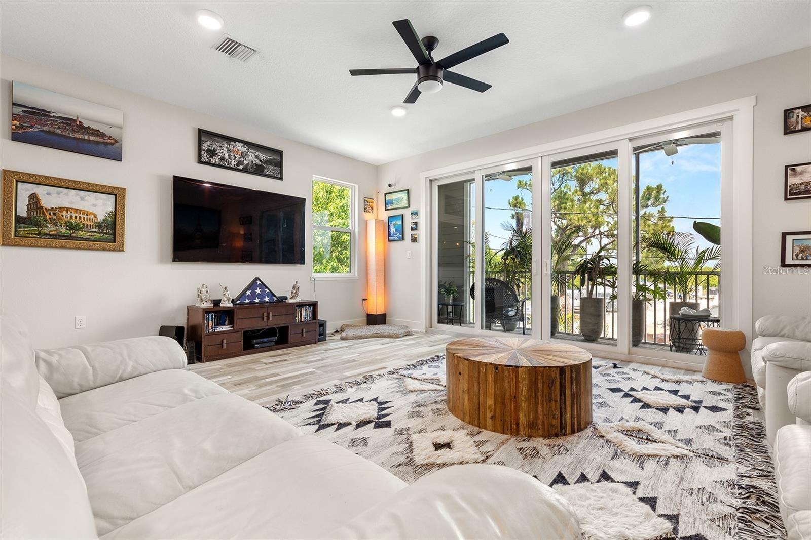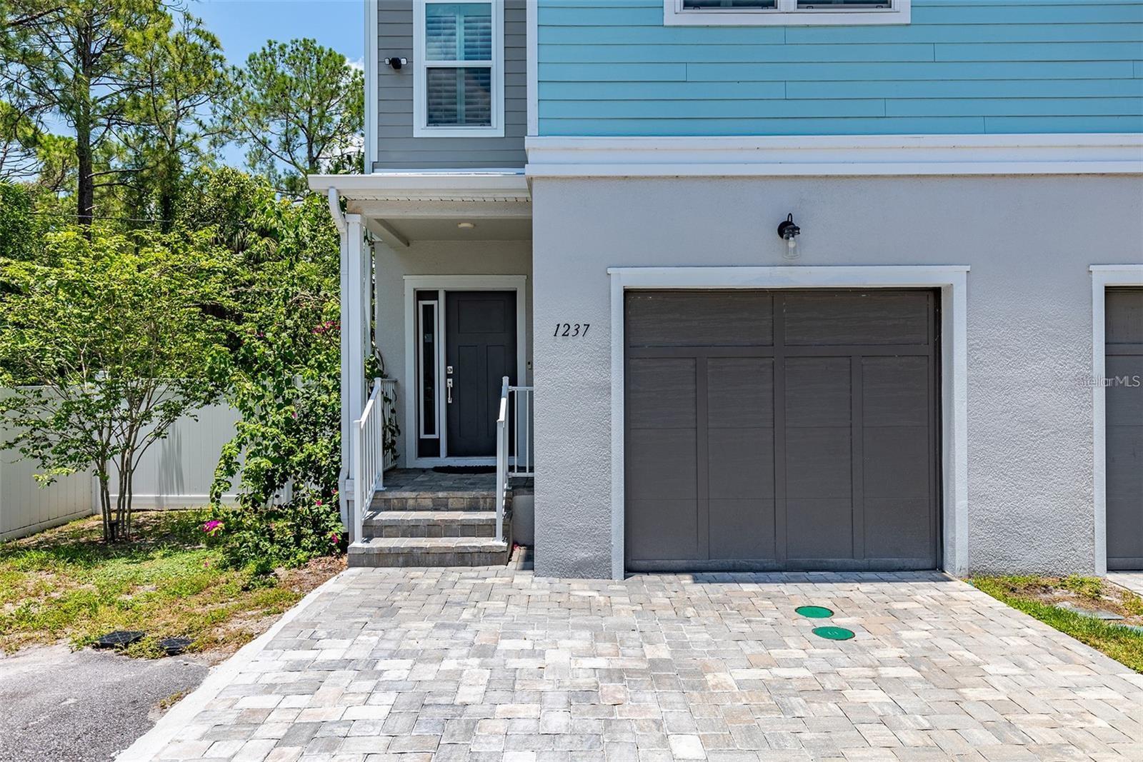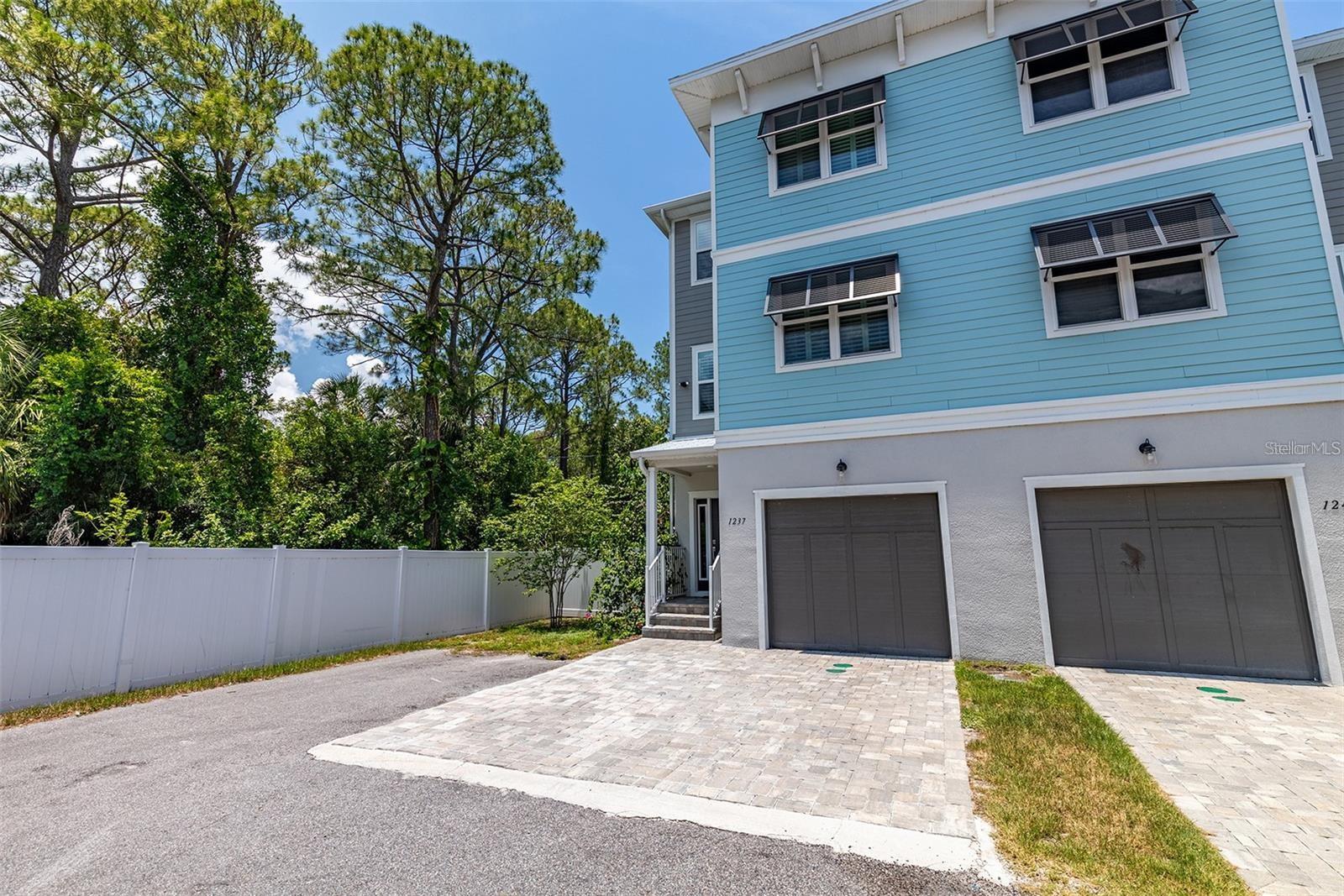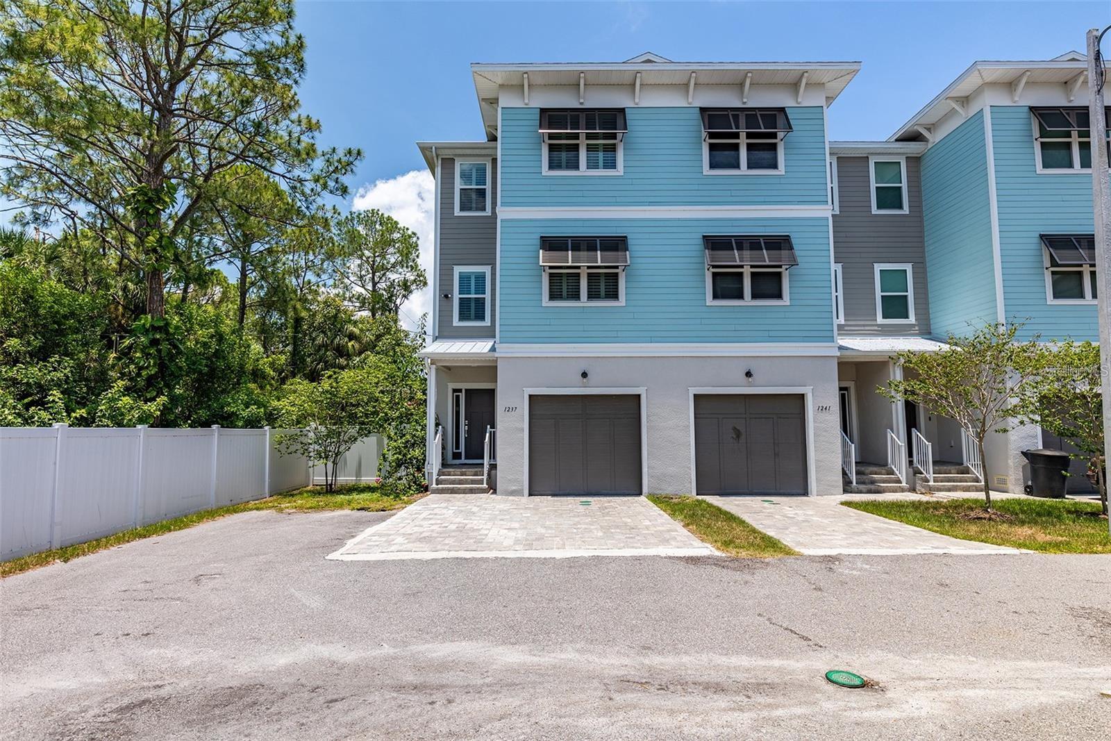 Welcome to Riviera Place Townhomes! This stunning 4-bedroom, 3-full-bathroom luxury Key West-style townhome perfectly blends Tampa and Saint Pete living. Ideally located just blocks from the bay, beaches, The Getaway, and scenic bike paths, this cozy gated community offers quick access to everything you love about both cities. Inside, thoughtful design and high-end finishes shine throughout. The oversized tandem garage, featuring soaring 20–30 ft ceilings, easily accommodates a boat plus two additional vehicles (or up to four cars) with storage — or even your own private basketball court. The garage also includes a professionally mounted basketball hoop and an oversized ceiling fan, ideal for Florida summers. Step outside to a fully fenced backyard with an extended brick paver patio — perfect for entertaining or letting pets roam freely, a rare upgrade in the community. Upgrades over standard units include LED recessed lighting, Z-Wave smart technology systems, WiFi-enabled keyless entry, hurricane-rated impact glass windows and sliders, and ceiling fans installed in every ceiling light fixture throughout the home — a premium additional upgrade. The gourmet kitchen is a true showstopper with upgraded stone quartz countertops, a sprawling island, a luxury designer pull-down faucet, pop-up outlets, a built-in desk, a large walk-in pantry with barn doors, and premium stainless steel appliances. The second floor features a bright living room that opens to a paver balcony, plus a guest bedroom or office space. A full bathroom was added here, offering extra convenience and flexibility. Upstairs, the expansive primary suite impresses with an extended walk-in closet, an oversized walk-in shower, dual sinks, and upgraded bathroom finishes. A third bedroom and third full bathroom complete the upper floor layout. Additional upgrades totaling over $50,000 include upgraded laminate flooring throughout (replacing standard carpet), upgraded blinds, and rare triple parking spaces — the only home in the neighborhood offering this feature. Riviera Place offers resort-style amenities, including a private gated entrance, resort-style pool and clubhouse, scenic pond, guest parking, and a dog park.